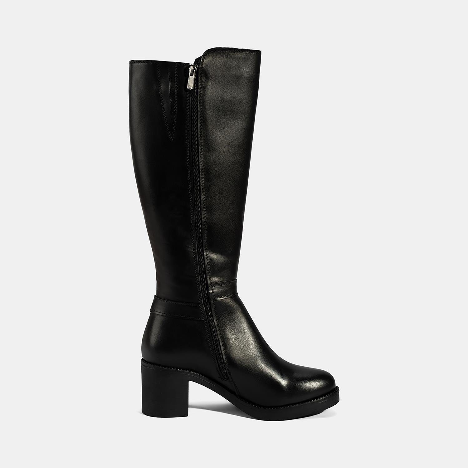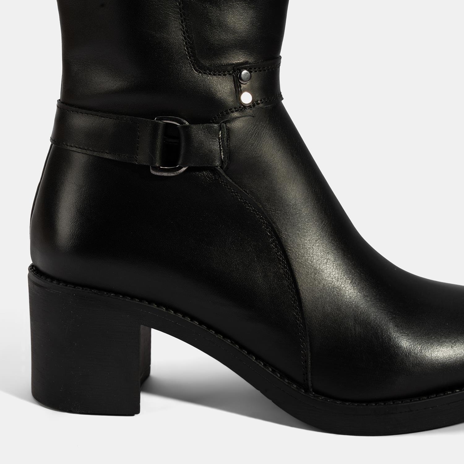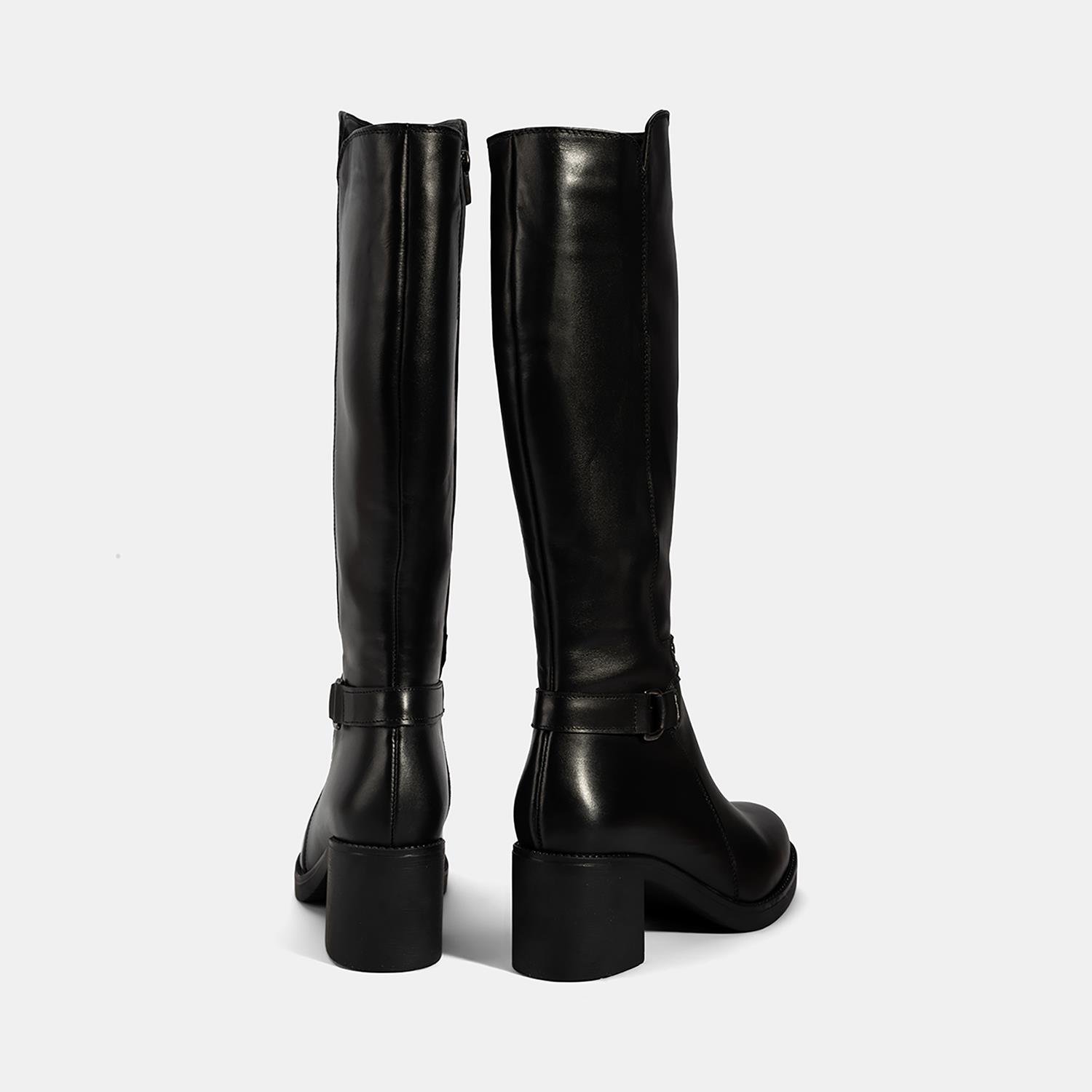 Kadın Siyah Kalın Topuklu Deri Çizme