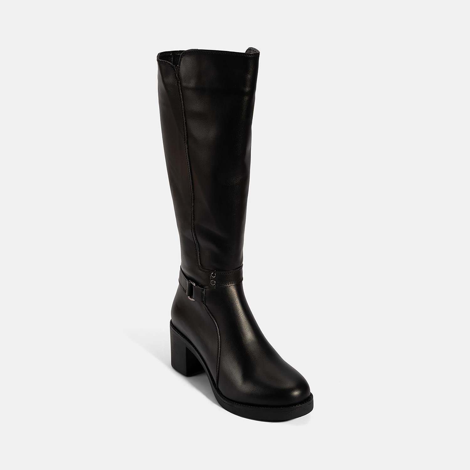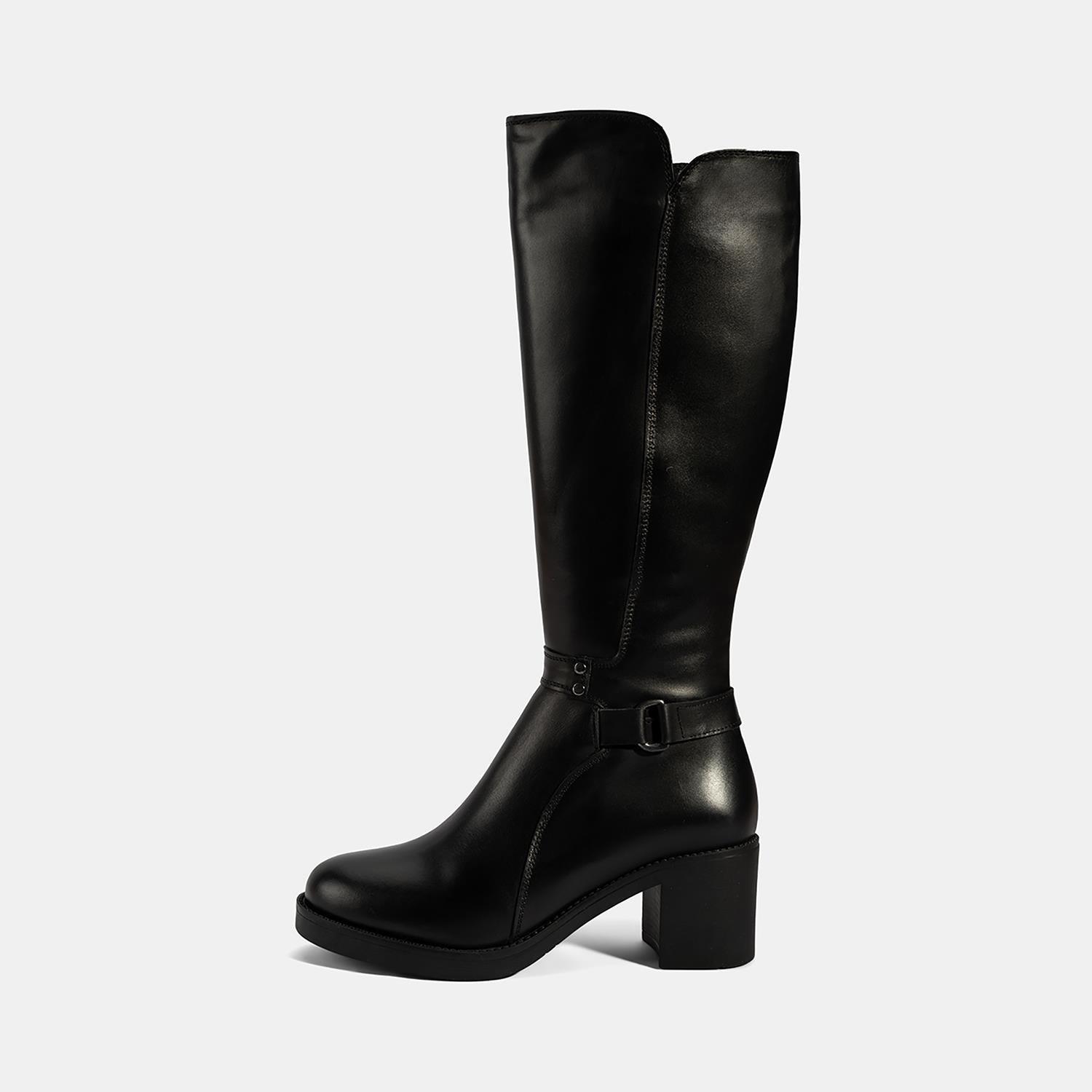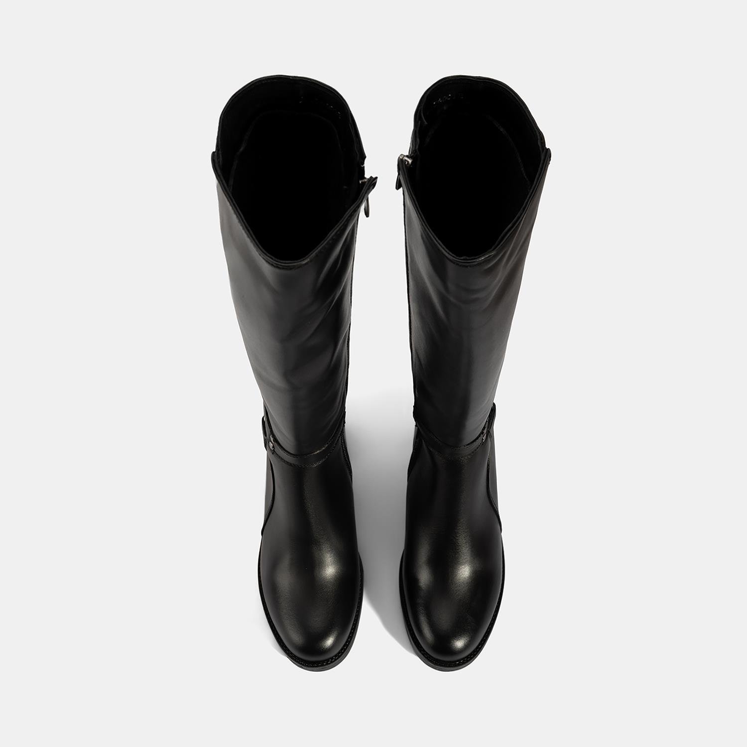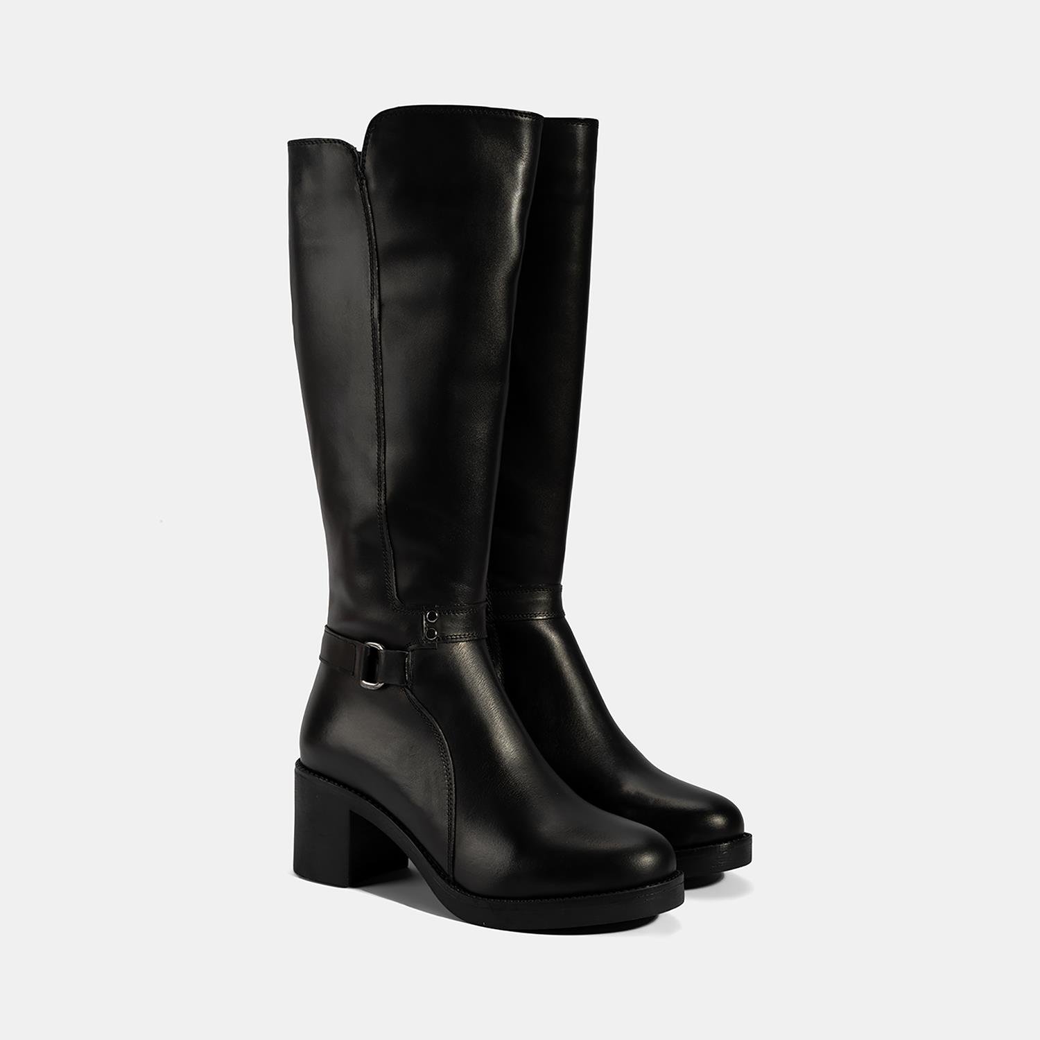 Kadın Siyah Kalın Topuklu Deri Çizme