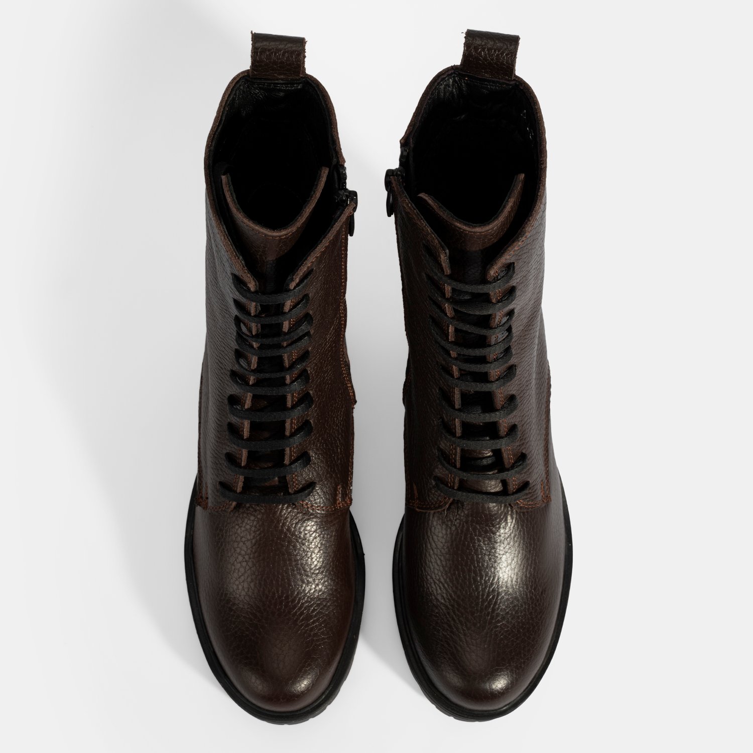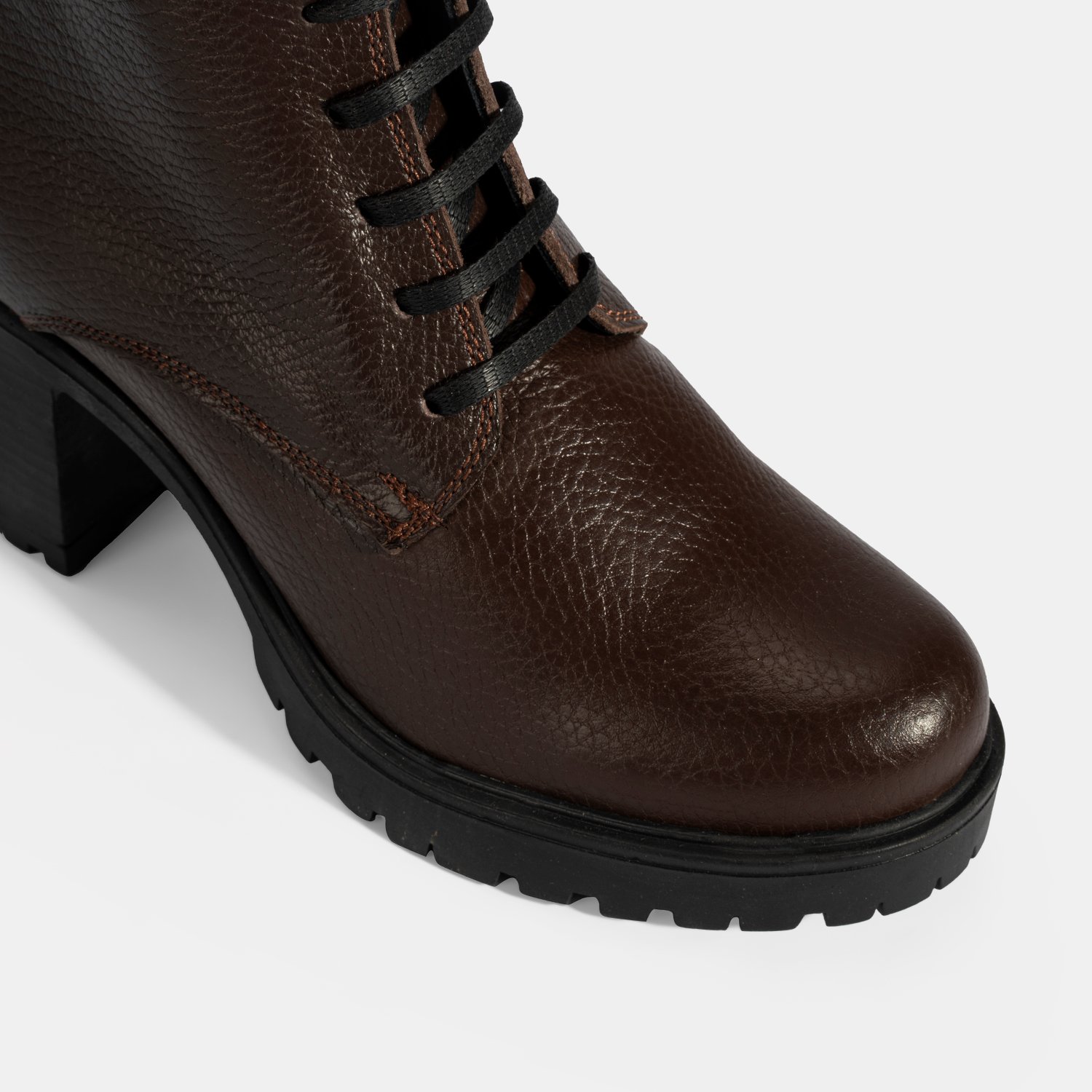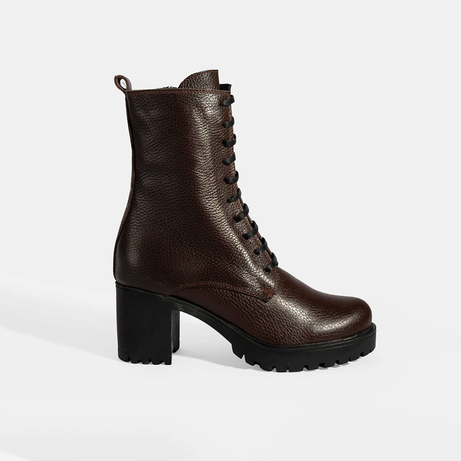 Kadın Kahve Bağcıklı Kalın Topuklu Deri Bot