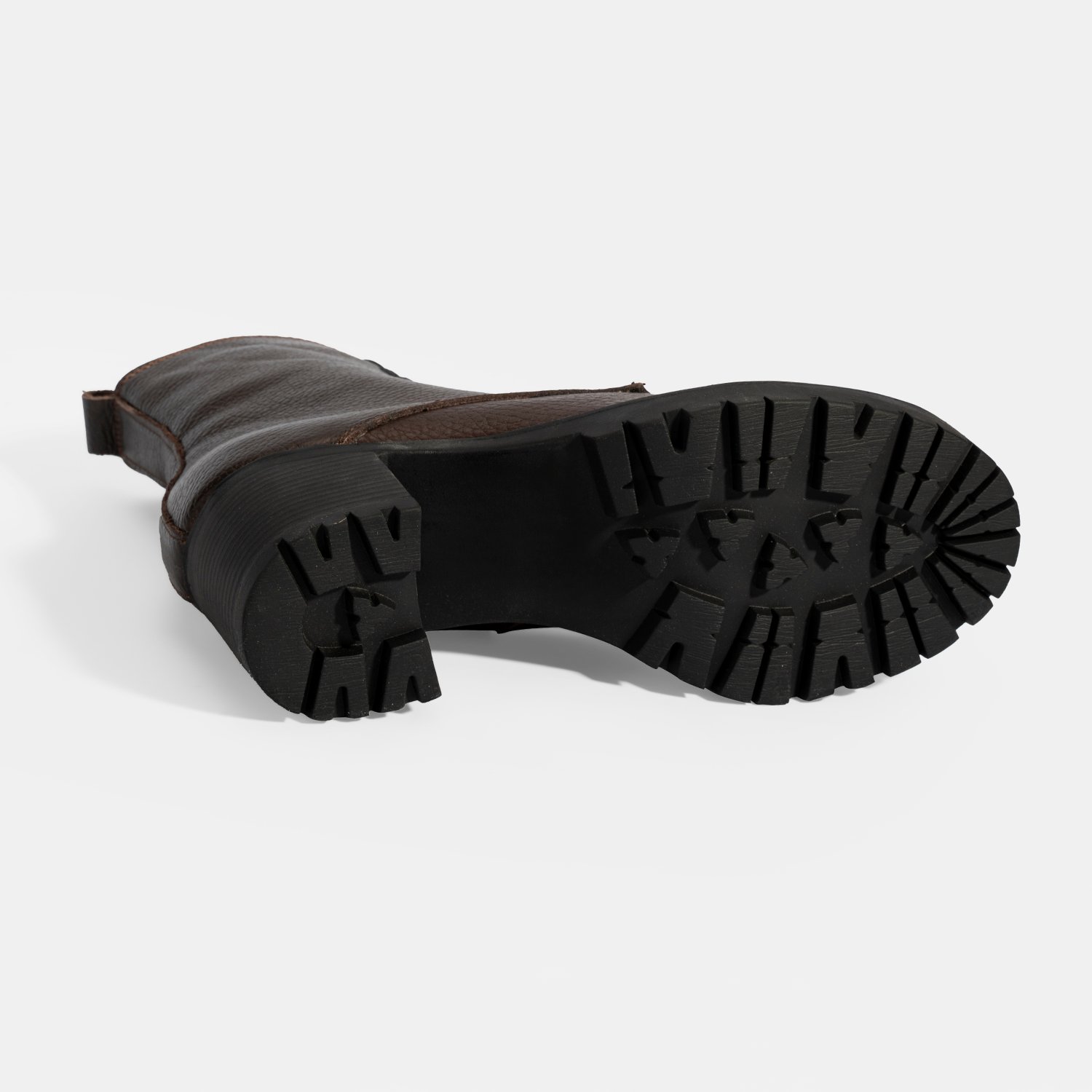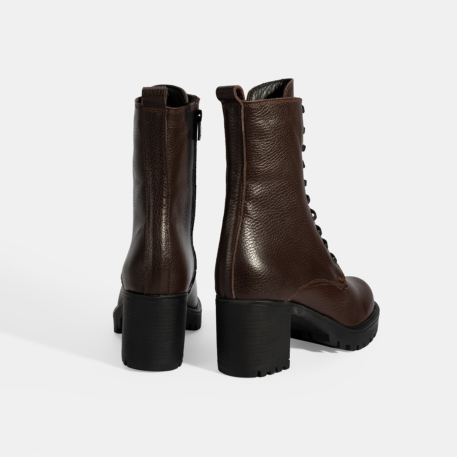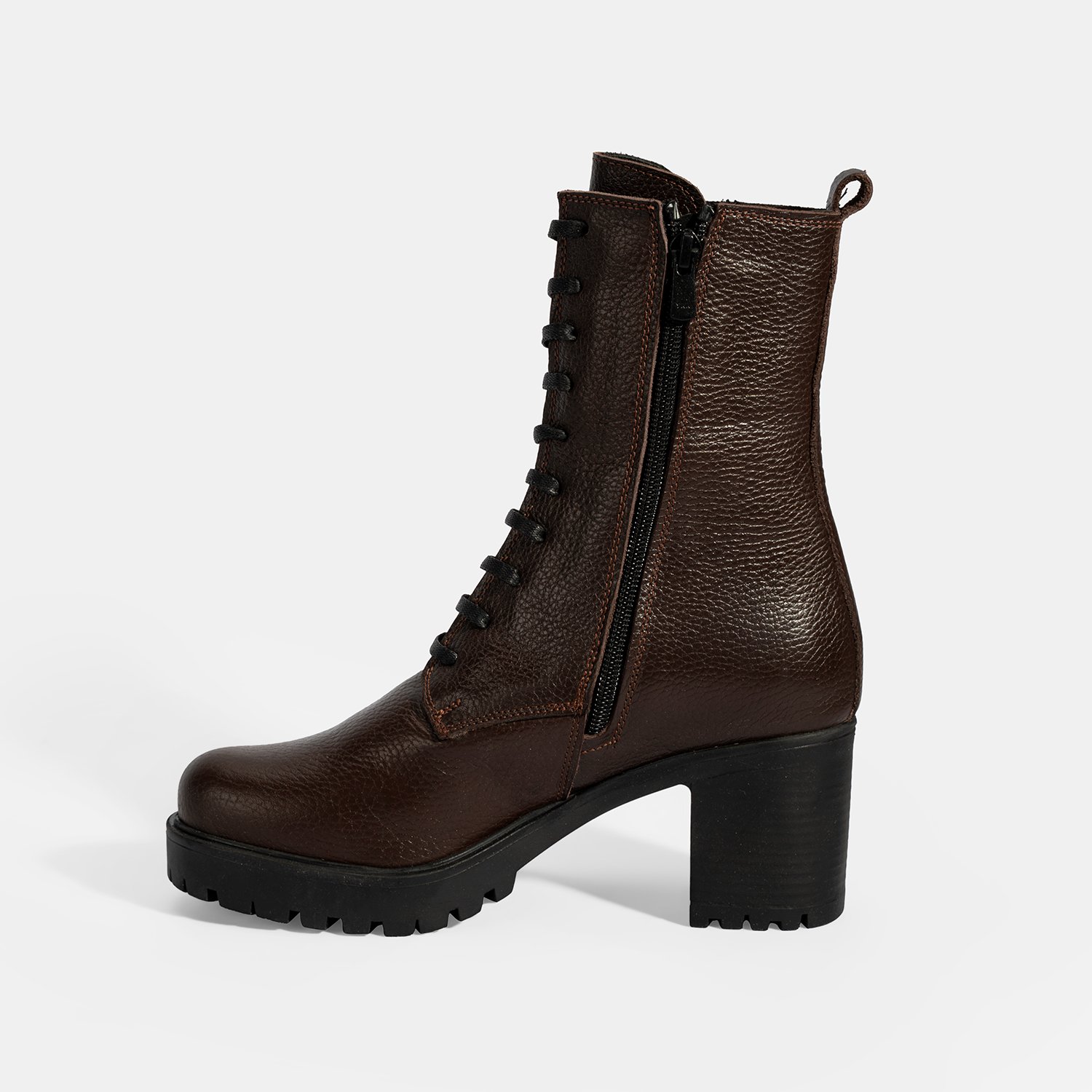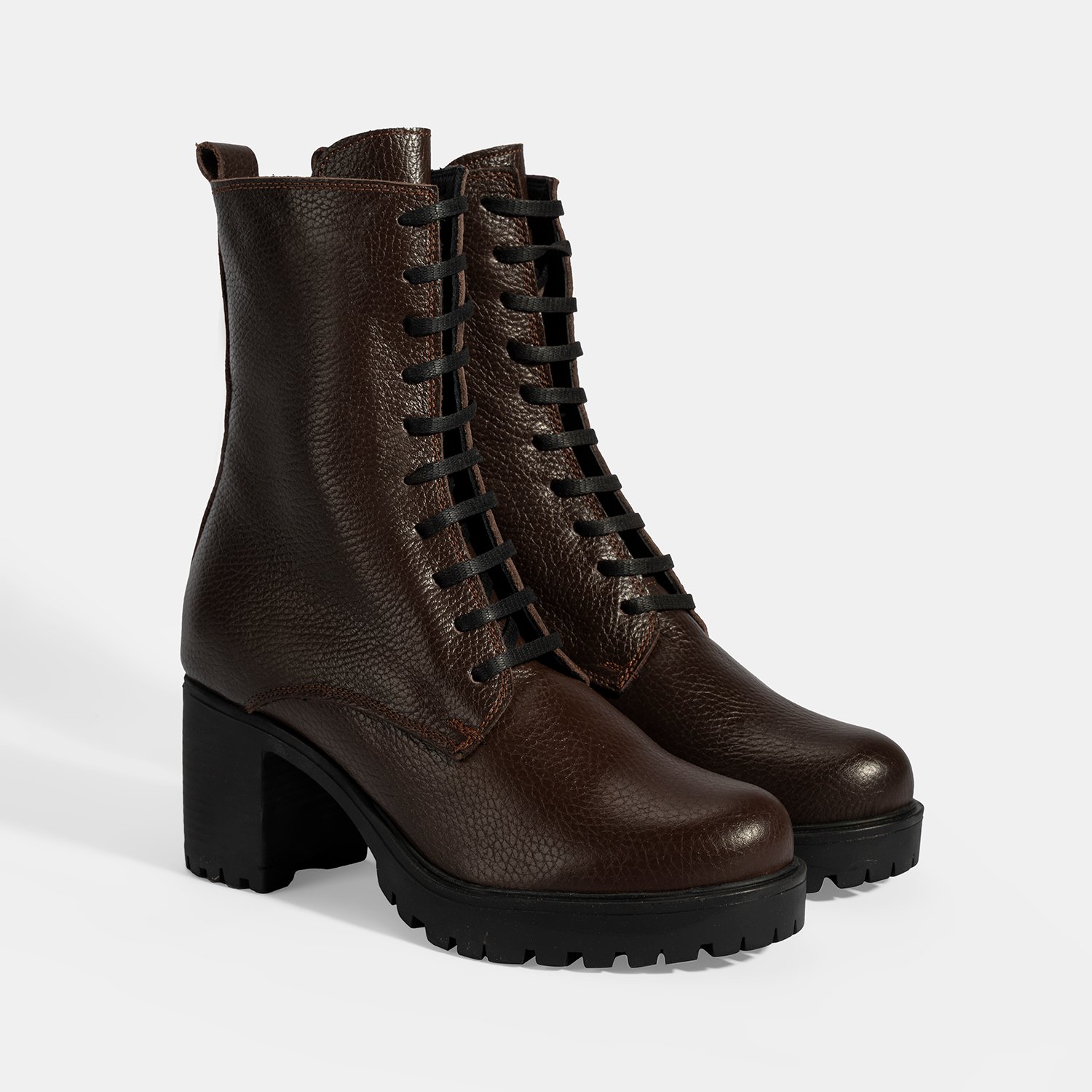 Kadın Kahve Bağcıklı Kalın Topuklu Deri Bot