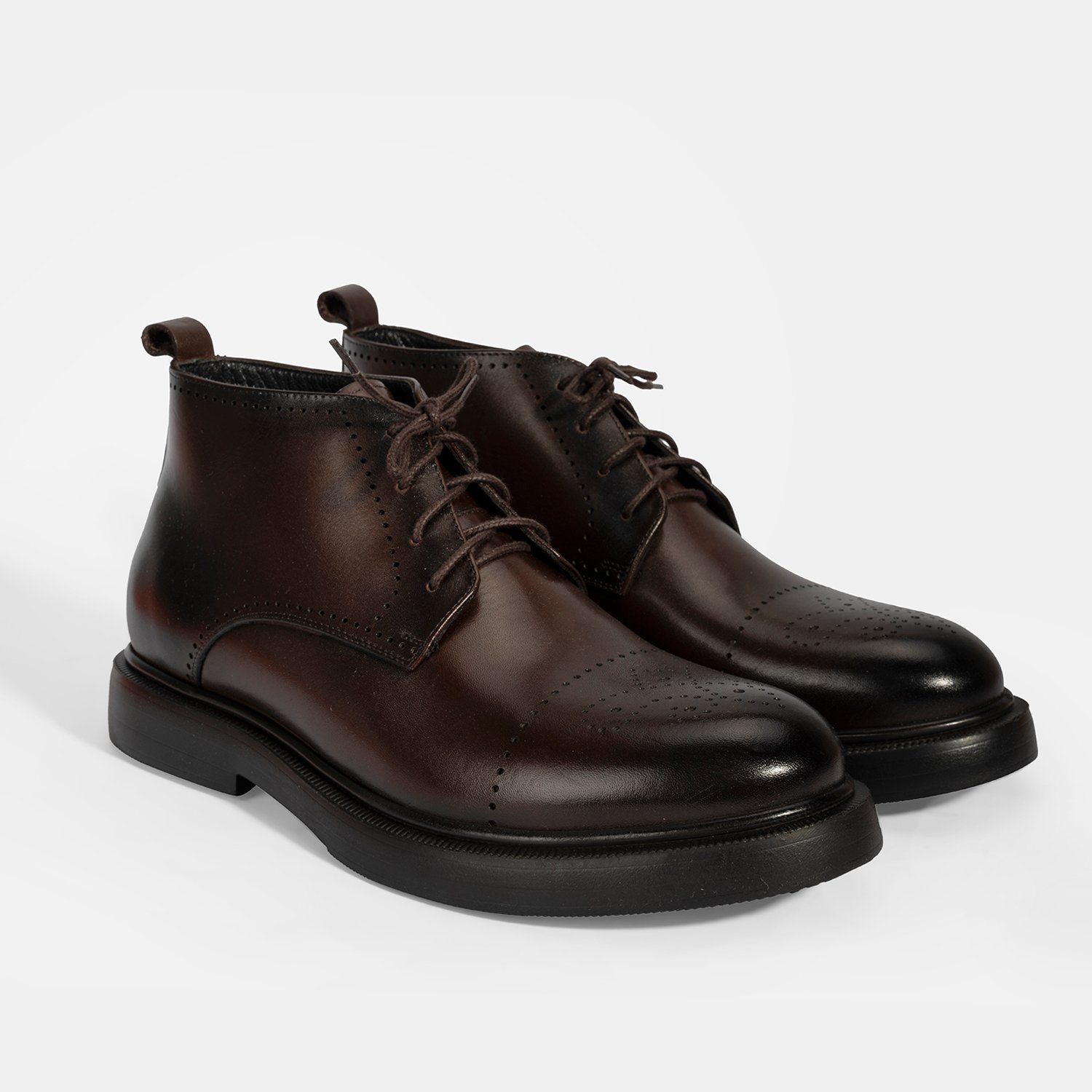 %100 deriden üretilmiş, %100 deri astarlı ve mostrali, bağcıklı, zımba baskılı, EVA tabanlı erkek bot.