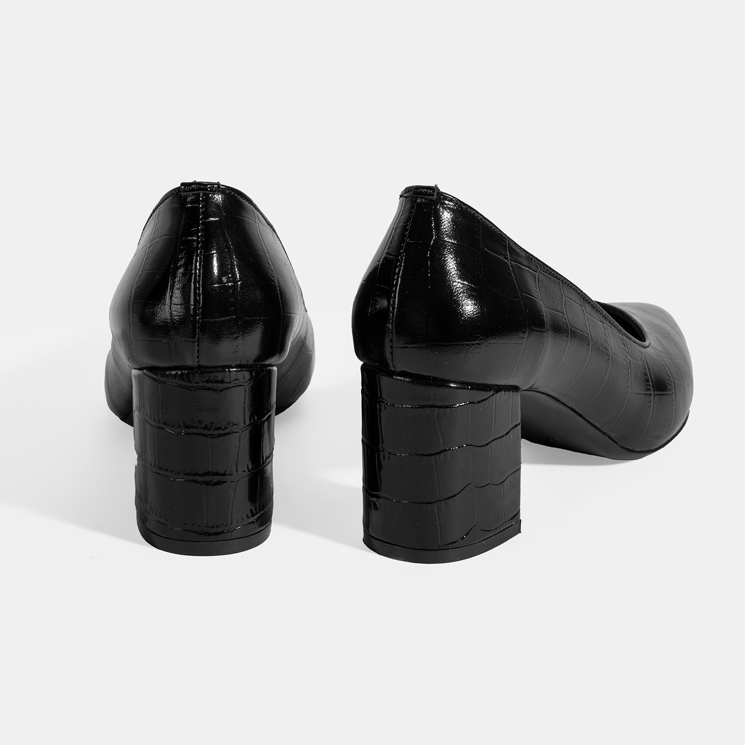 Kadın Siyah Kroko Baskılı Topuklu Klasik Ayakkabı
