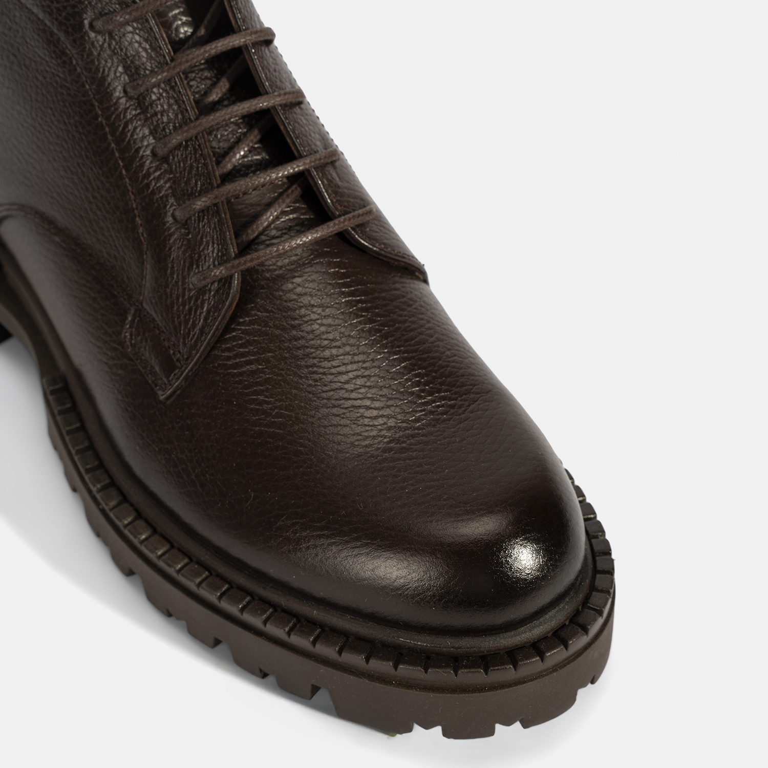 Erkek Kahve Bağcıklı Kalın Tabanlı Deri Postal Bot
