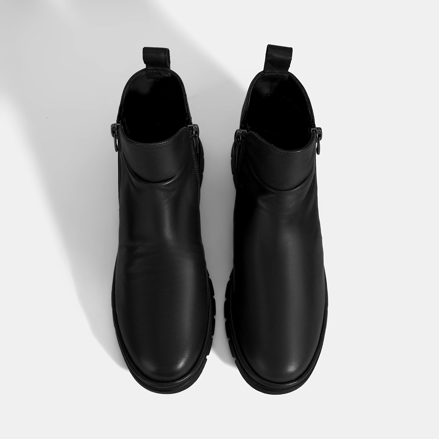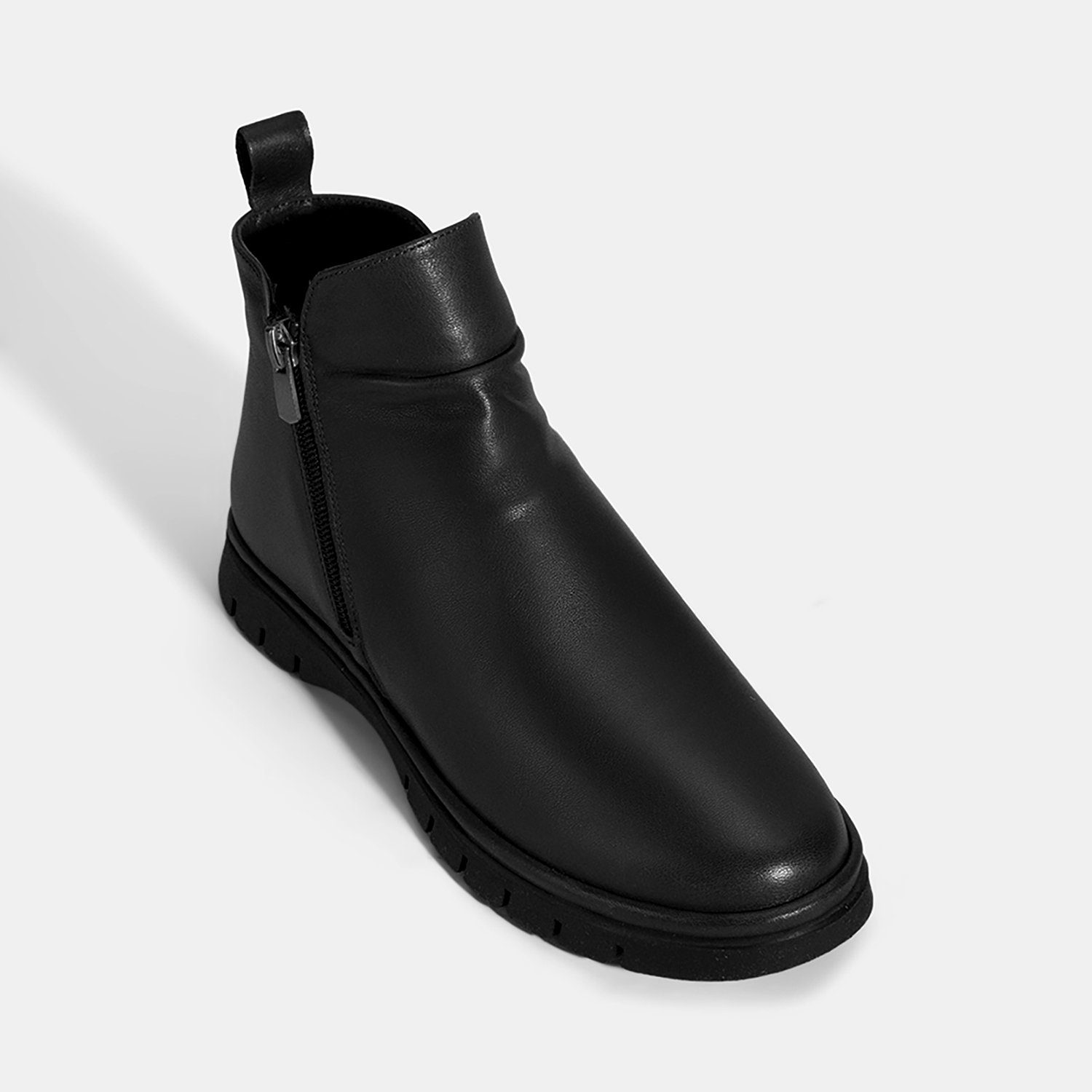 Kadın Siyah Fermuarlı Deri Bot
