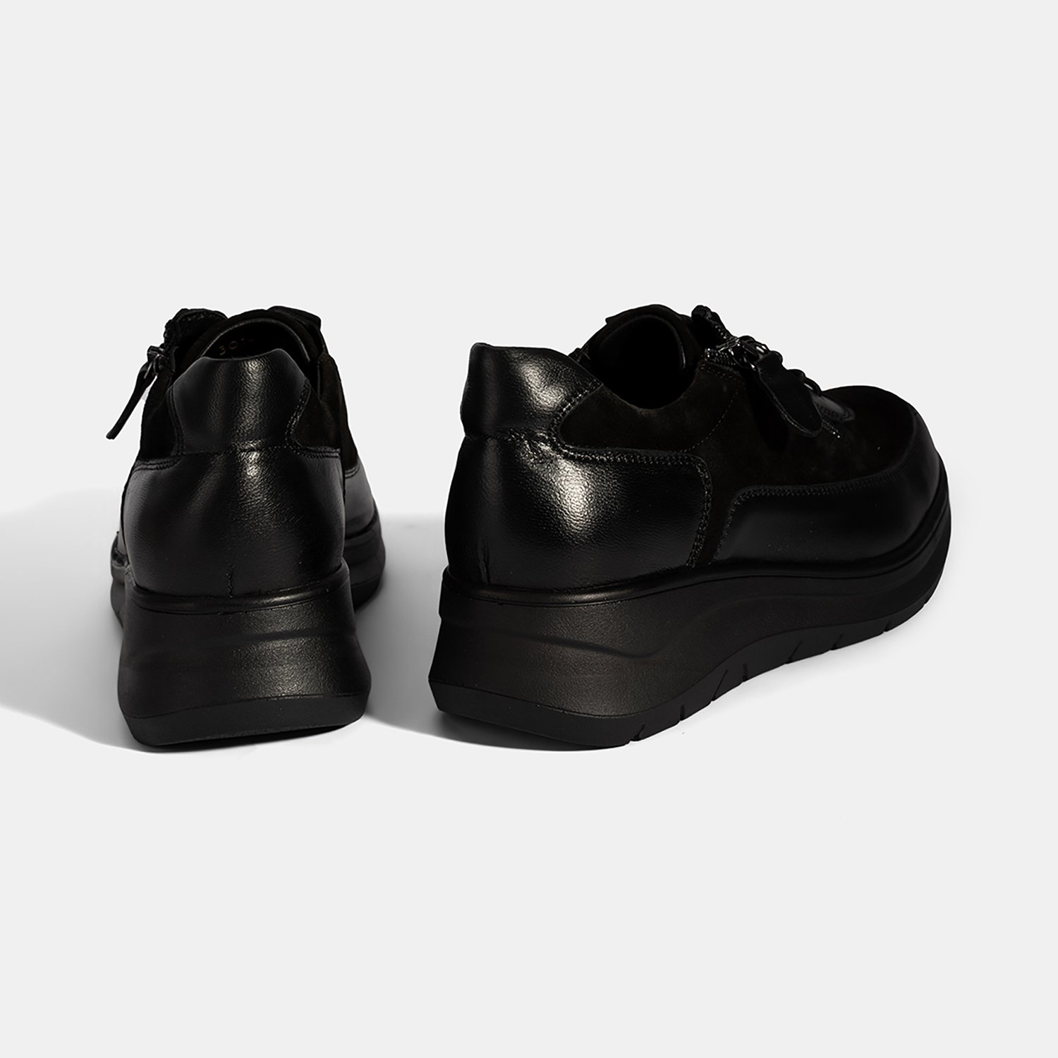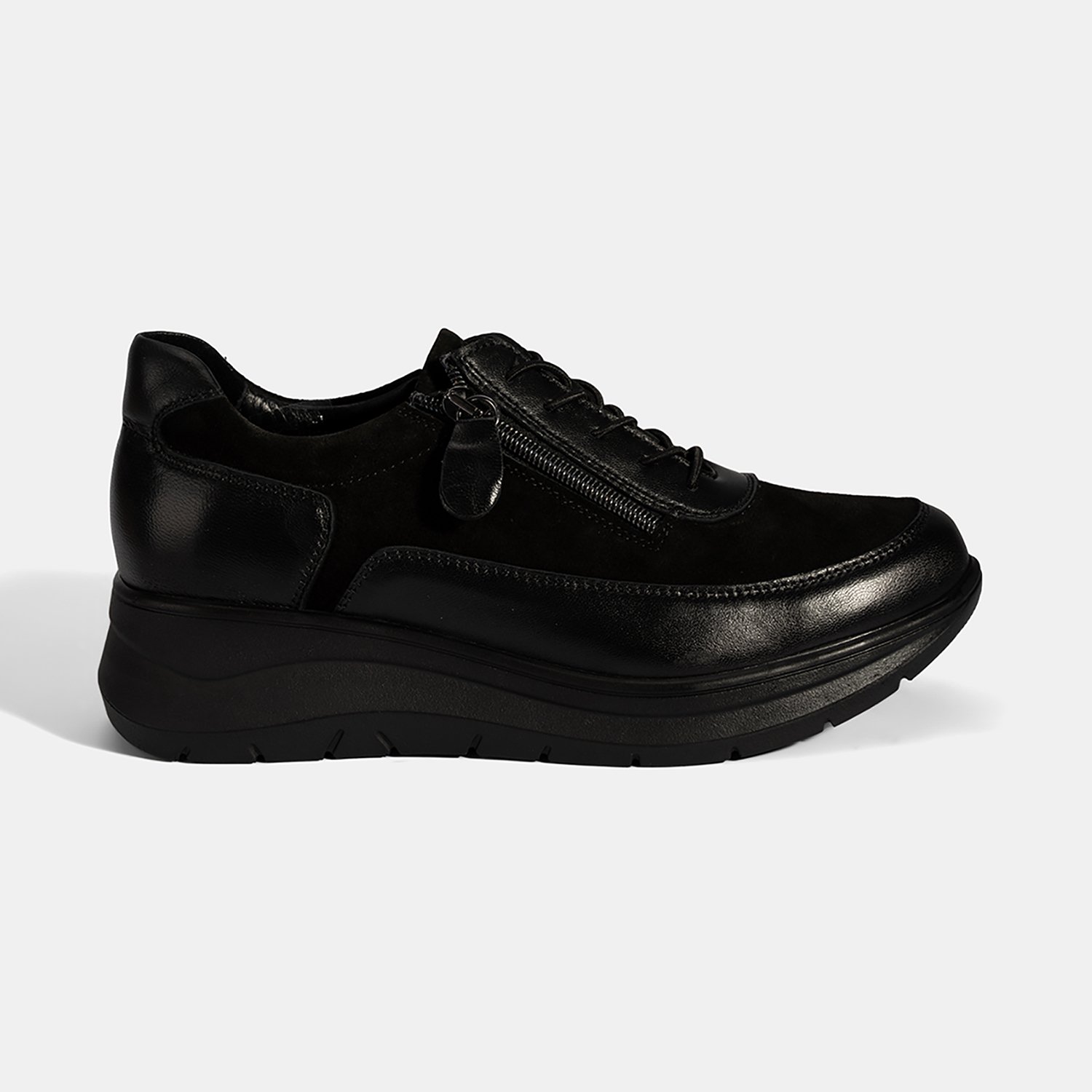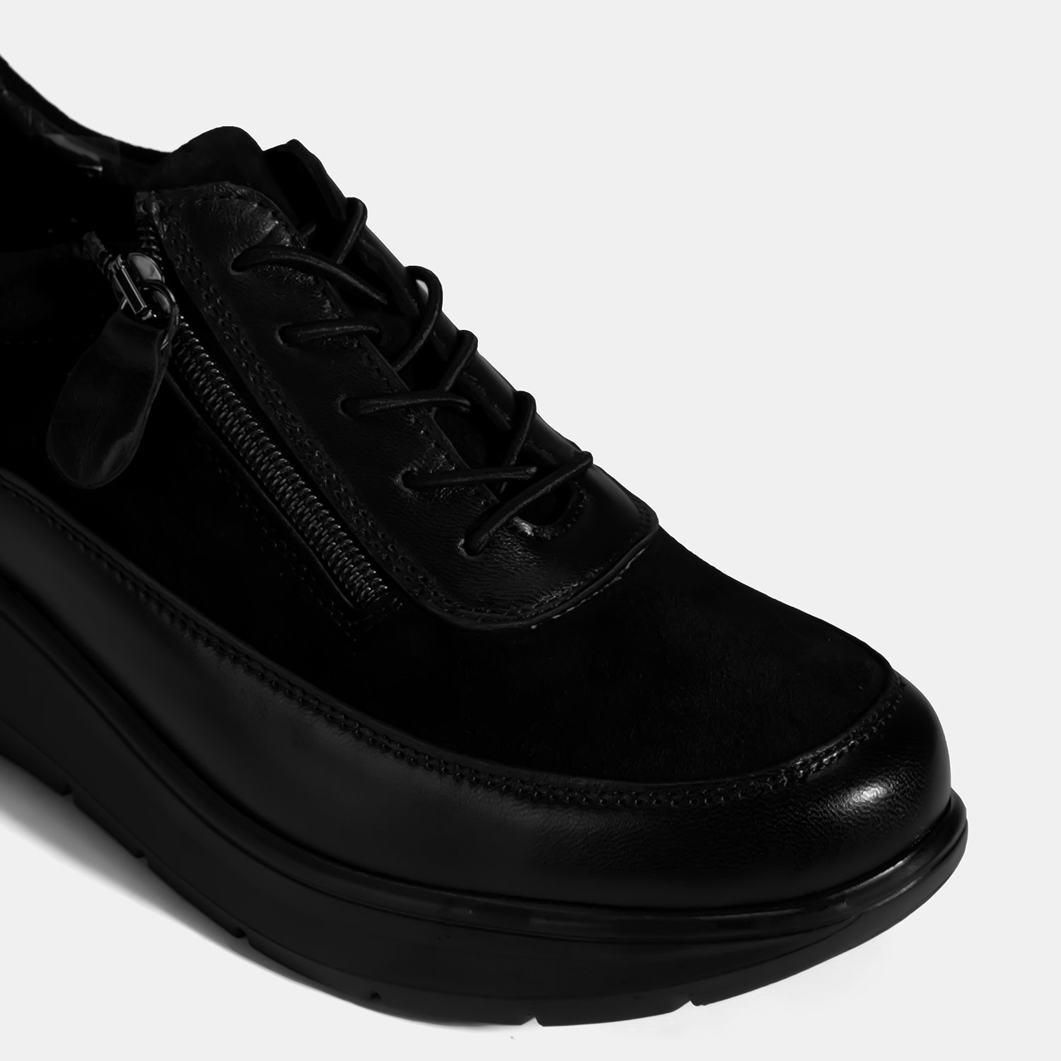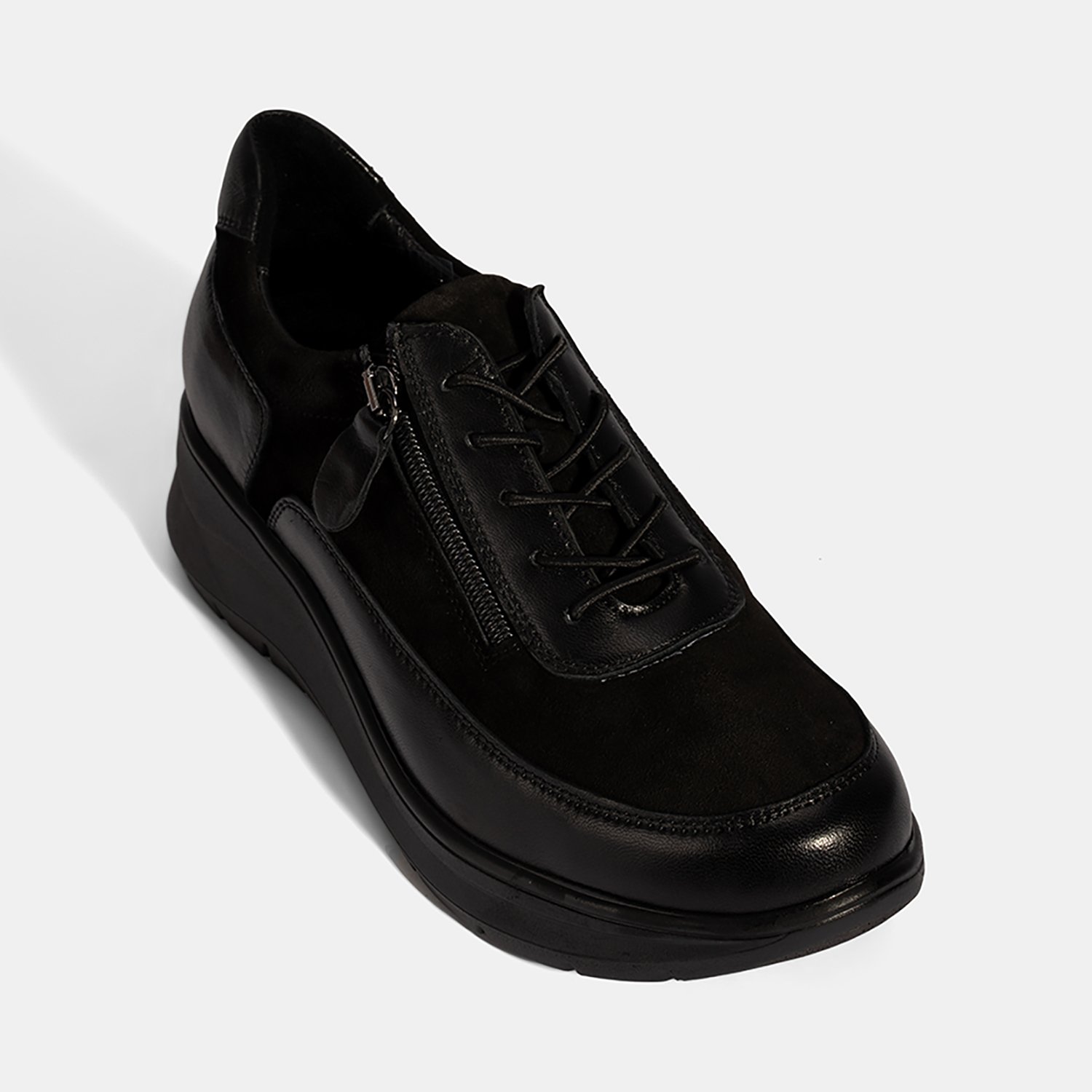 %100 deri, deri iç tabanlı, deri astarlı, fermuar aksesuar detaylı, PU tabanlı, bağcıklı kadın comfort ayakkabı. Topuk yüksekliği: 3,5 cm.