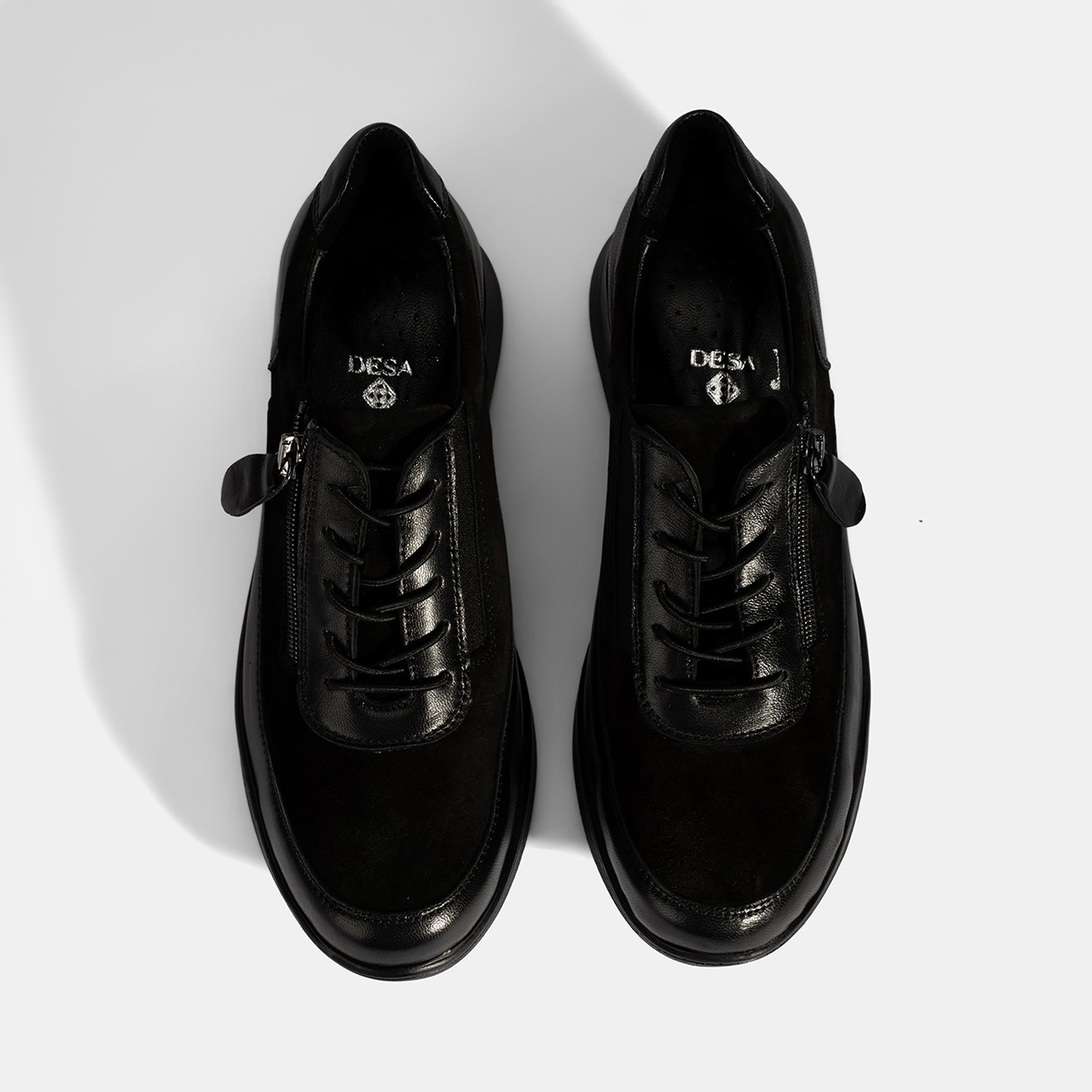 Kadın Siyah Bağcıklı DesaComfort Deri Ayakkabı