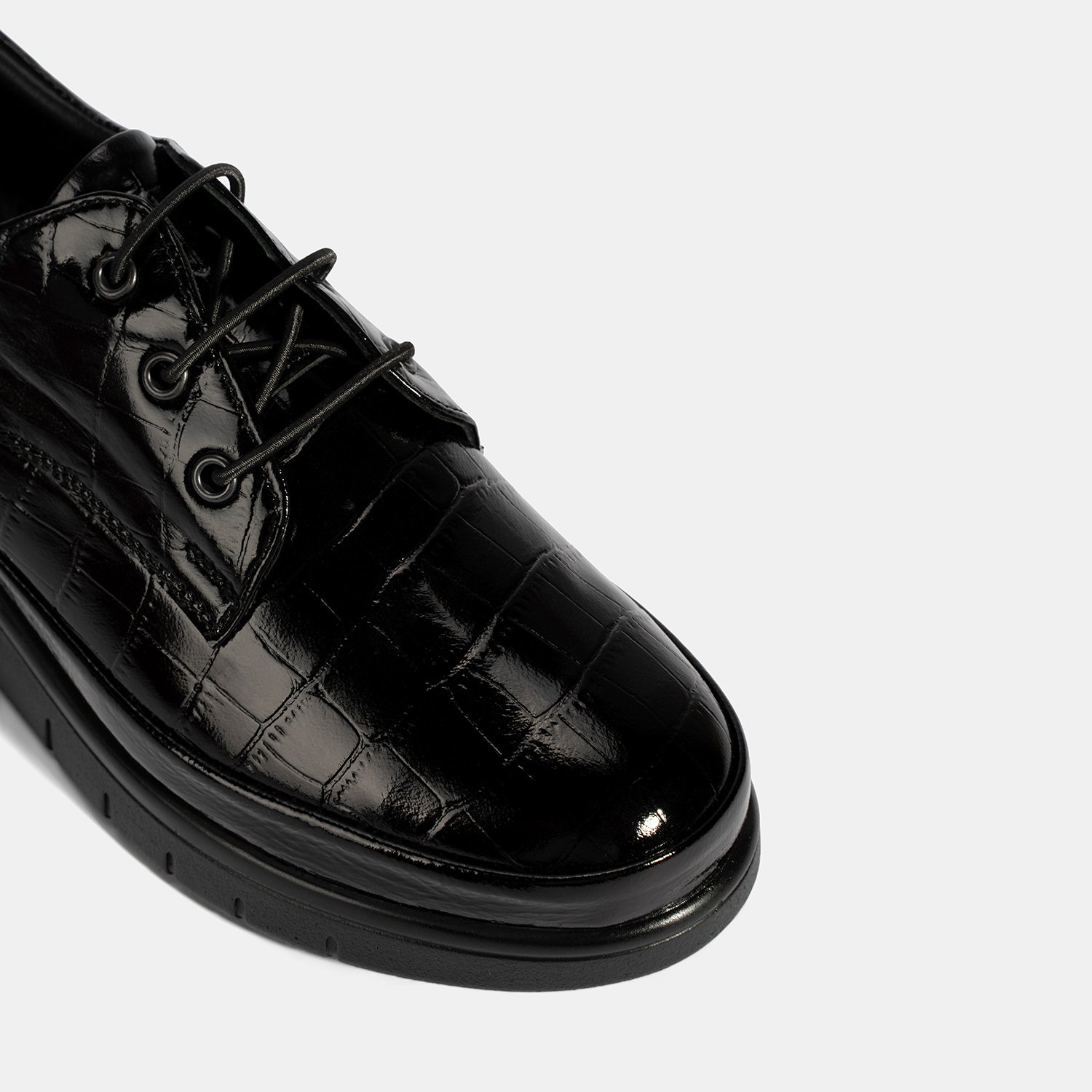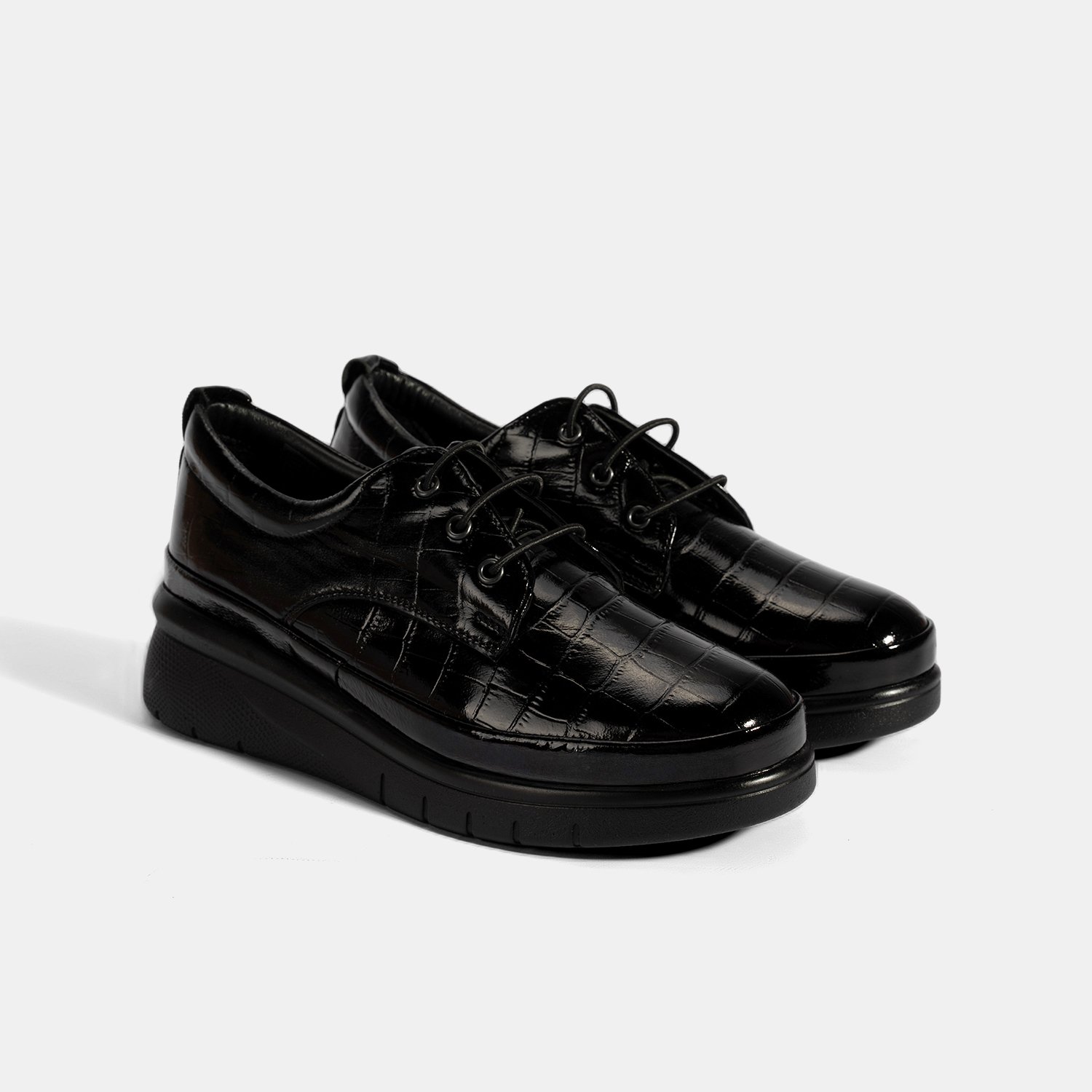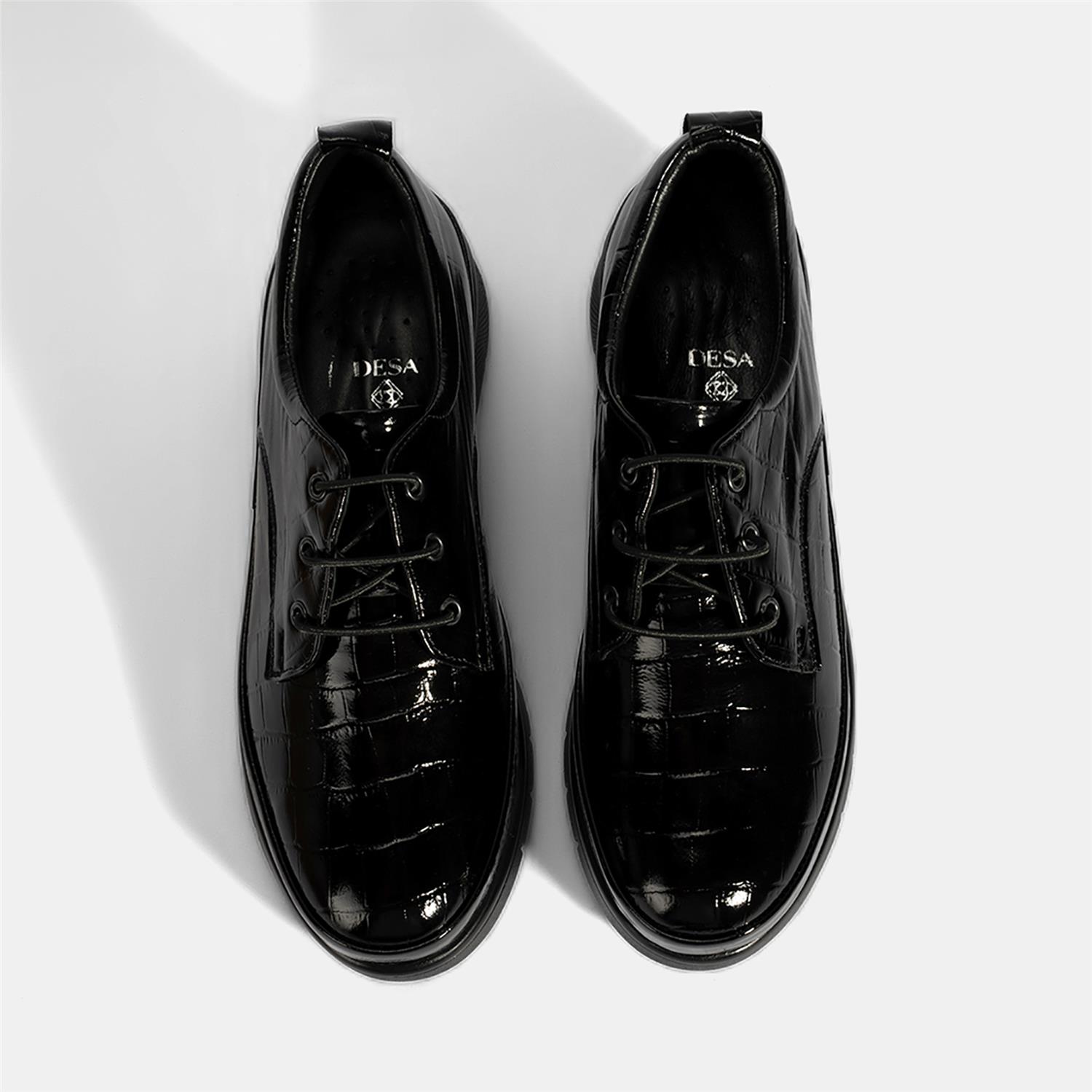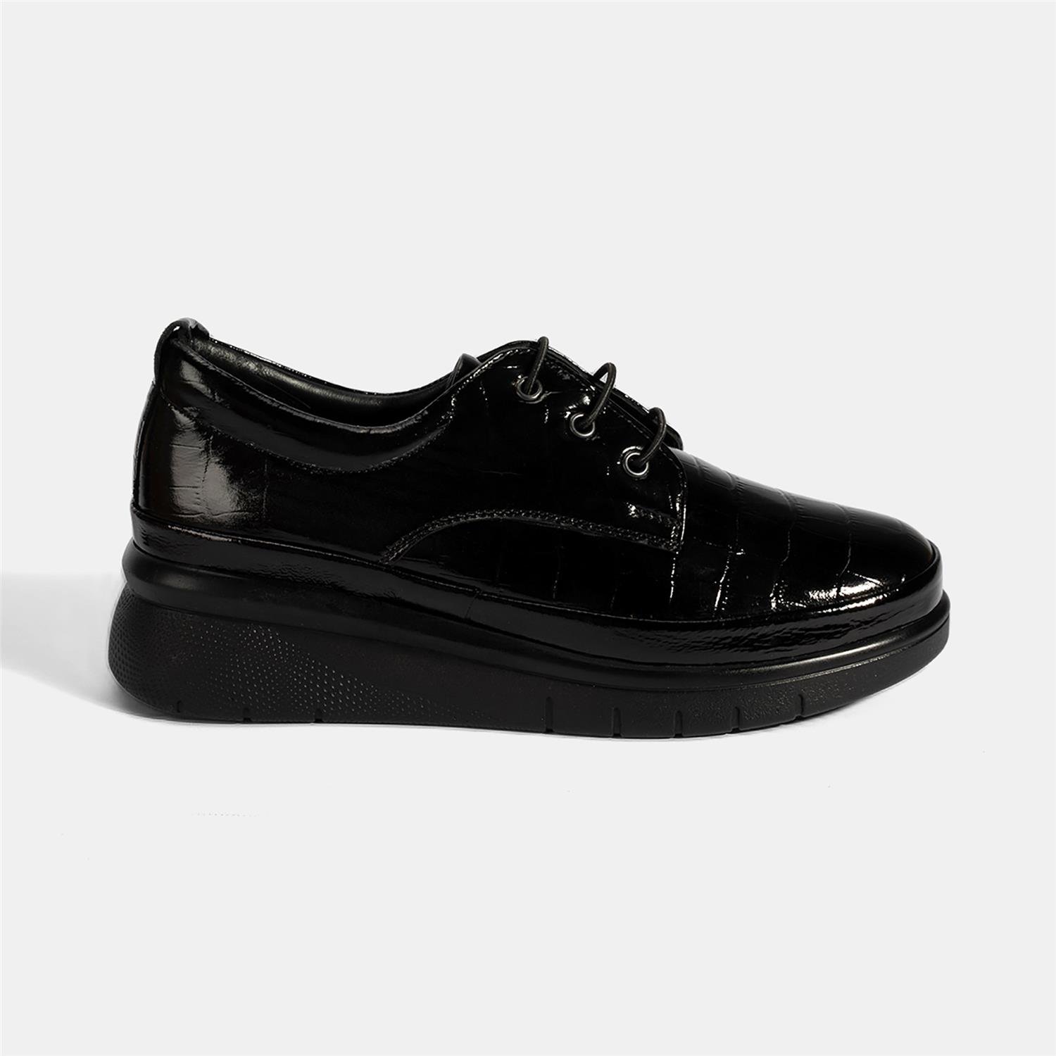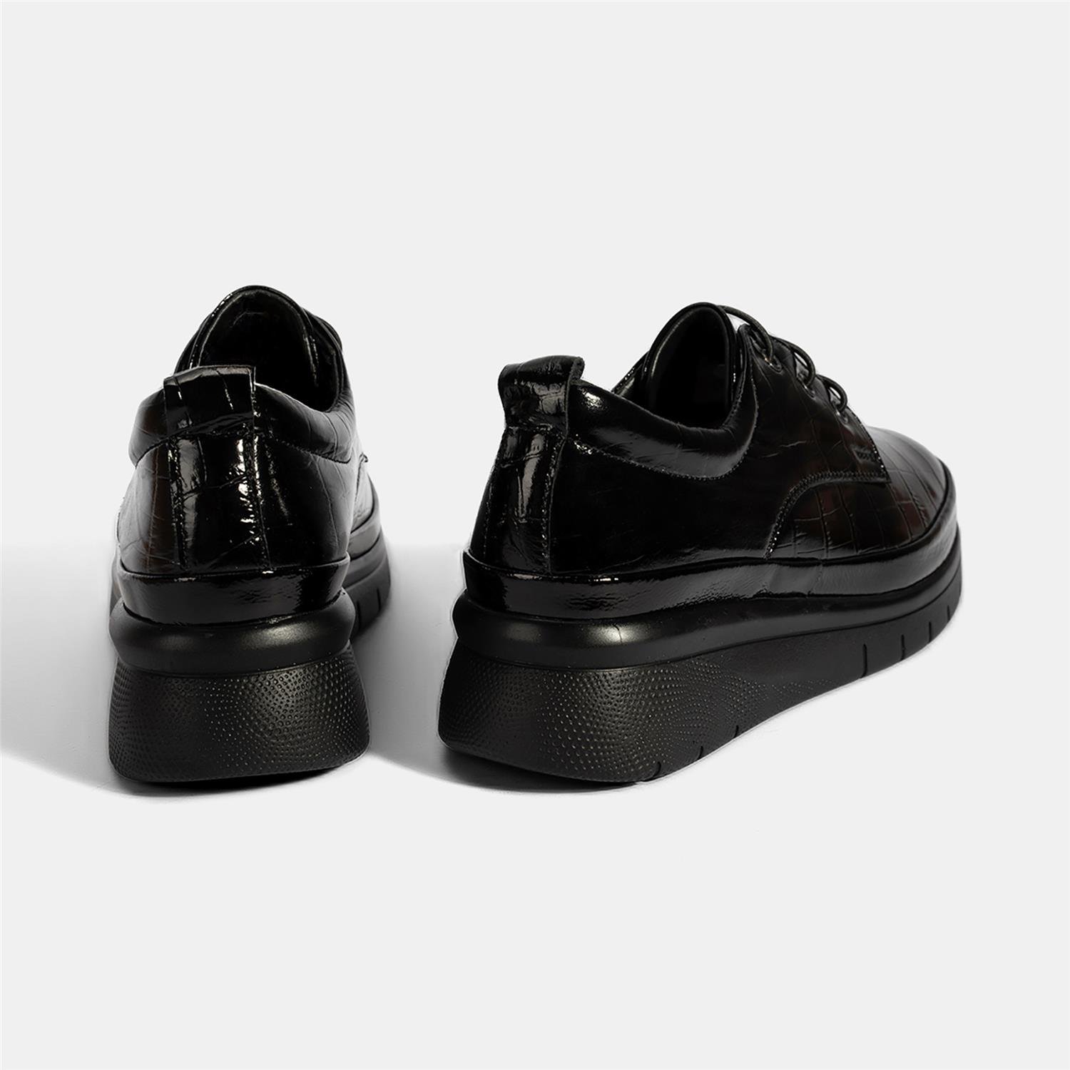 Kadın Siyah Kroko Baskılı DesaComfort Günlük Deri Ayakkabı