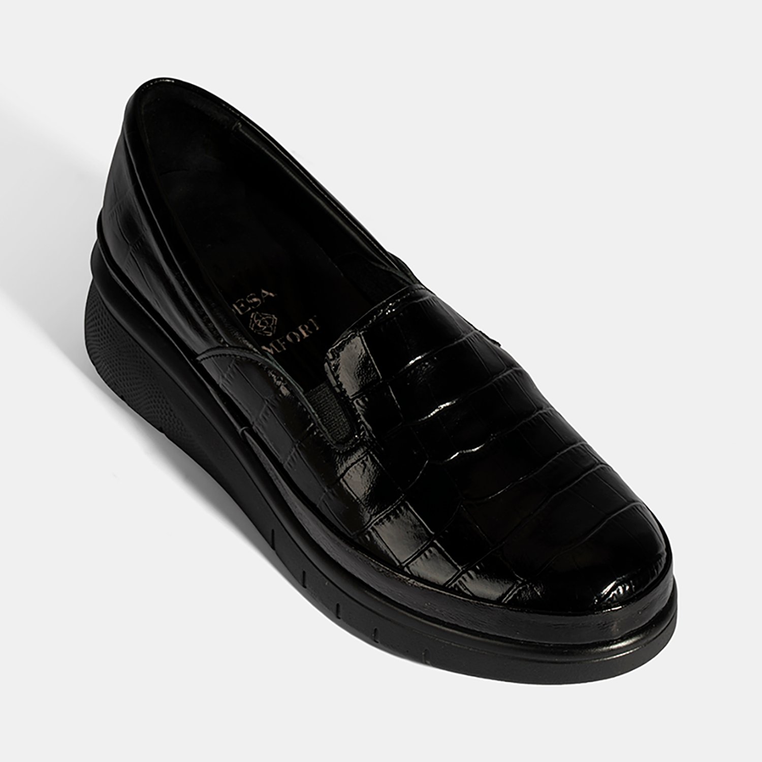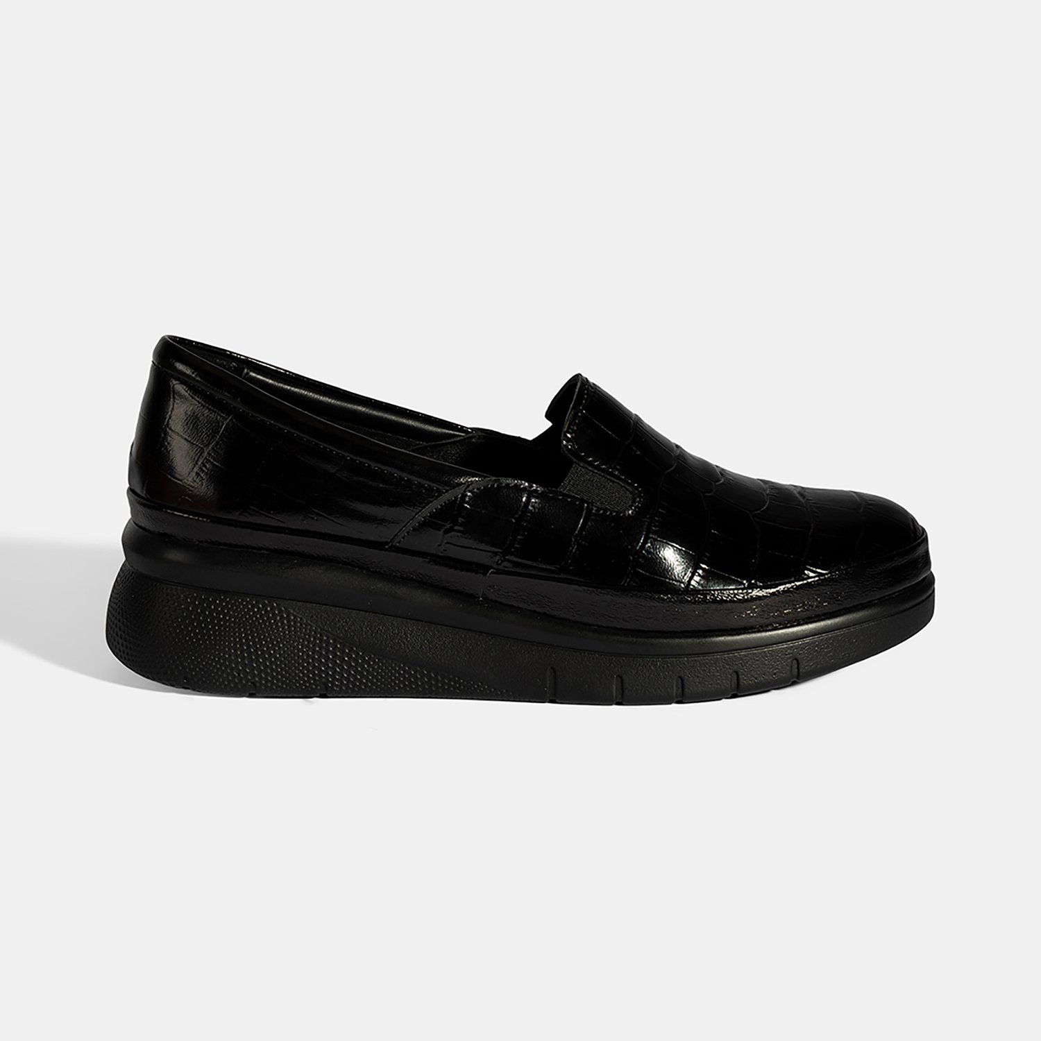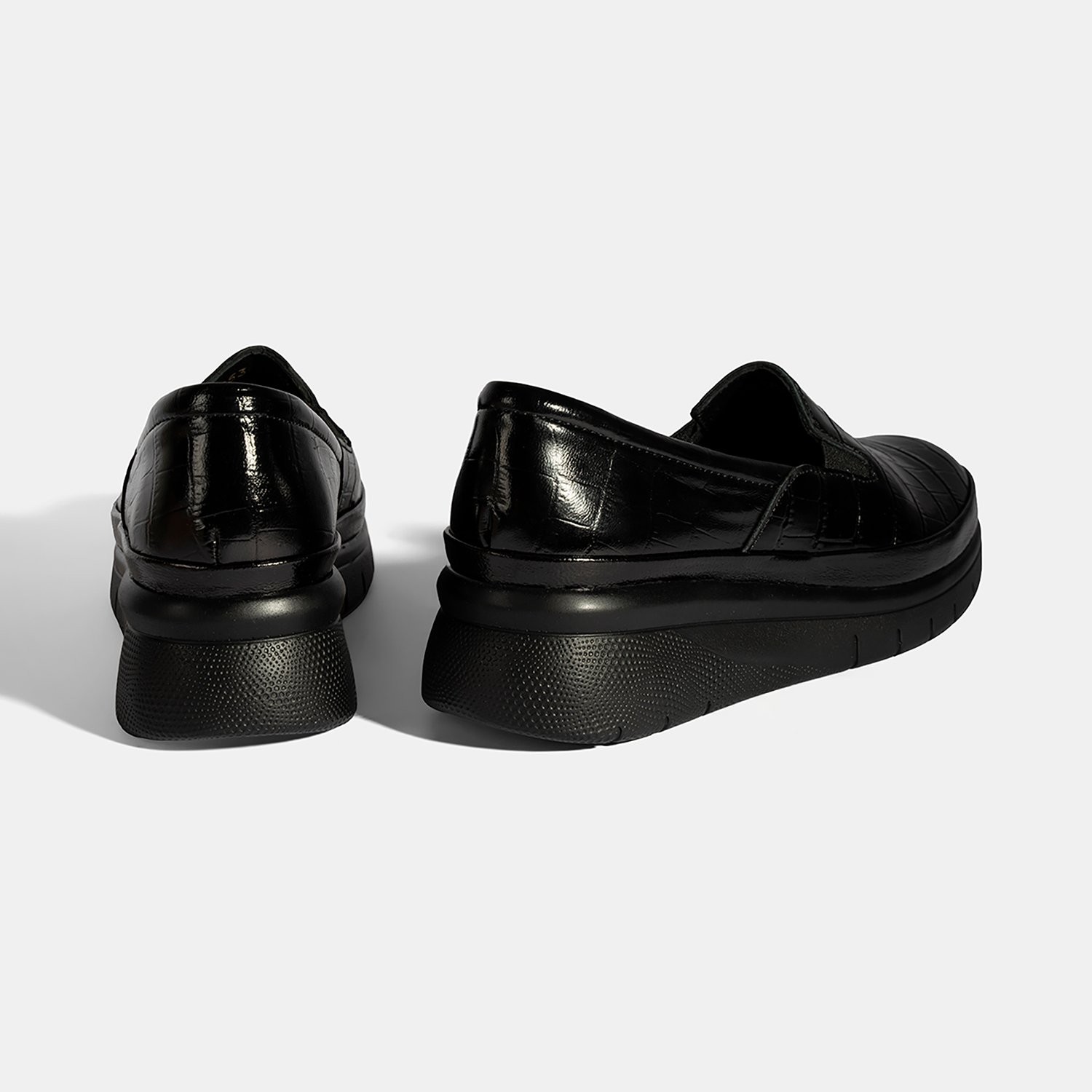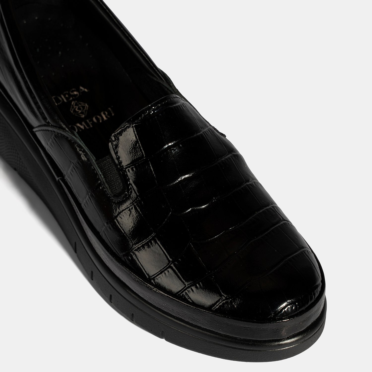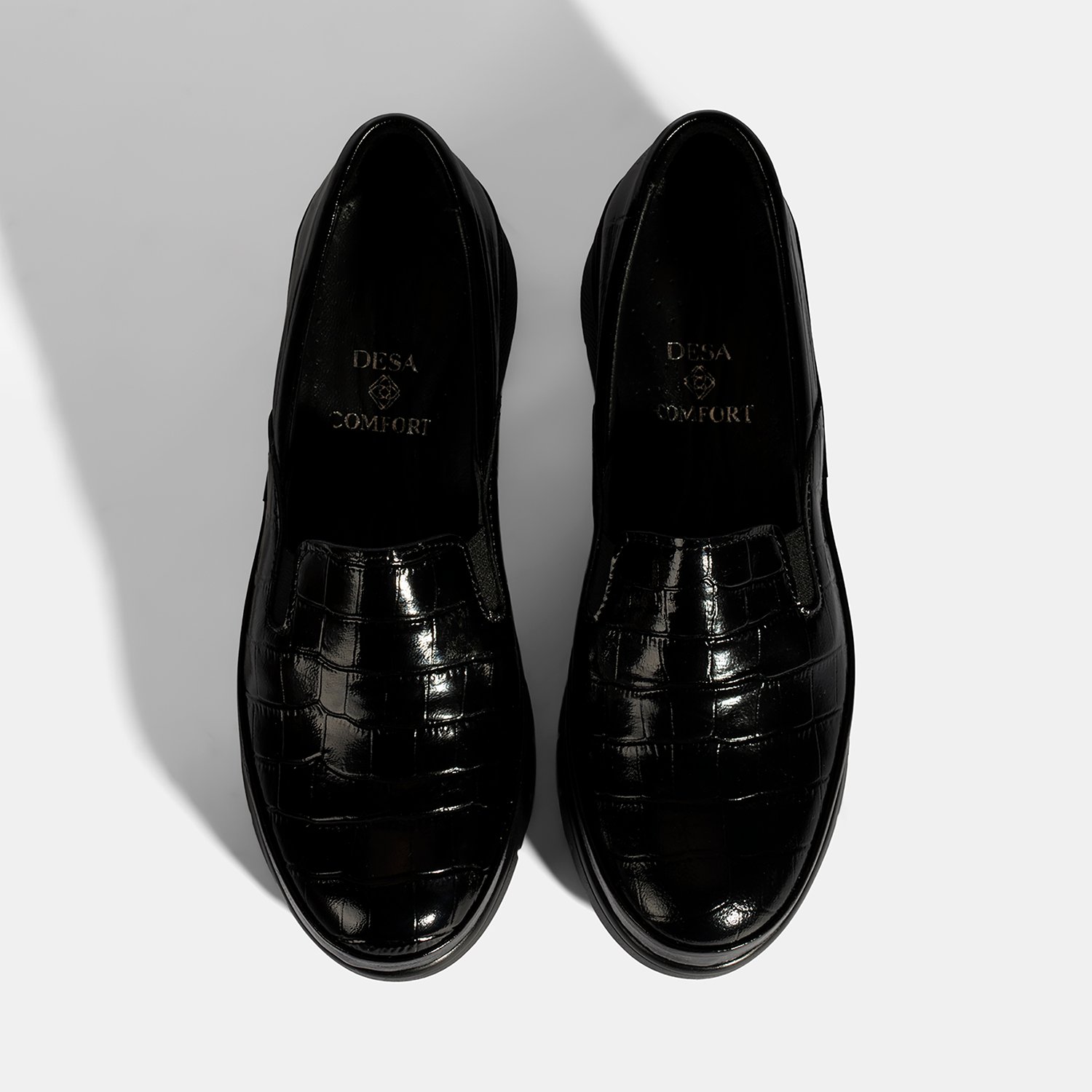 Kadın Siyah DesaComfort Kroko Baskılı Rugan Ayakkabı