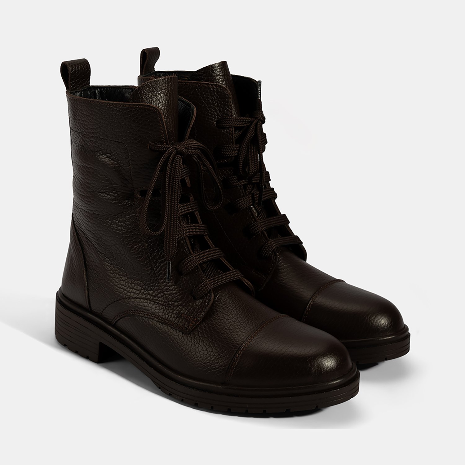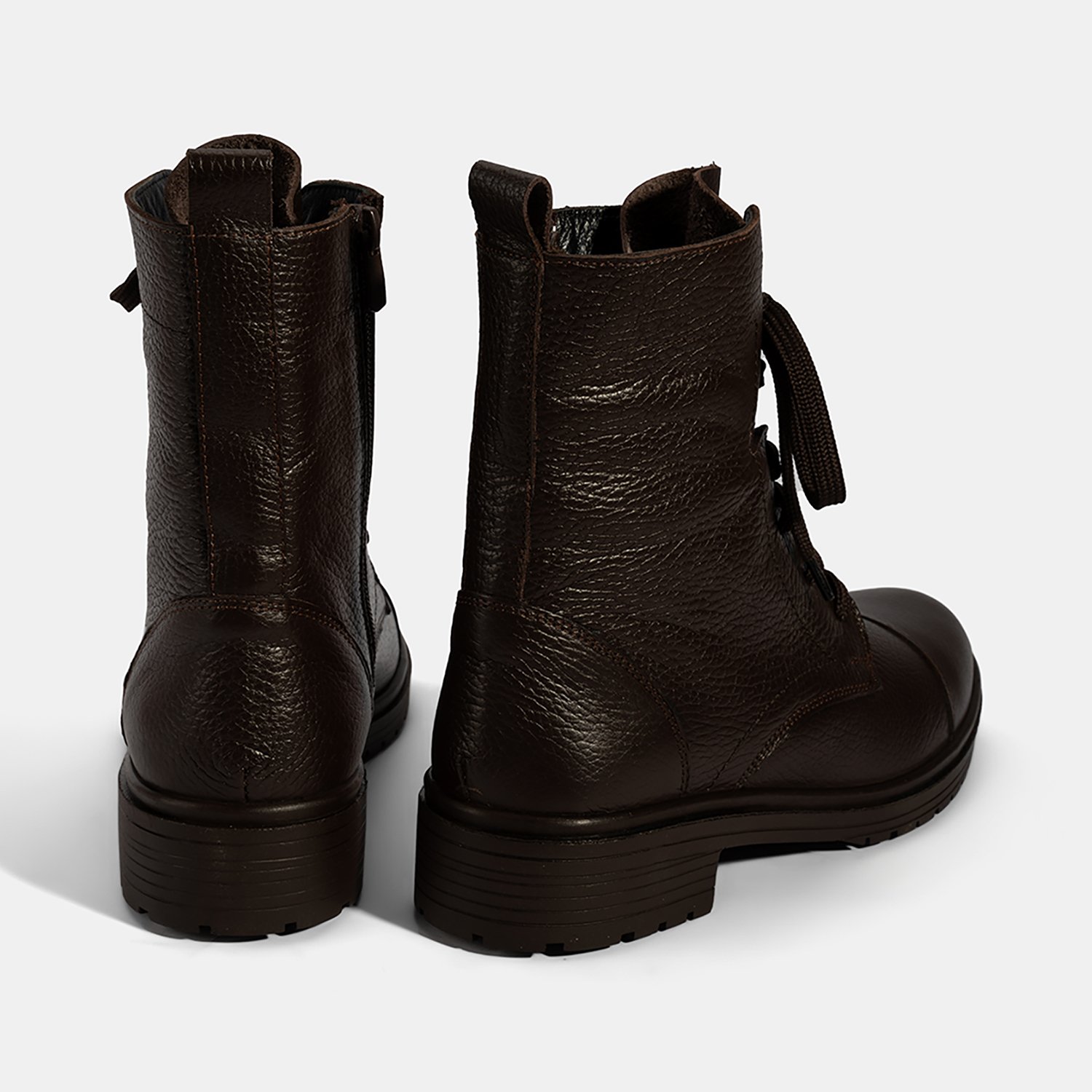 Kadın Kahve Bağcıklı Deri Postal Bot