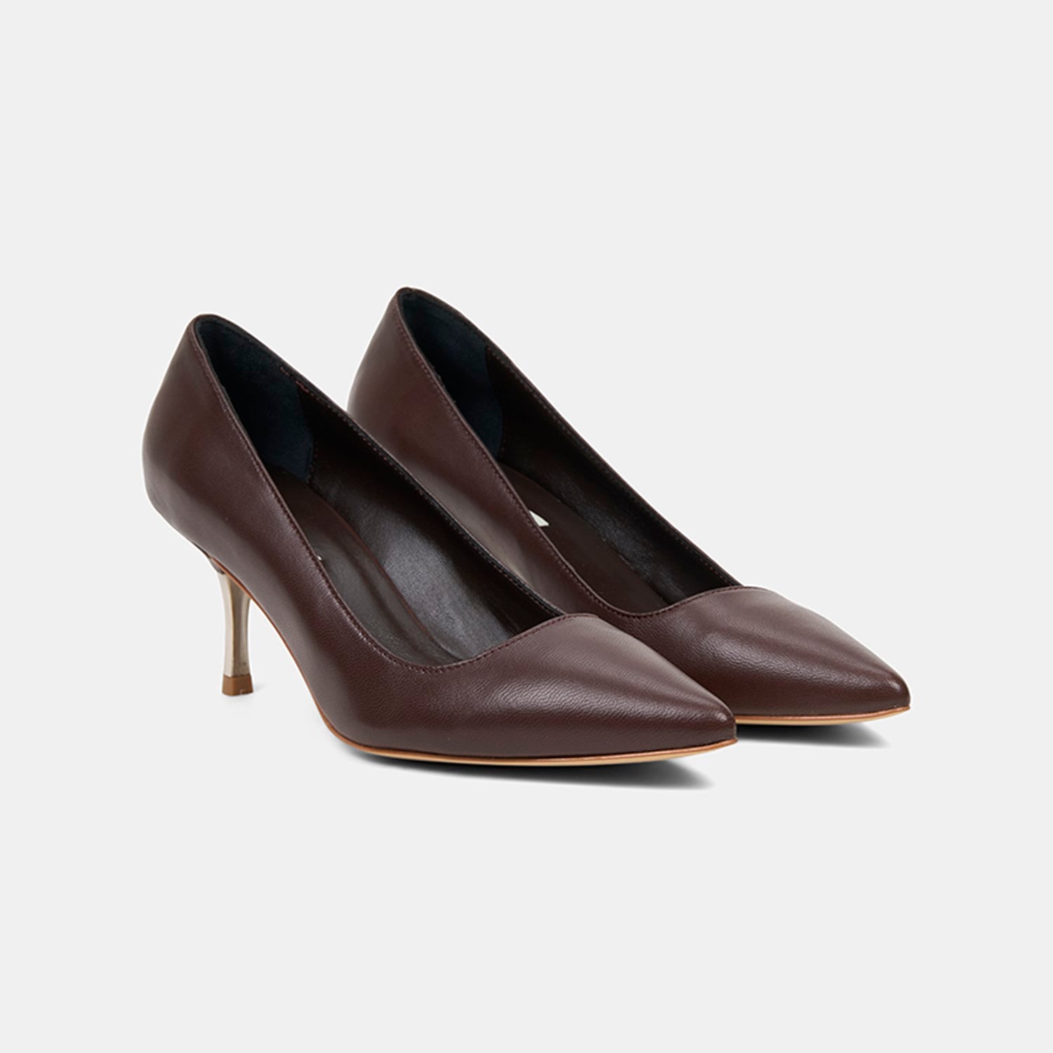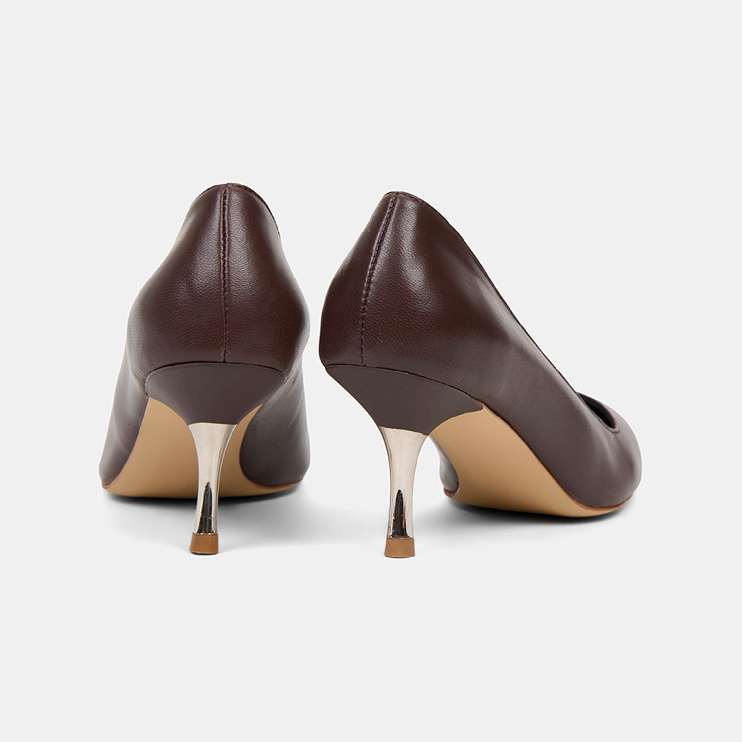 Kadın Kahve Sivri Burunlu Deri Stiletto