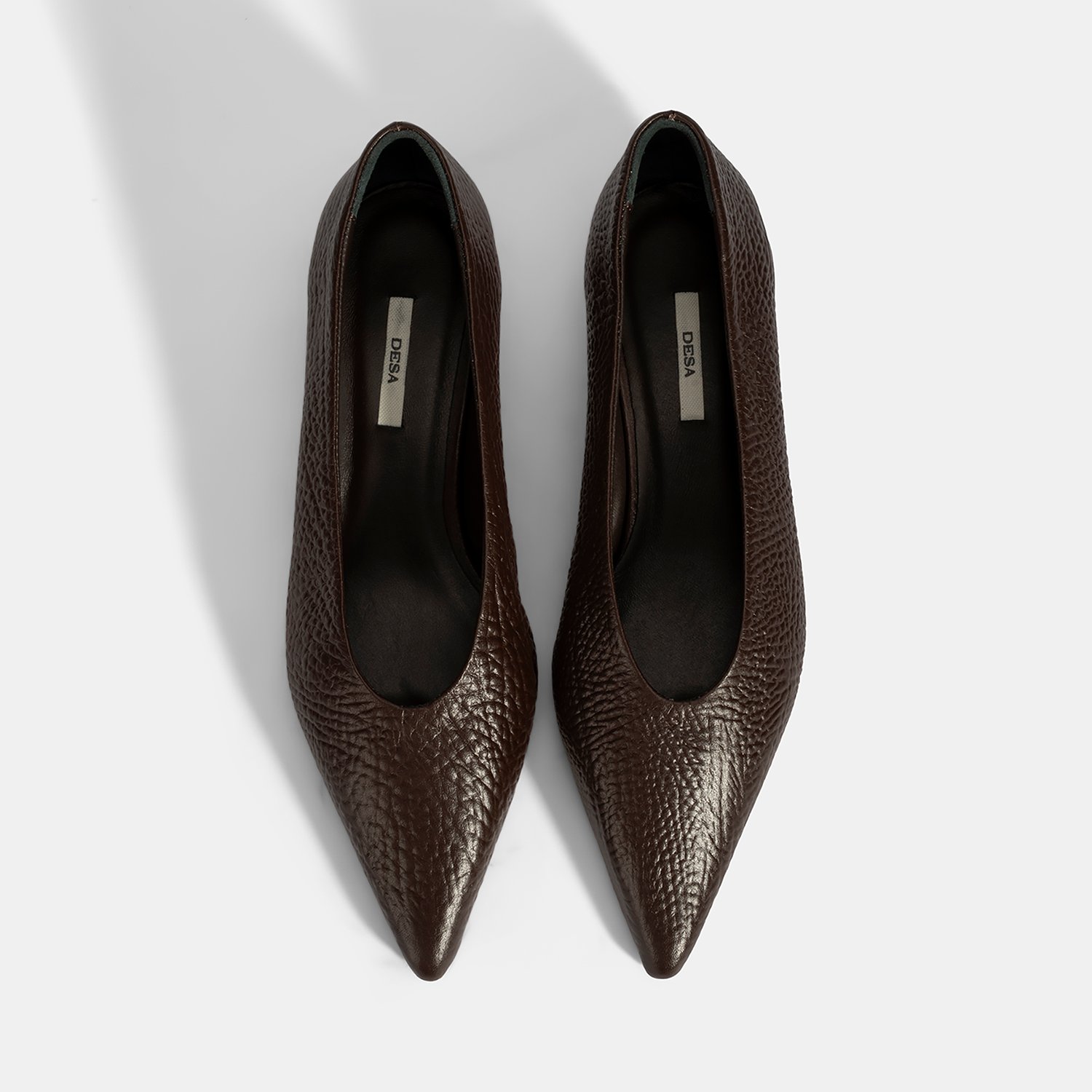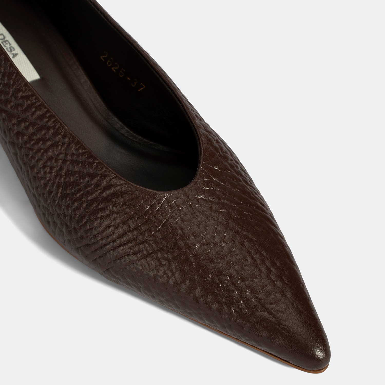 Kadın Kahve İnce Kısa Topuklu Deri Ayakkabı