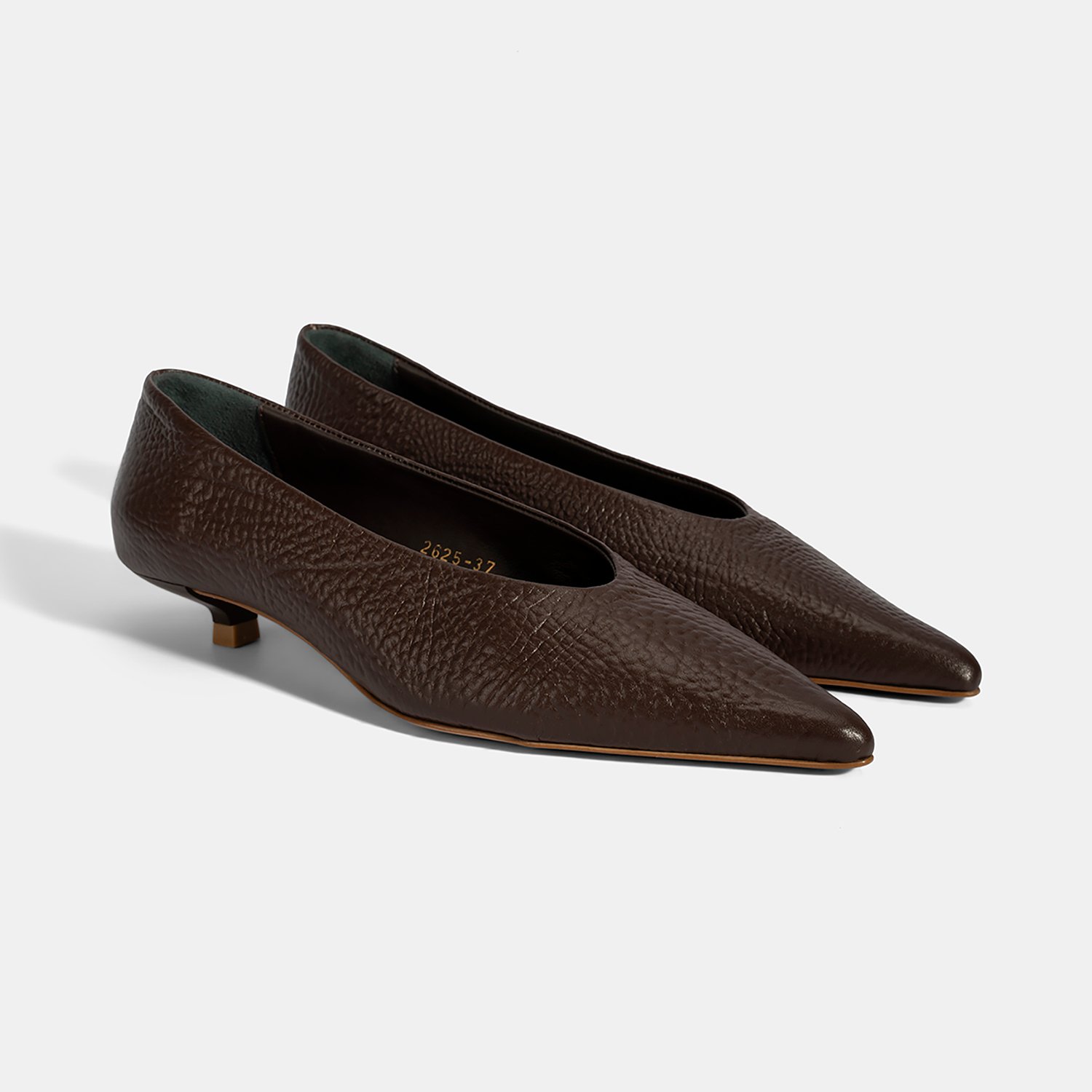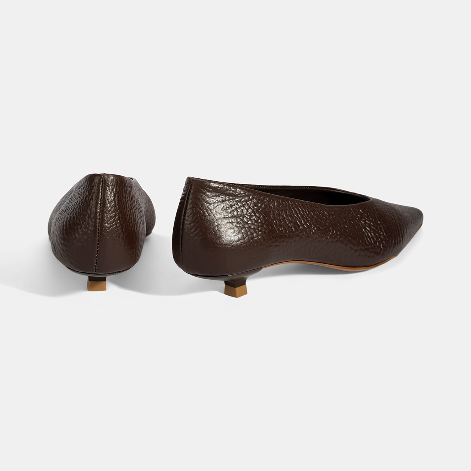 %100 deri, deri iç tabanlı, deri astarlı, neolit tabanlı, kitten topuklu kadın ayakkabı. Topuk yüksekliği: 2 cm.