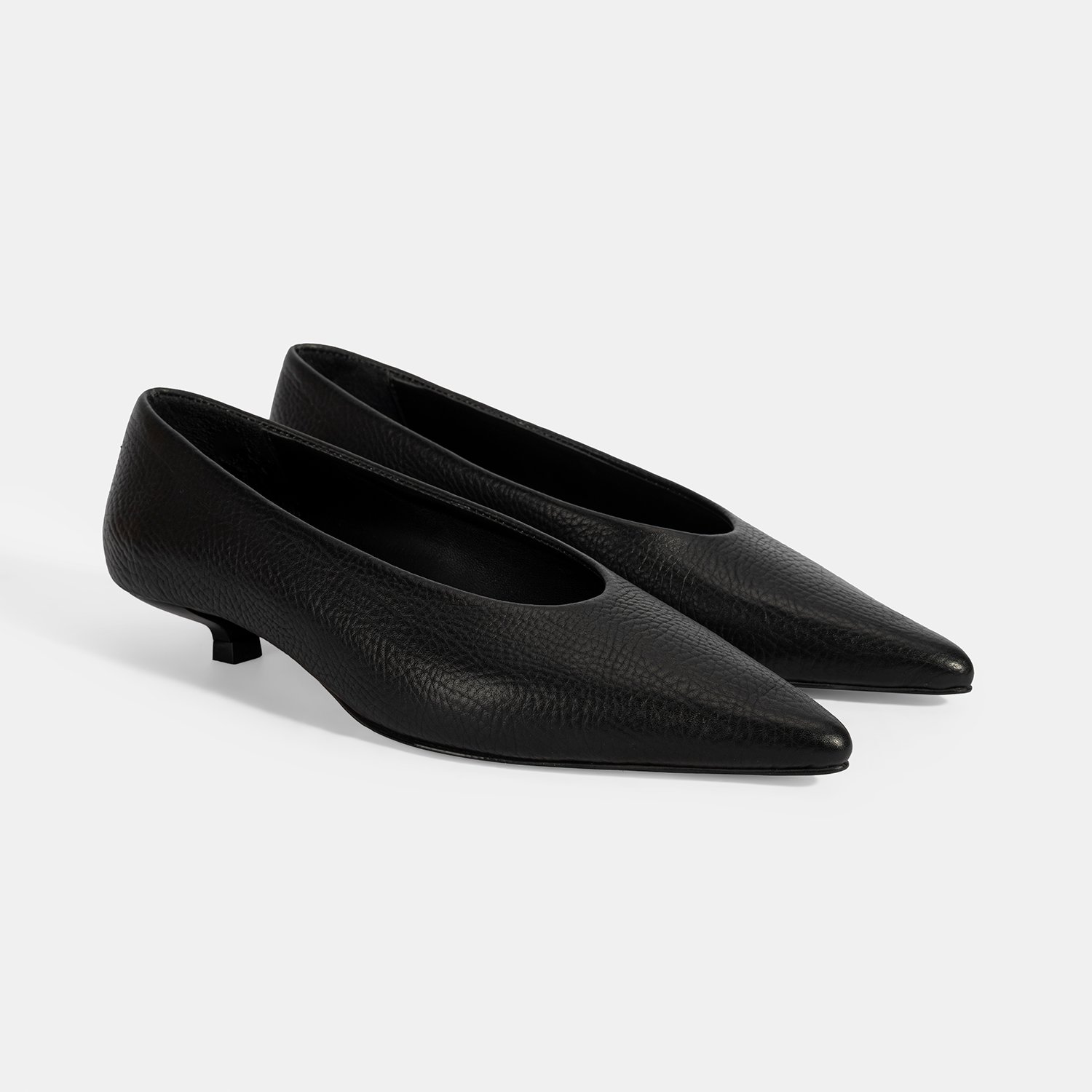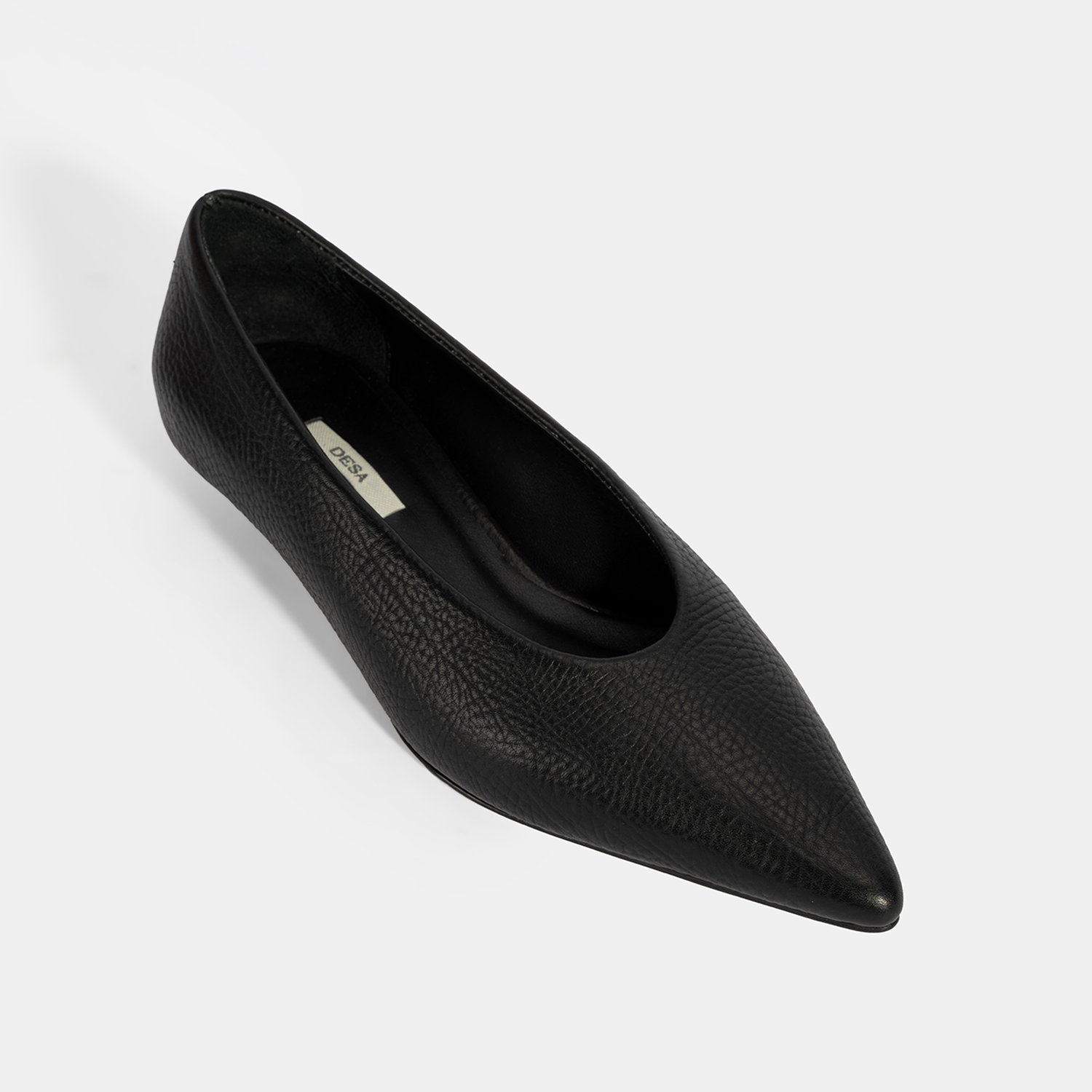 %100 deri, deri iç tabanlı, deri astarlı, neolit tabanlı, kitten topuklu kadın ayakkabı. Topuk yüksekliği: 2 cm.