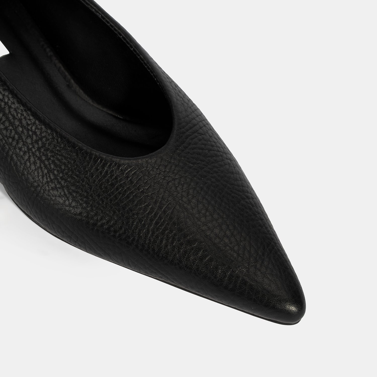Kadın Siyah İnce Kısa Topuklu Deri Ayakkabı