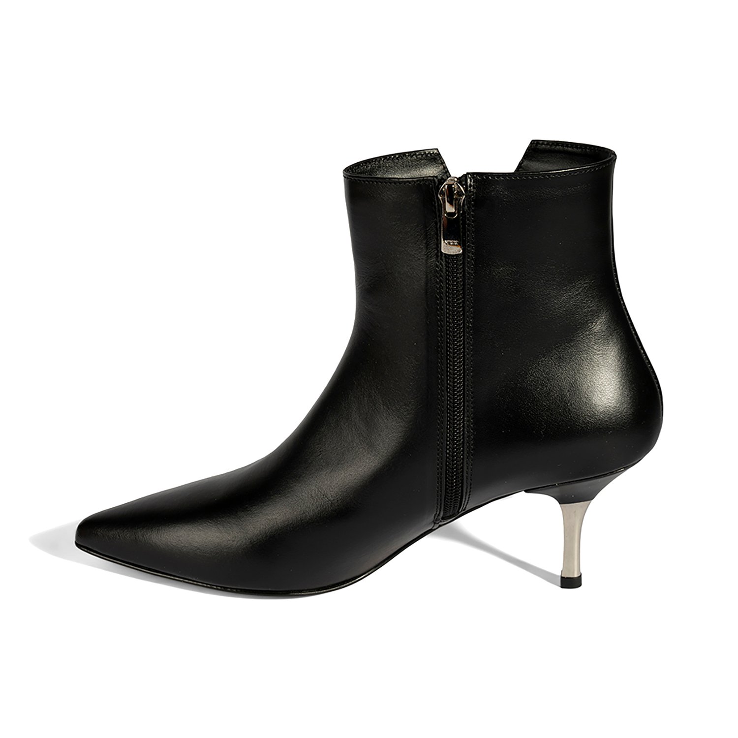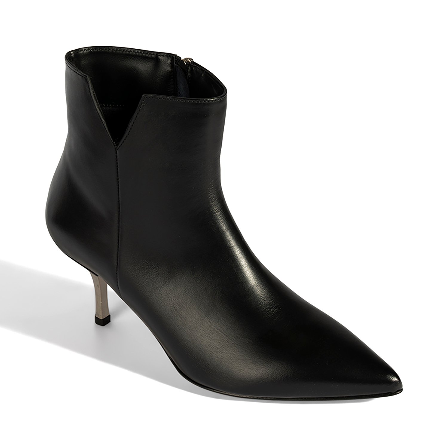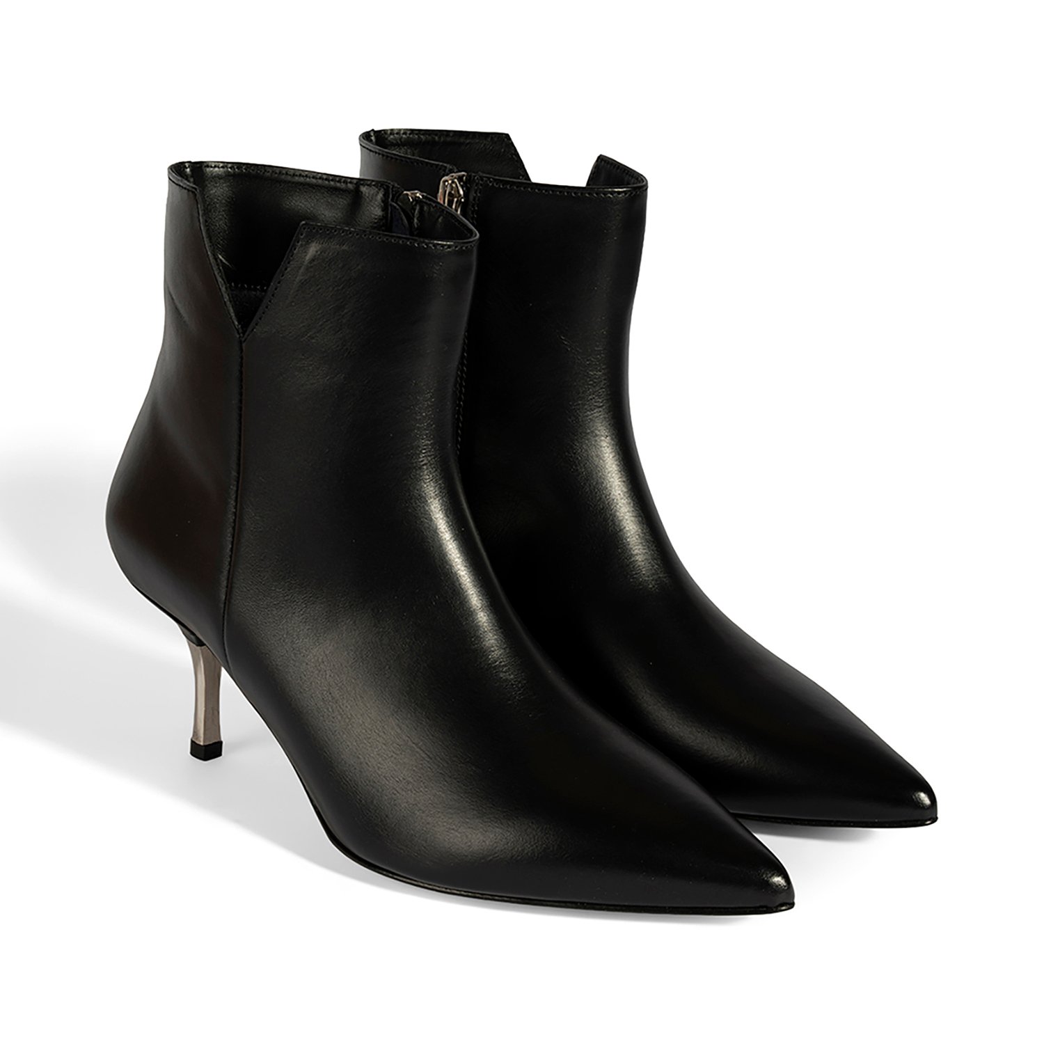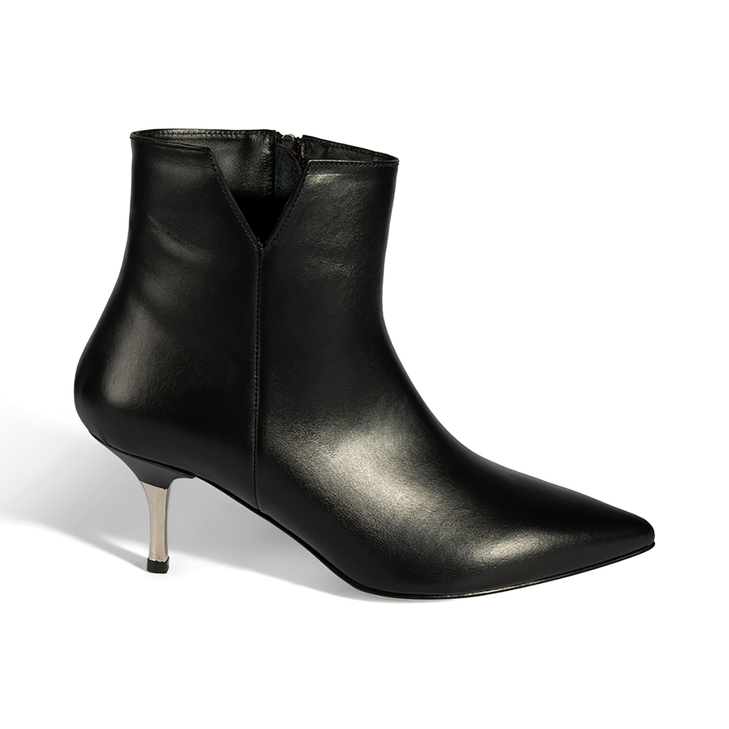 %100 deriden üretilen bu bot, deri iç tabanı ve tekstil astarıyla konfor sunar. Neolit tabanı, metal ökçe detayı ve 7,5 cm ince topuğuyla şıklığı tamamlar. İçten fermuarı sayesinde kolay giyilip çıkarılabilir.