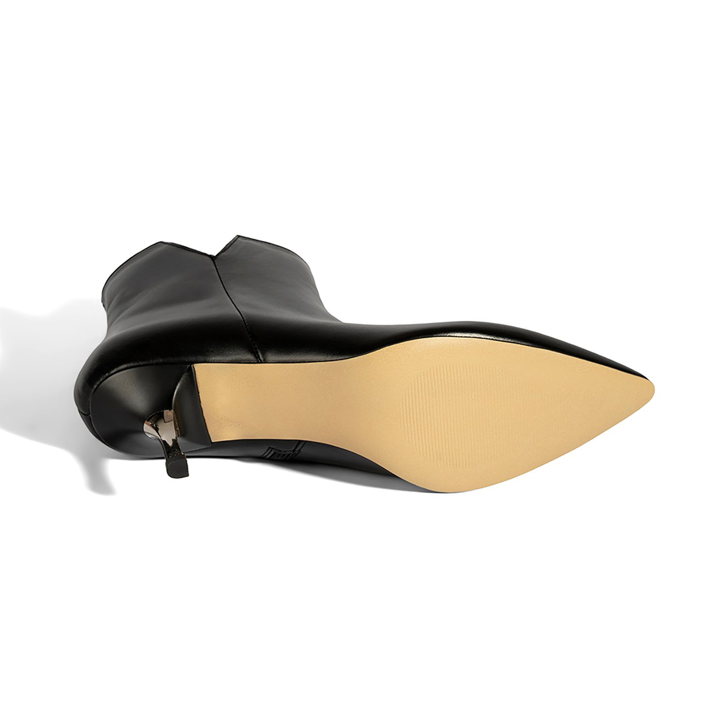 Kadın Siyah İnce Topuklu Sivri Burunlu Deri Bot