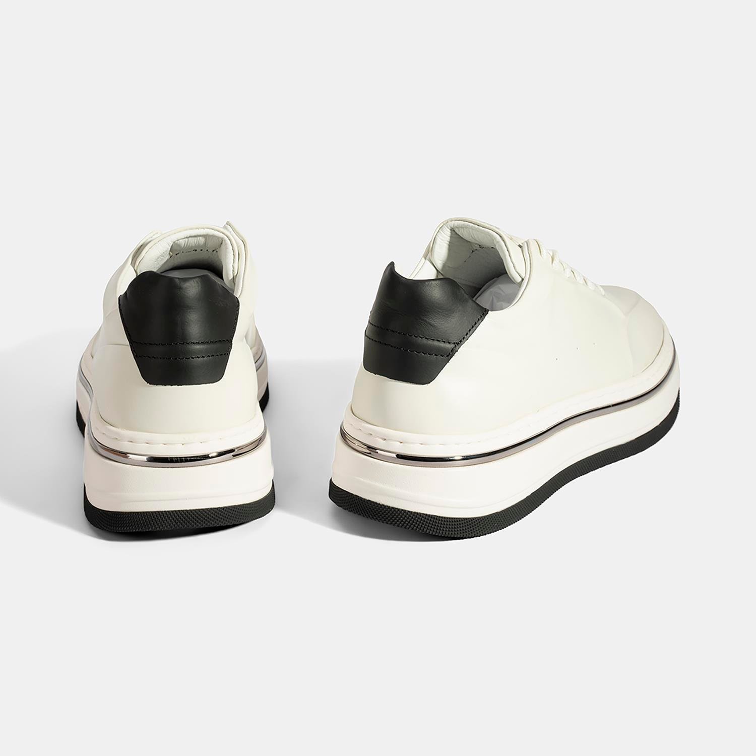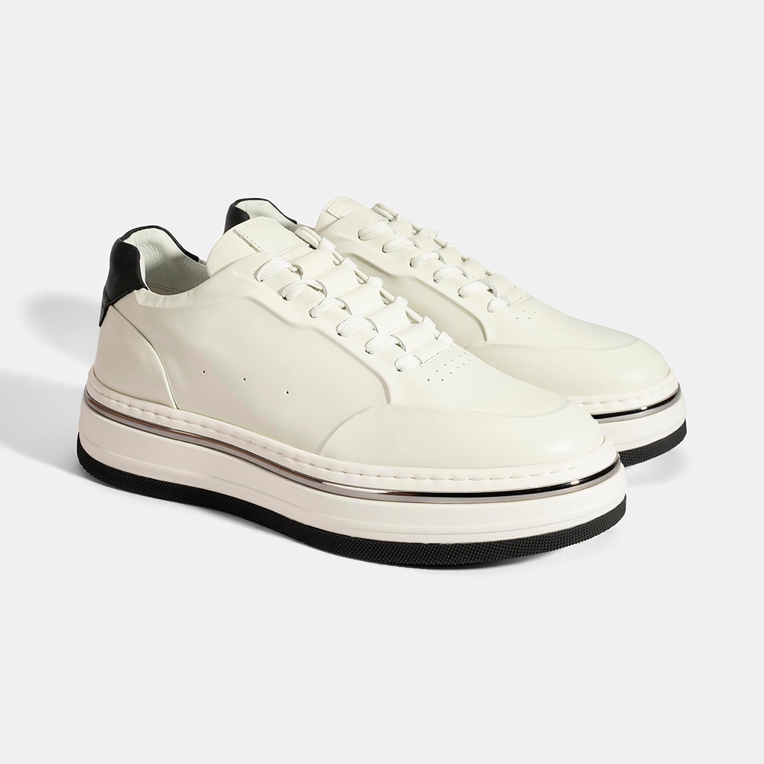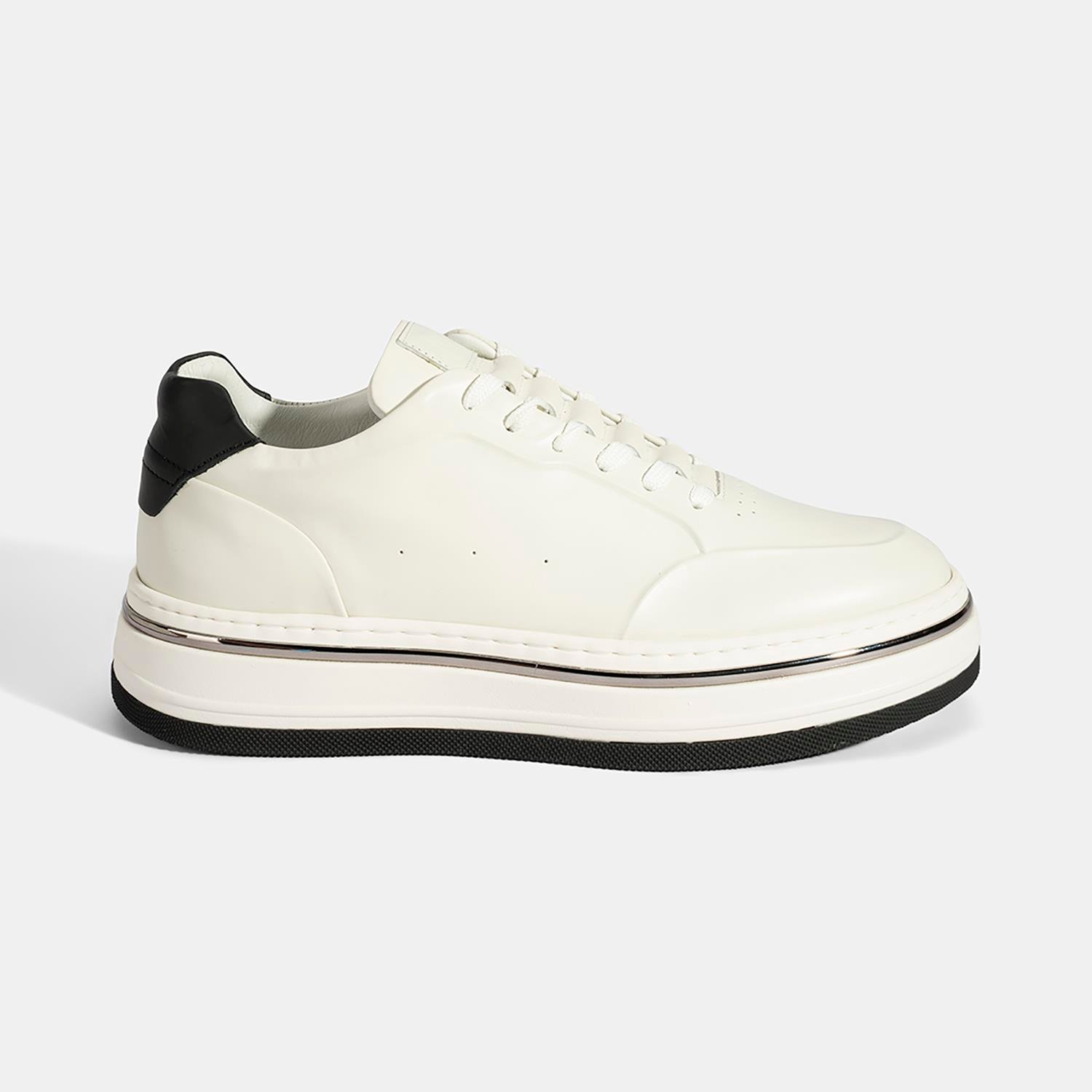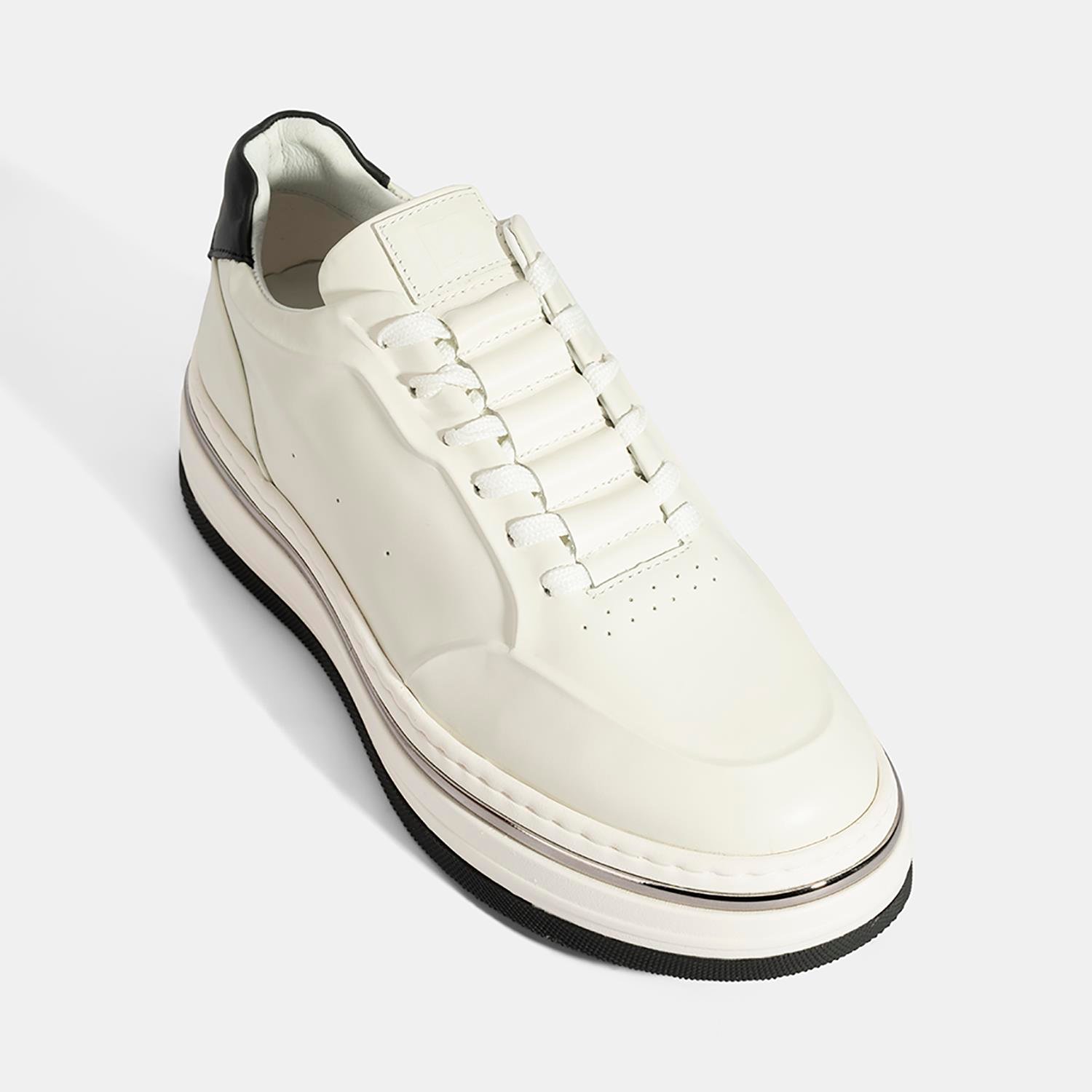 Erkek Beyaz Bağcıklı Deri Spor Ayakkabı