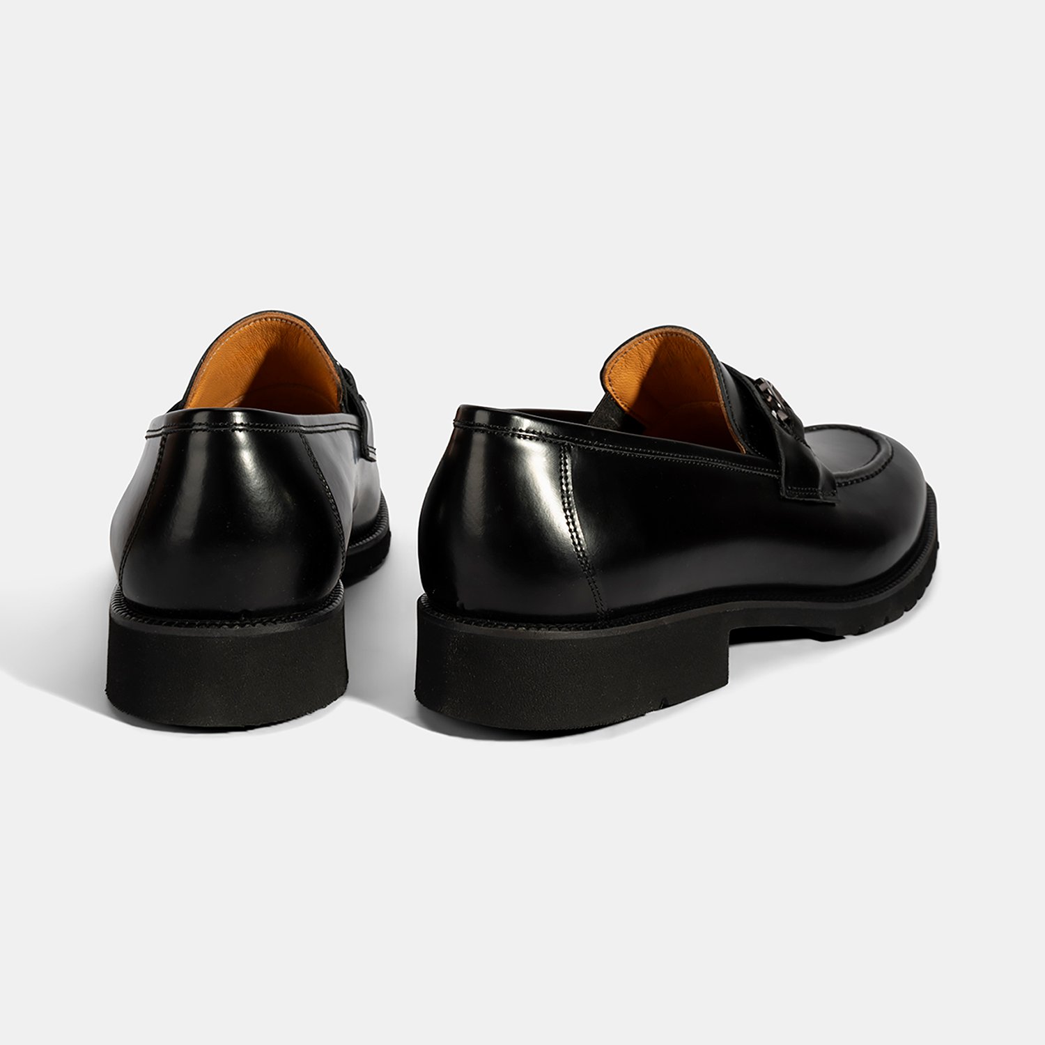 Erkek Siyah Metal Aksesuarlı Deri Loafer