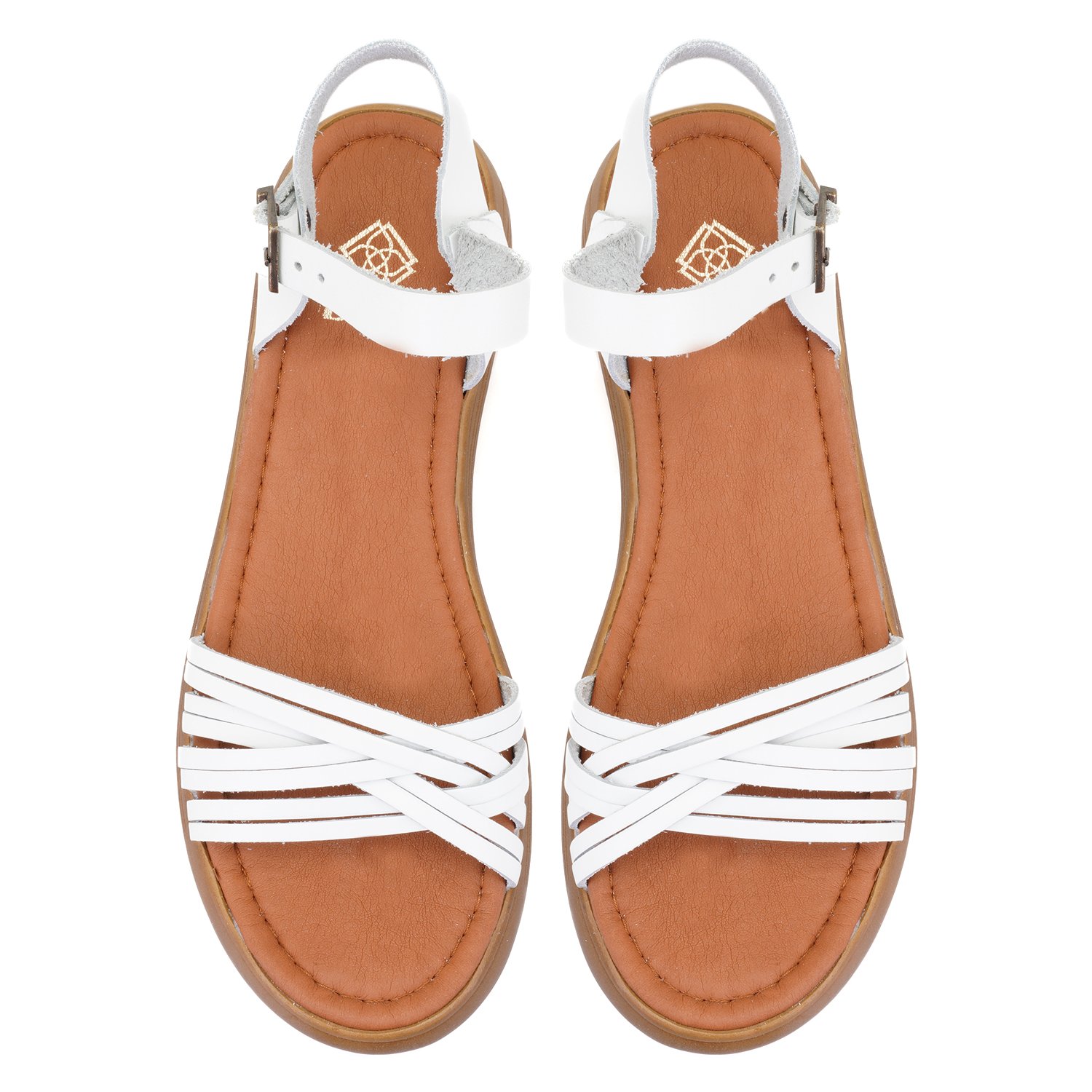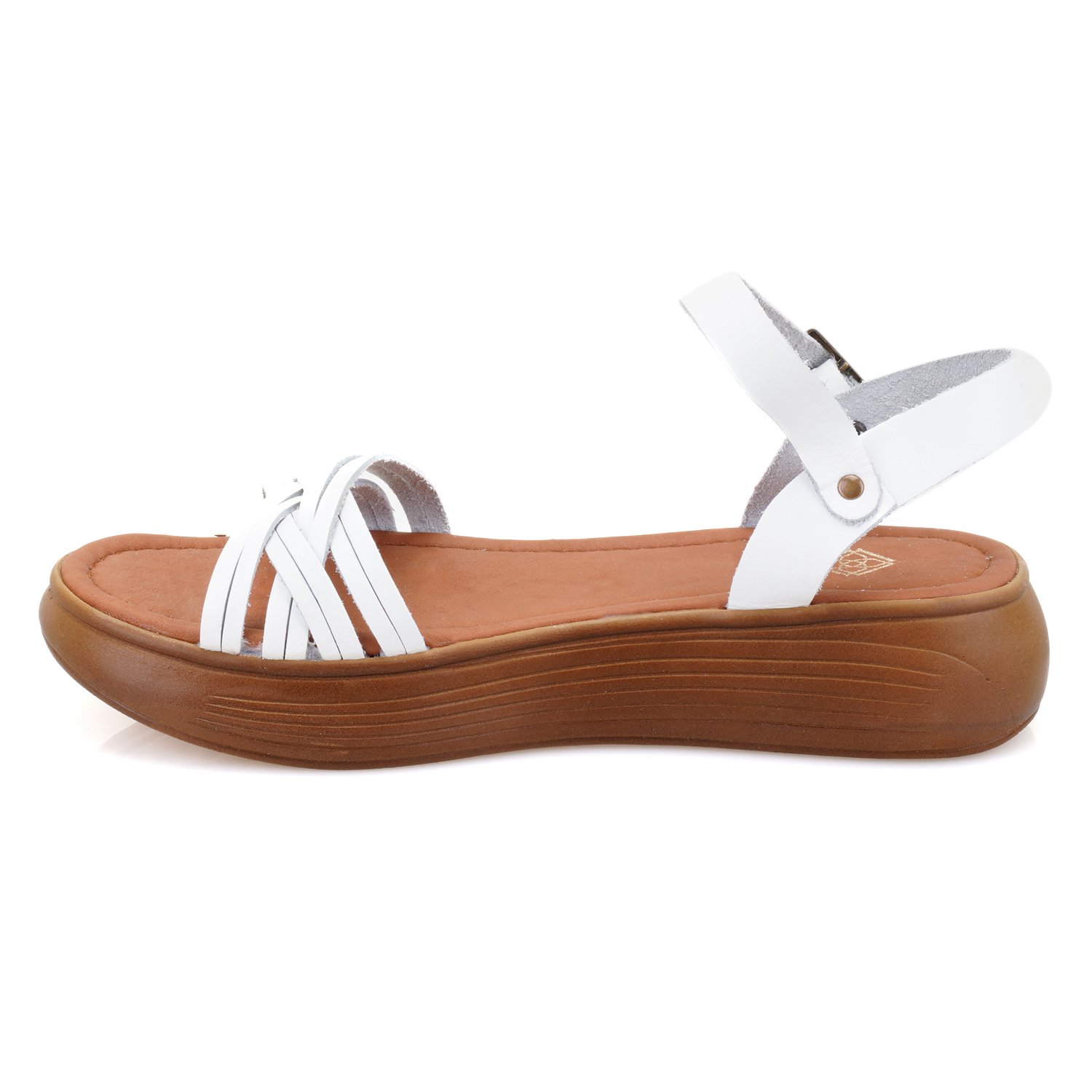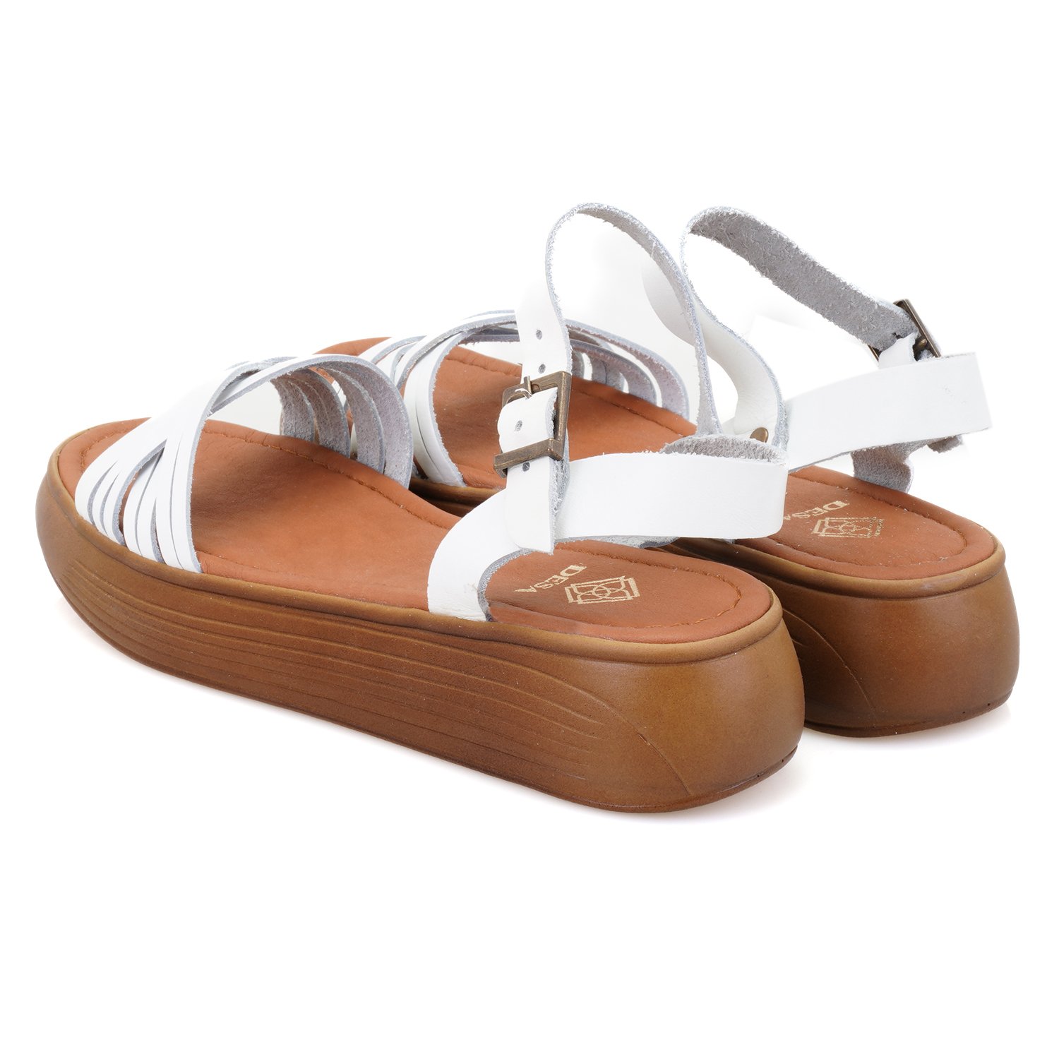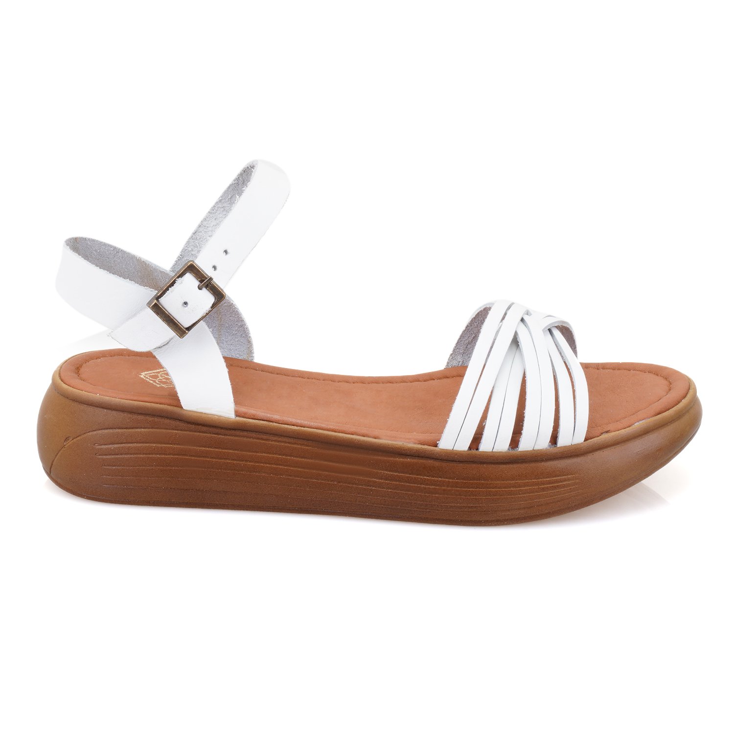 Vaketa deri,ayarlanabilir metal aksesuarlı,esnek ve hafif pu tabanlı kadın sandalet.