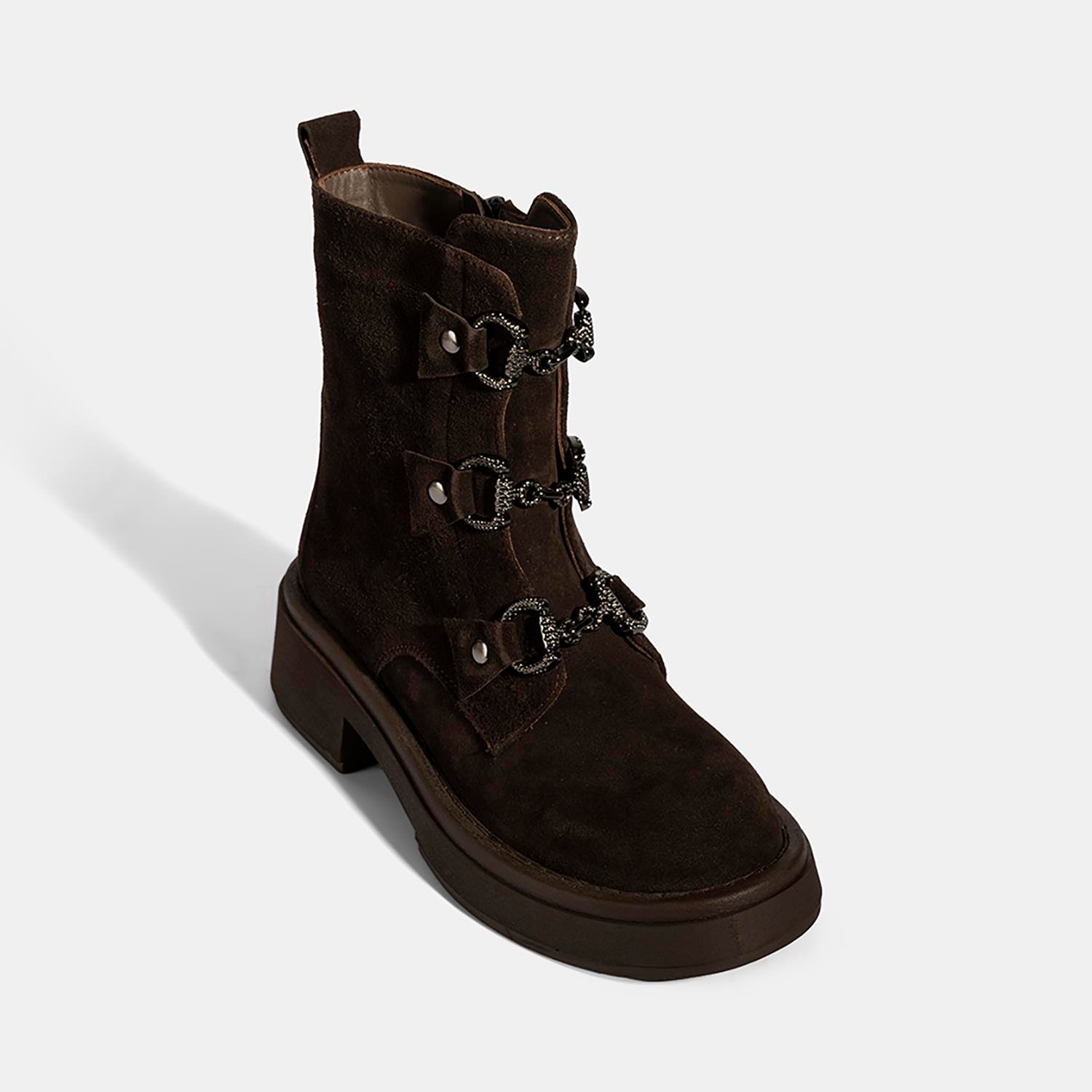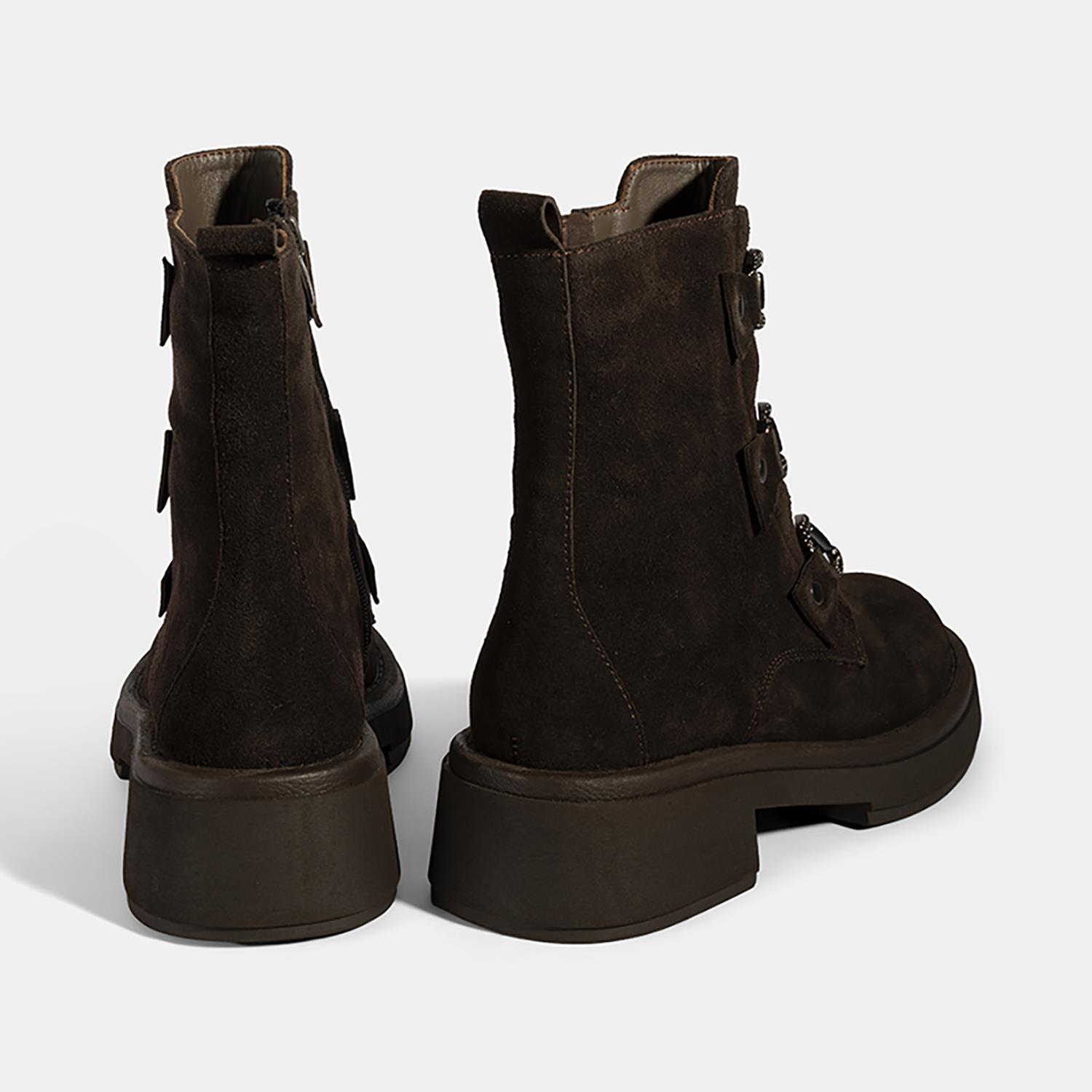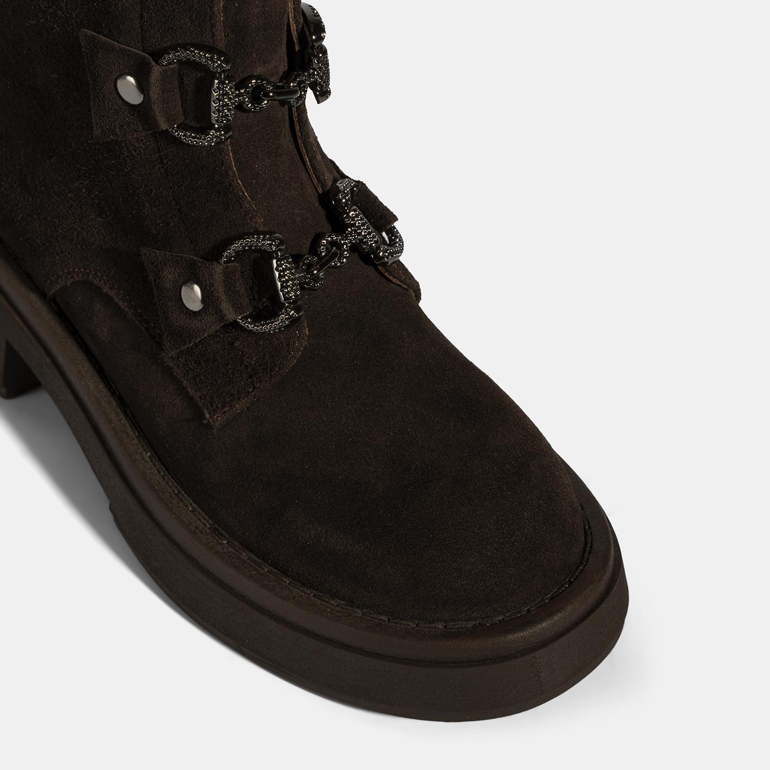Kadın Kahve Metal Toka Detaylı Süet Deri Bot