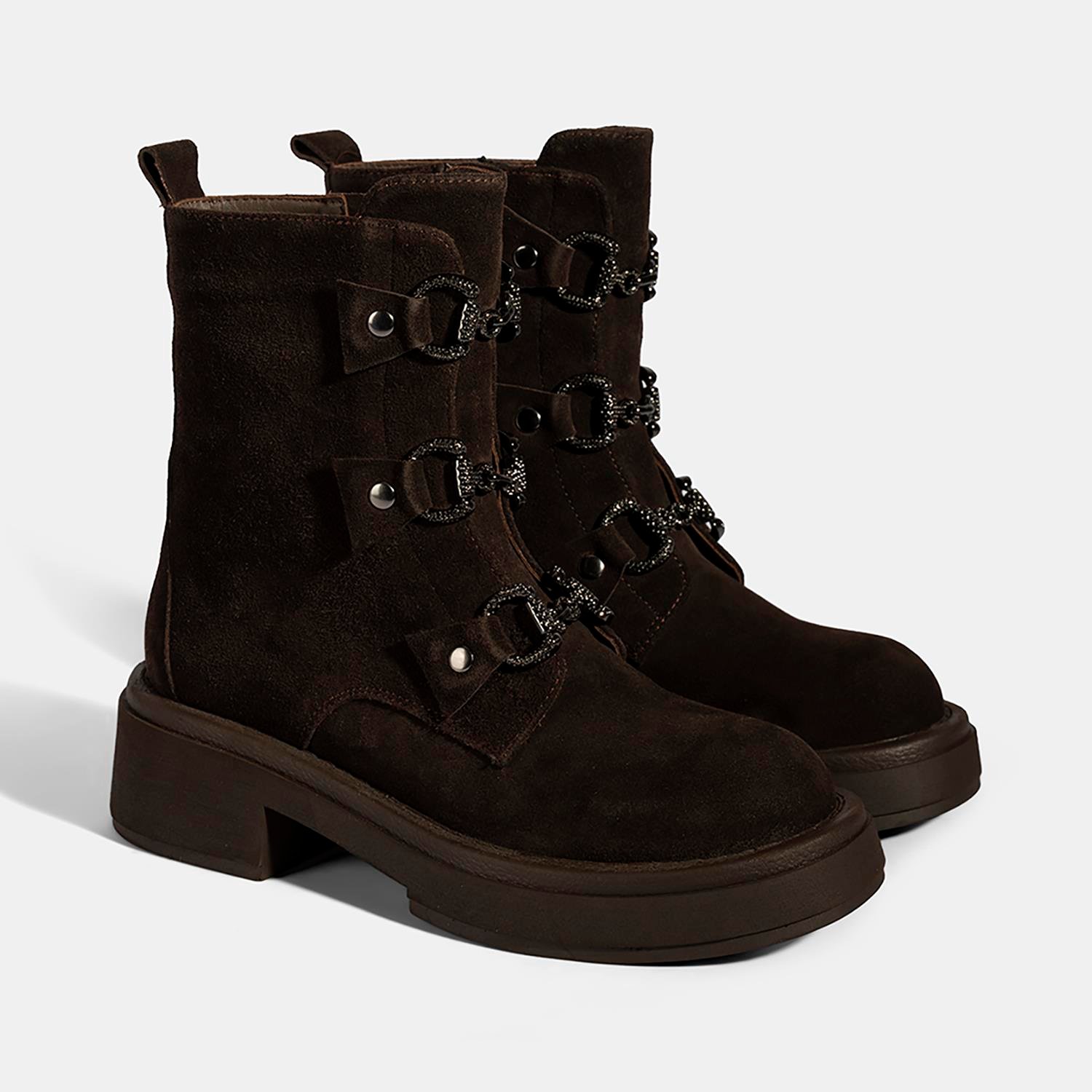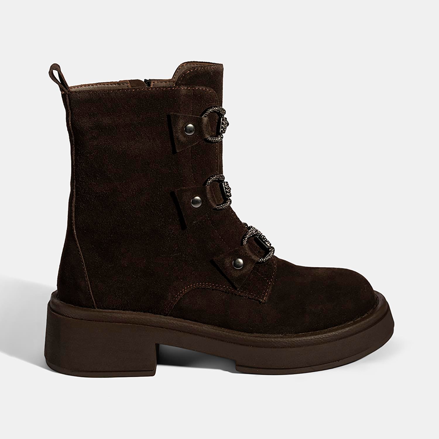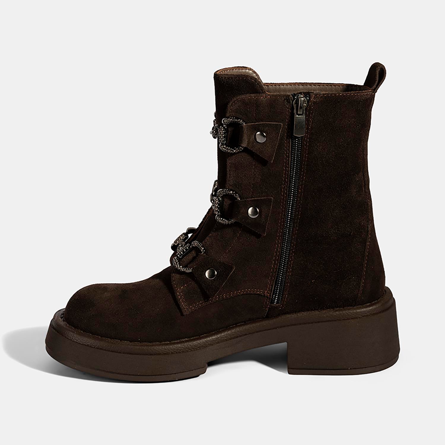 Kadın Kahve Metal Toka Detaylı Süet Deri Bot