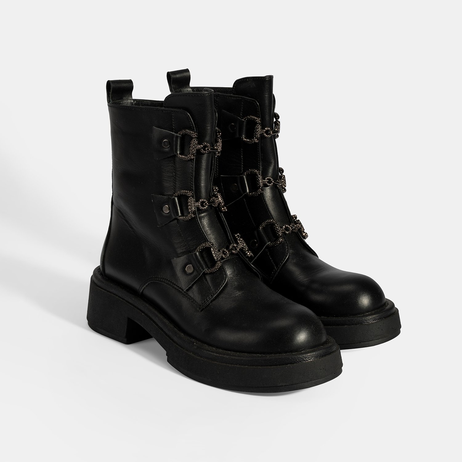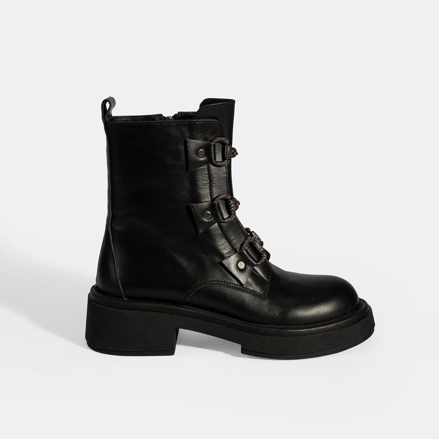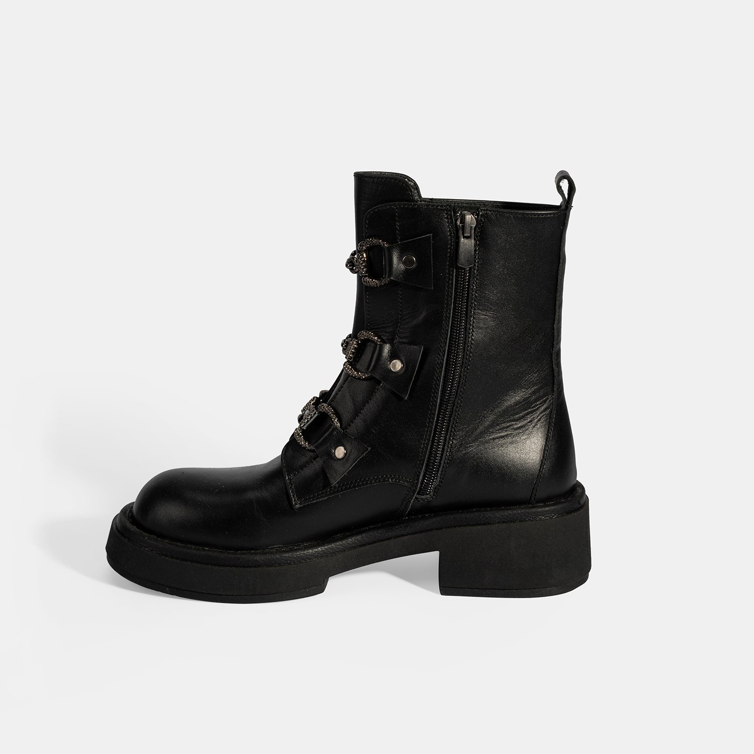 Kadın Siyah Metal Toka Detaylı Deri Postal Bot
