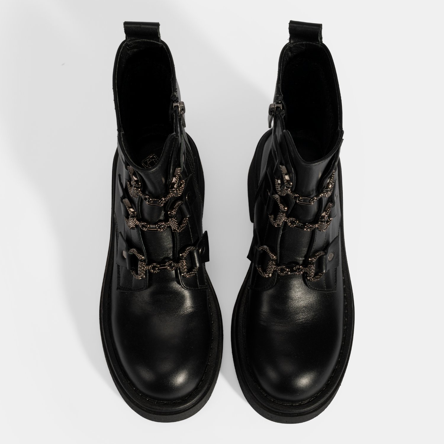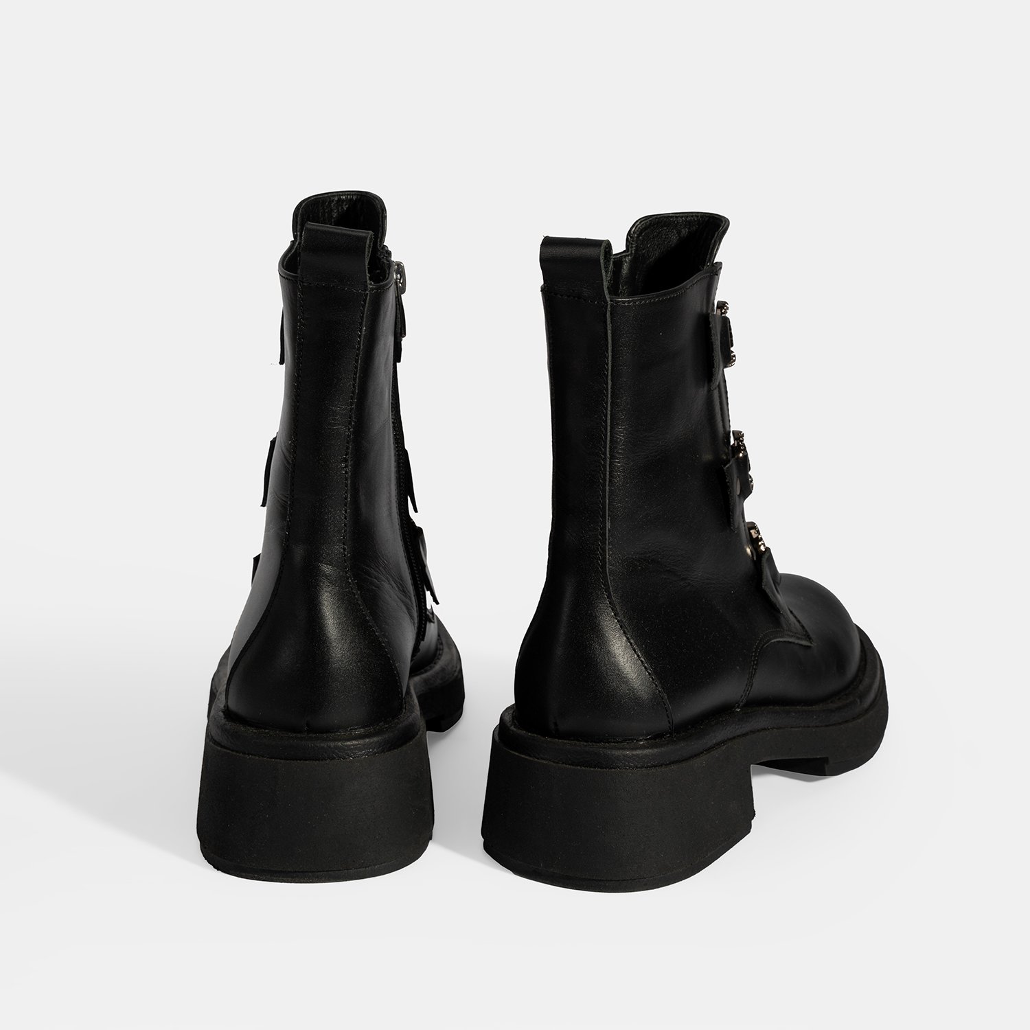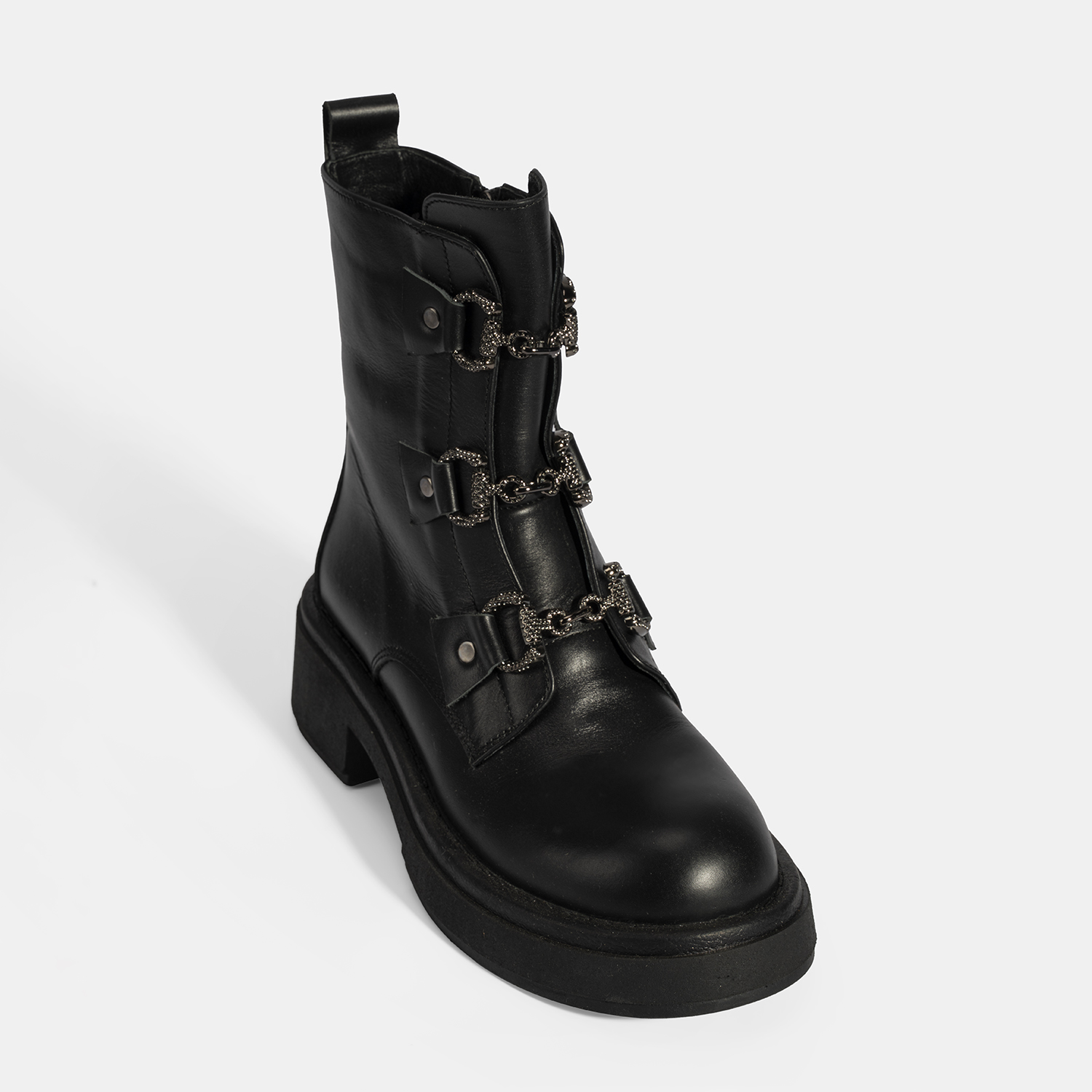 Kadın Siyah Metal Toka Detaylı Deri Postal Bot