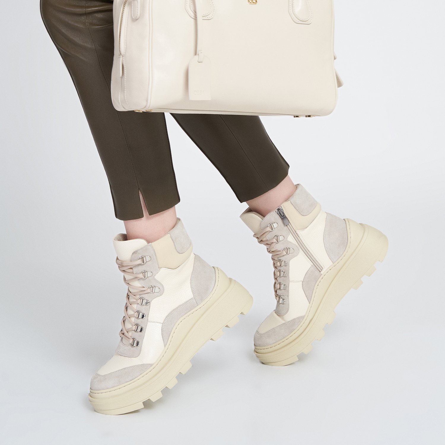 Floter deri&süet deri,deri iç tabanlı,bağcıklı,esnek ve hafif poliüretan tabanlı kadın bot.
