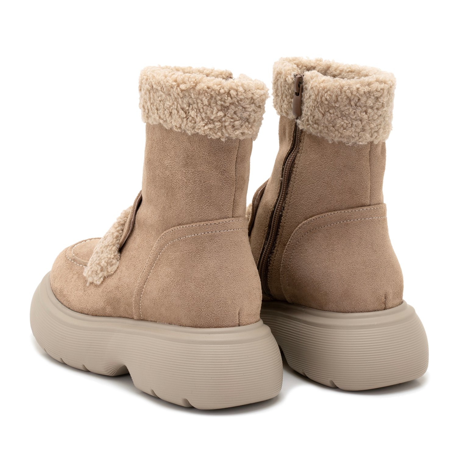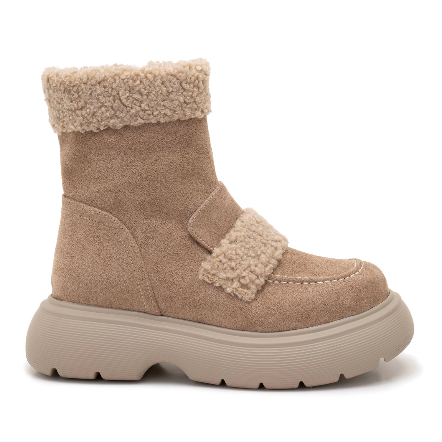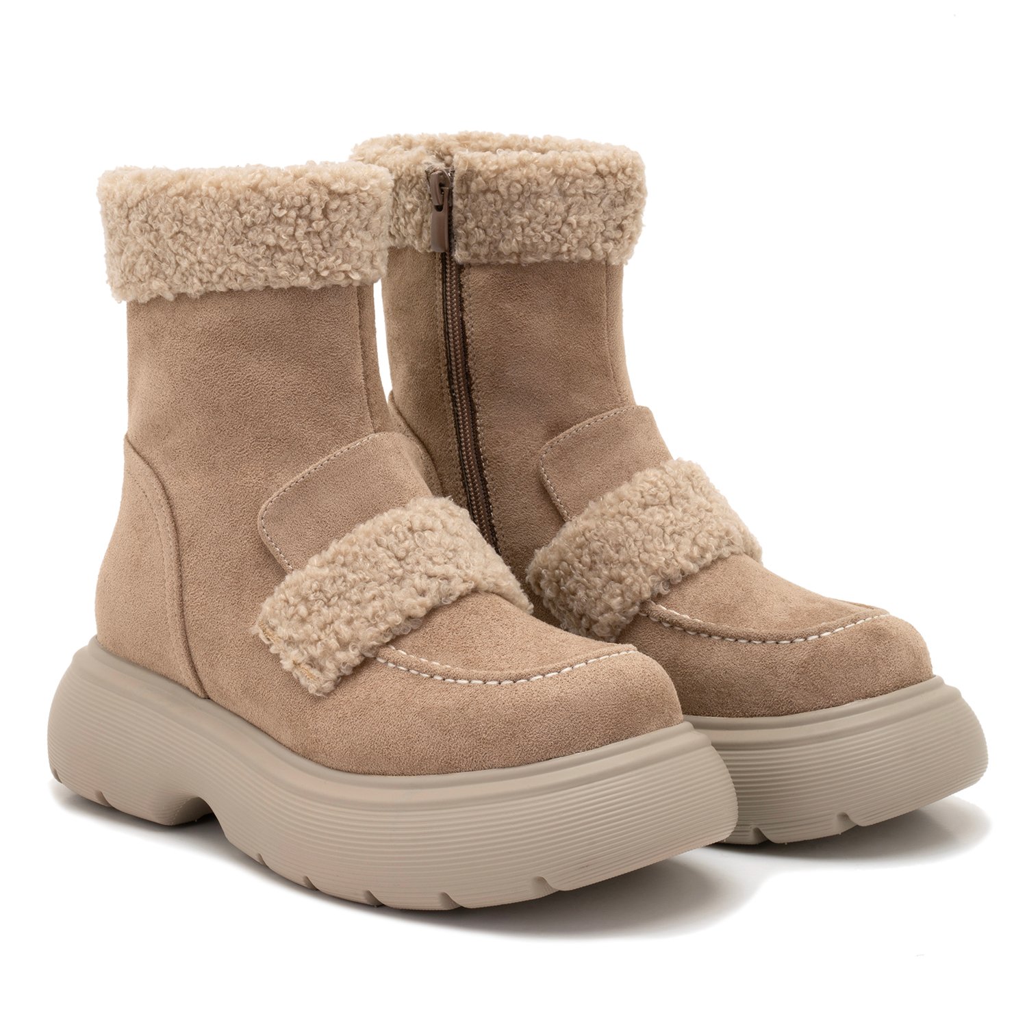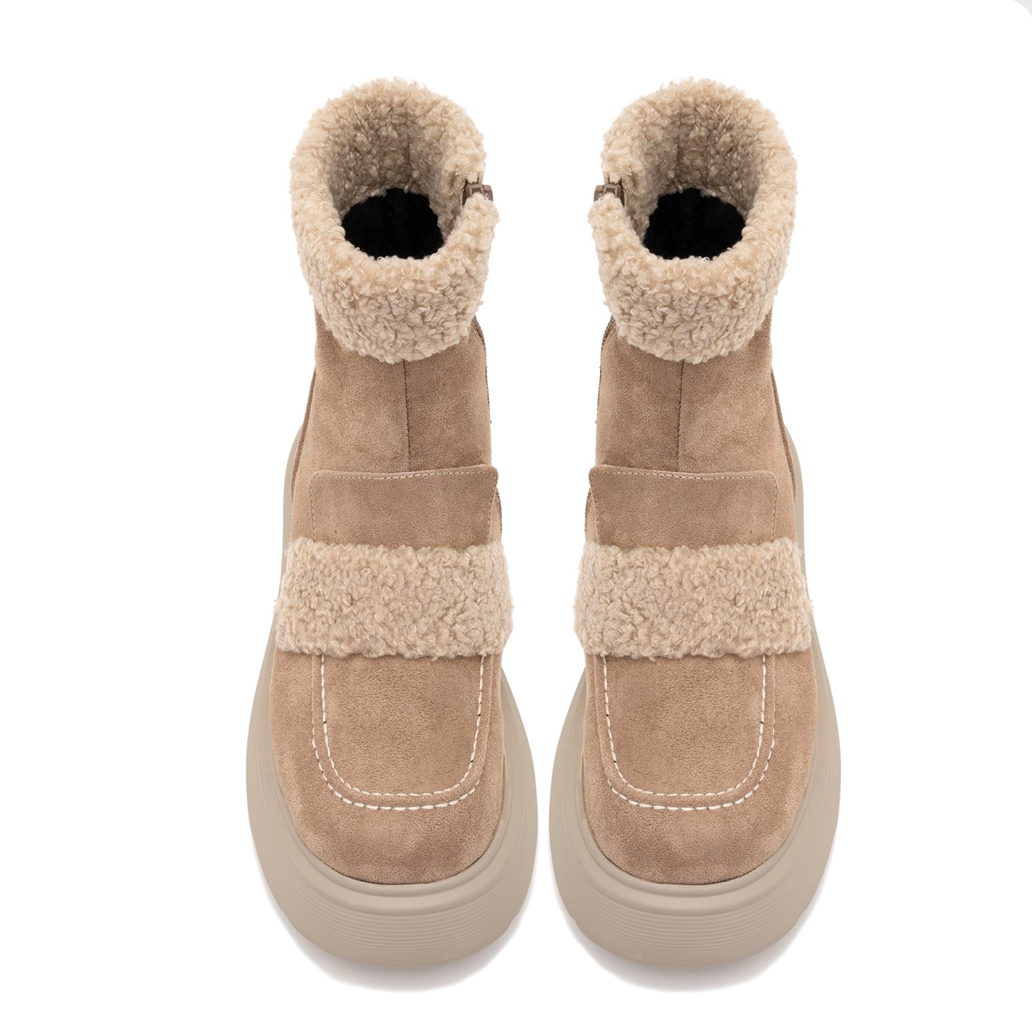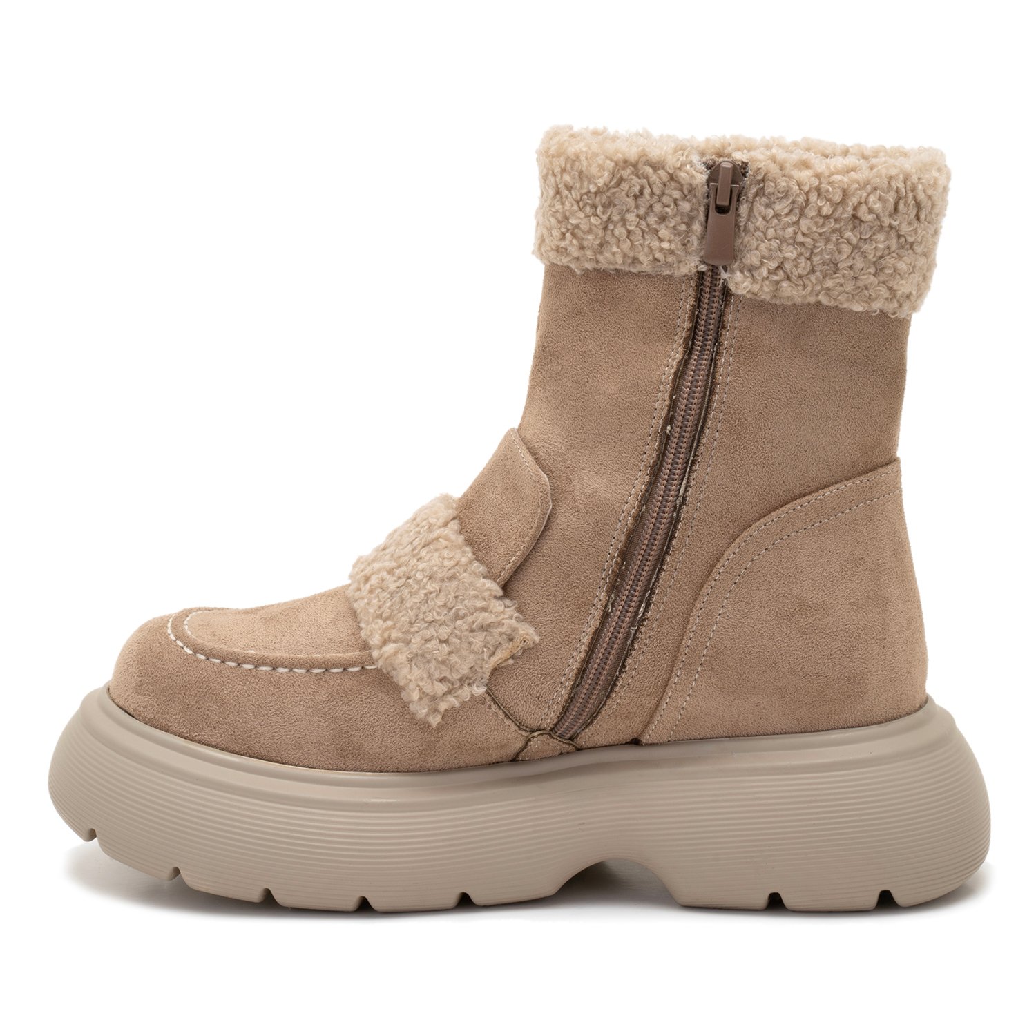 Pu materyalden üretilmiştir, teksitl iç astarlı, tekstil iç tabanlı, yün kürk detaylı, thermo tabanlı, içten fermuarlı kadın bot.