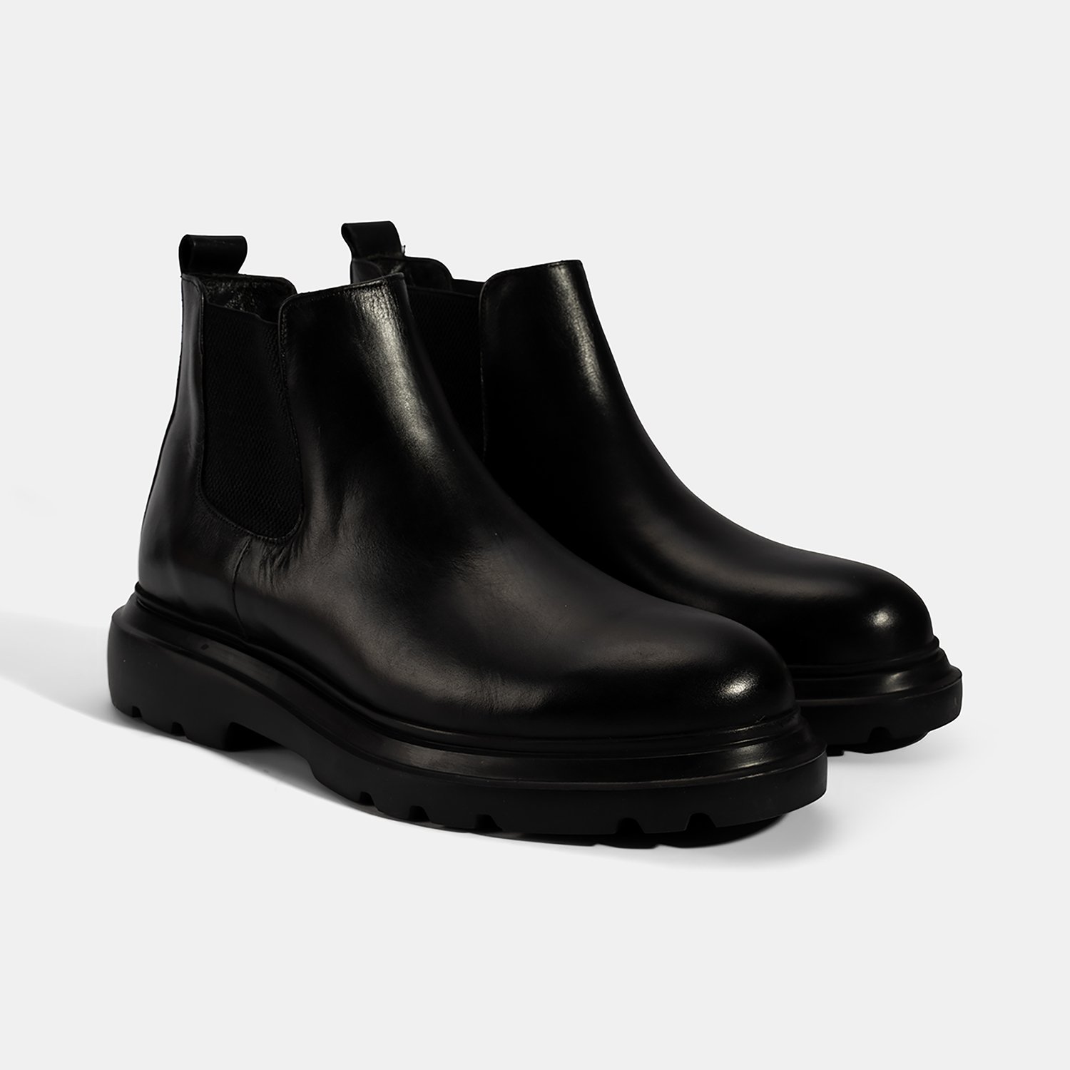 Erkek Siyah Lastikli Deri Bot