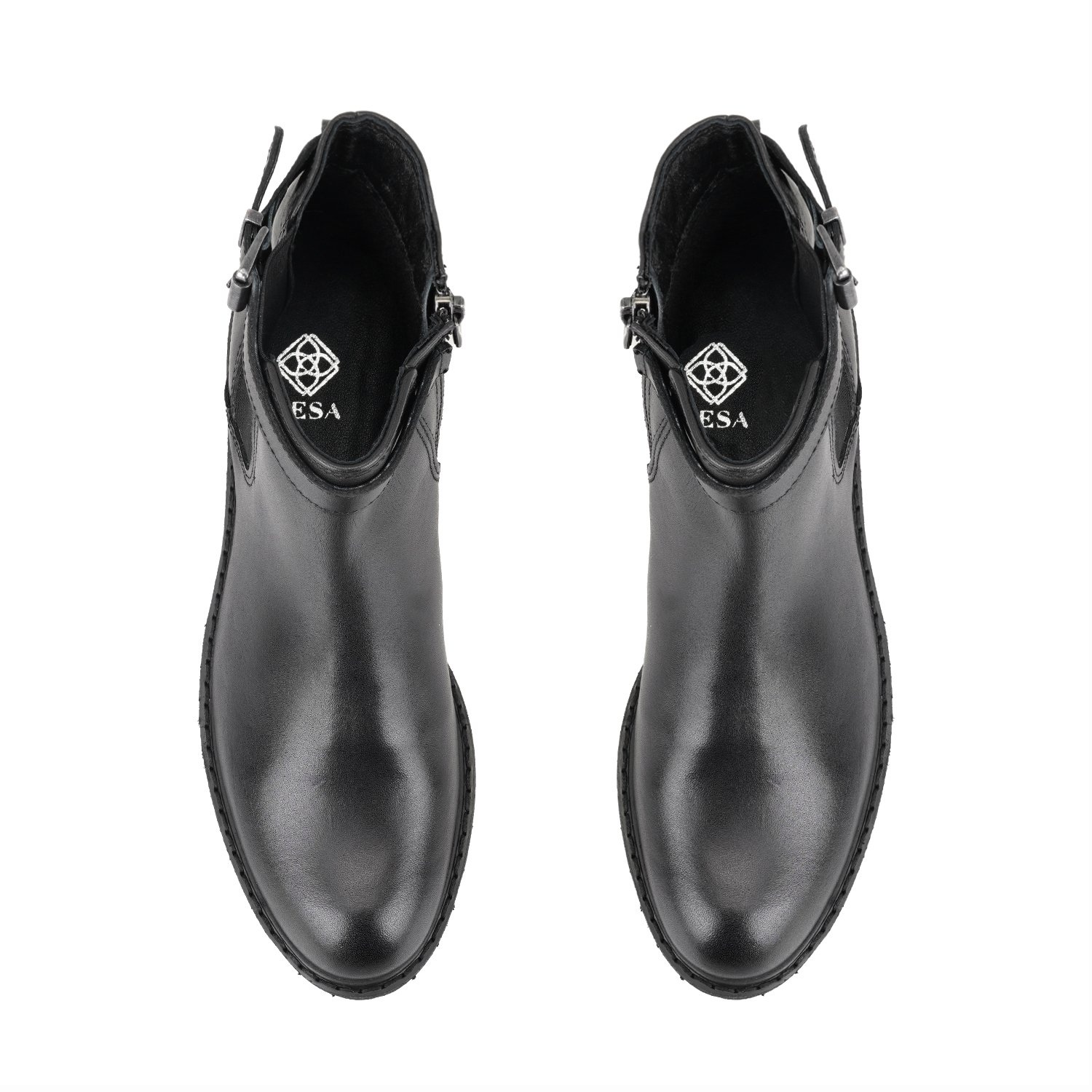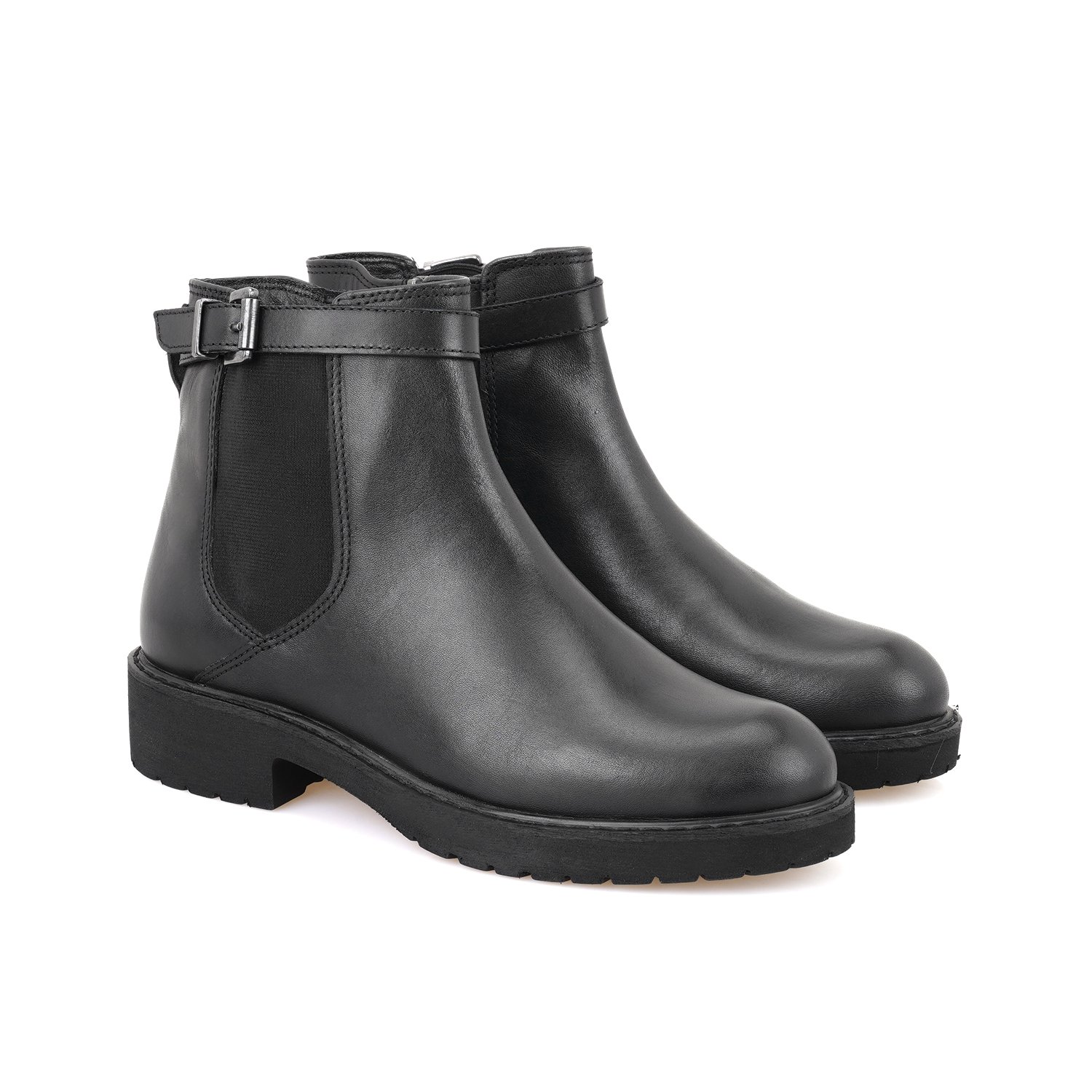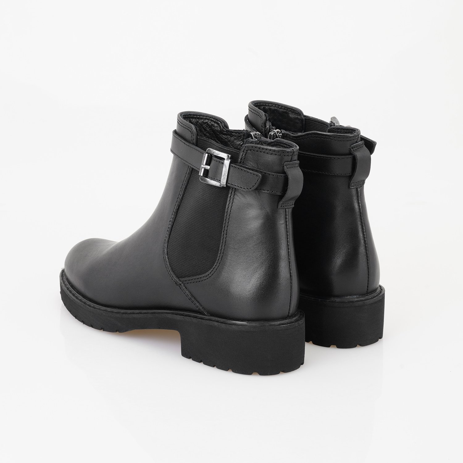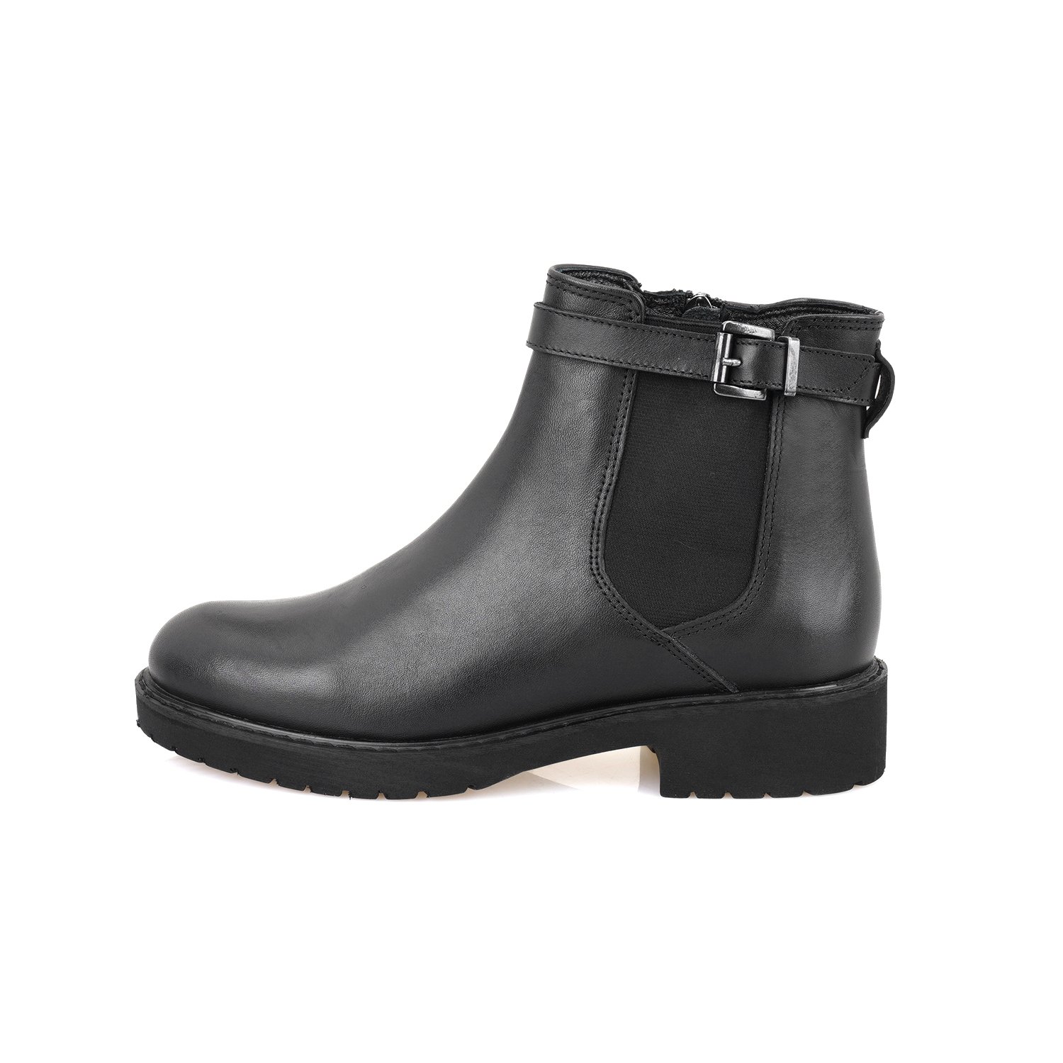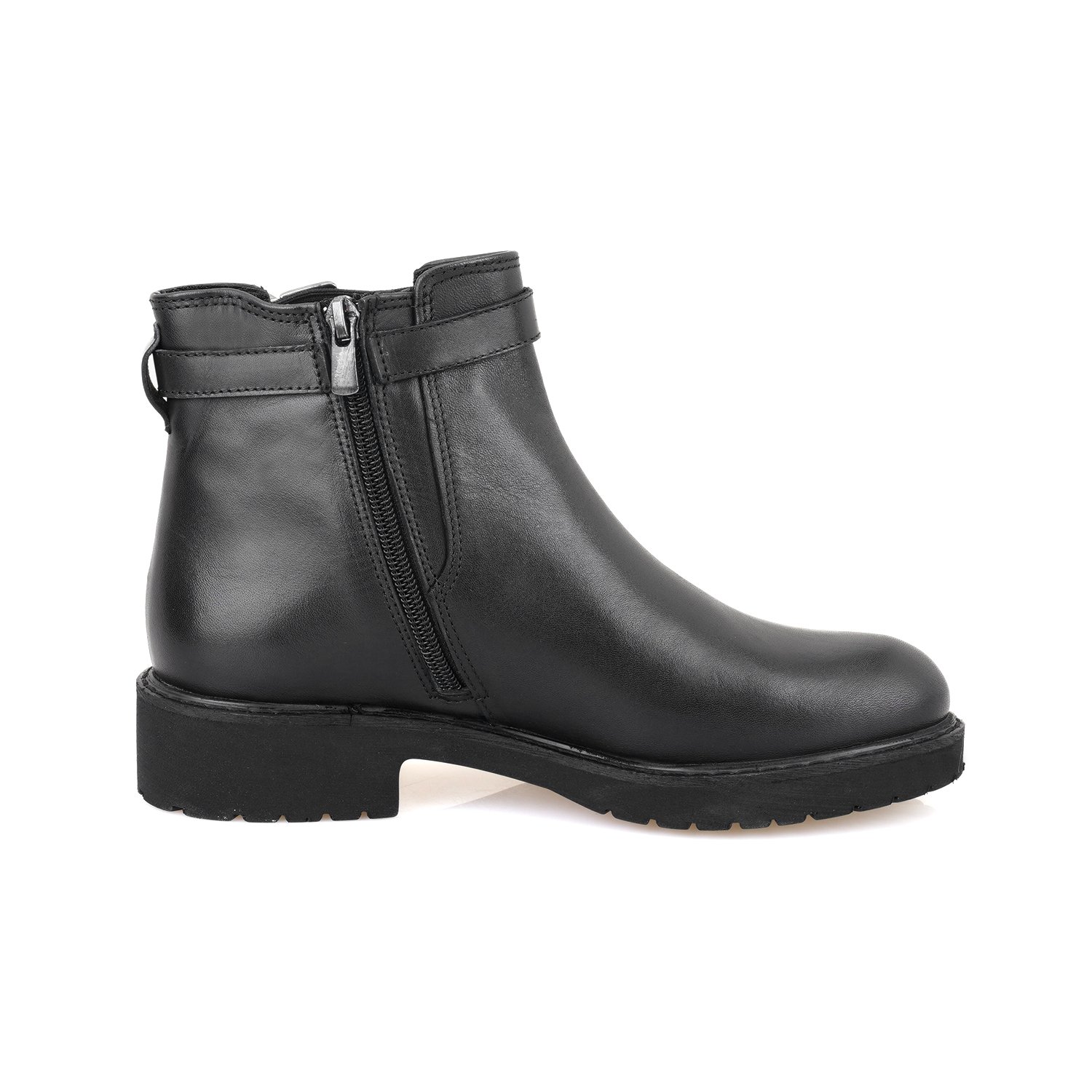 %100 deri, deri iç tabanlı, tekstil iç astarlı, ayarlanabilir metal toka detaylı, termo tabanlı, lastikli kadın bot.