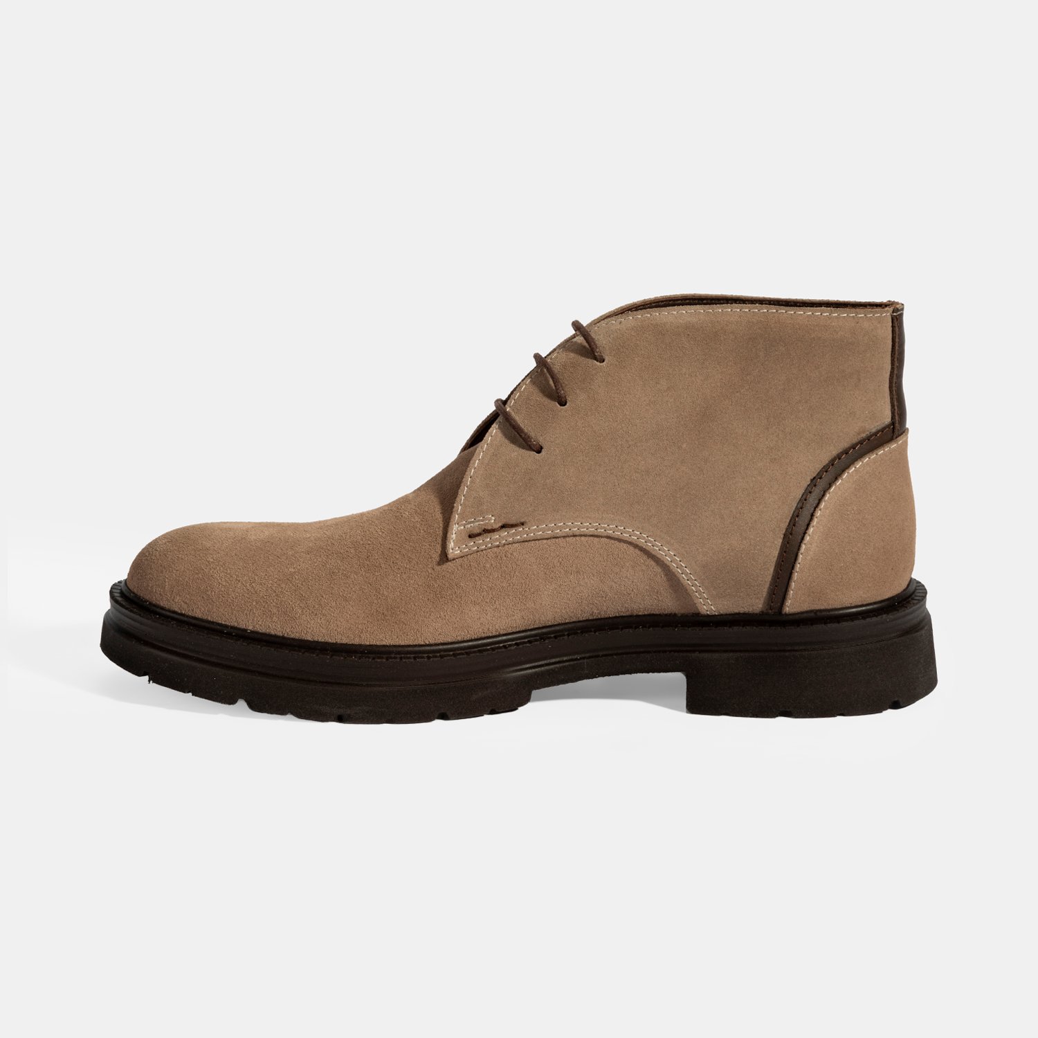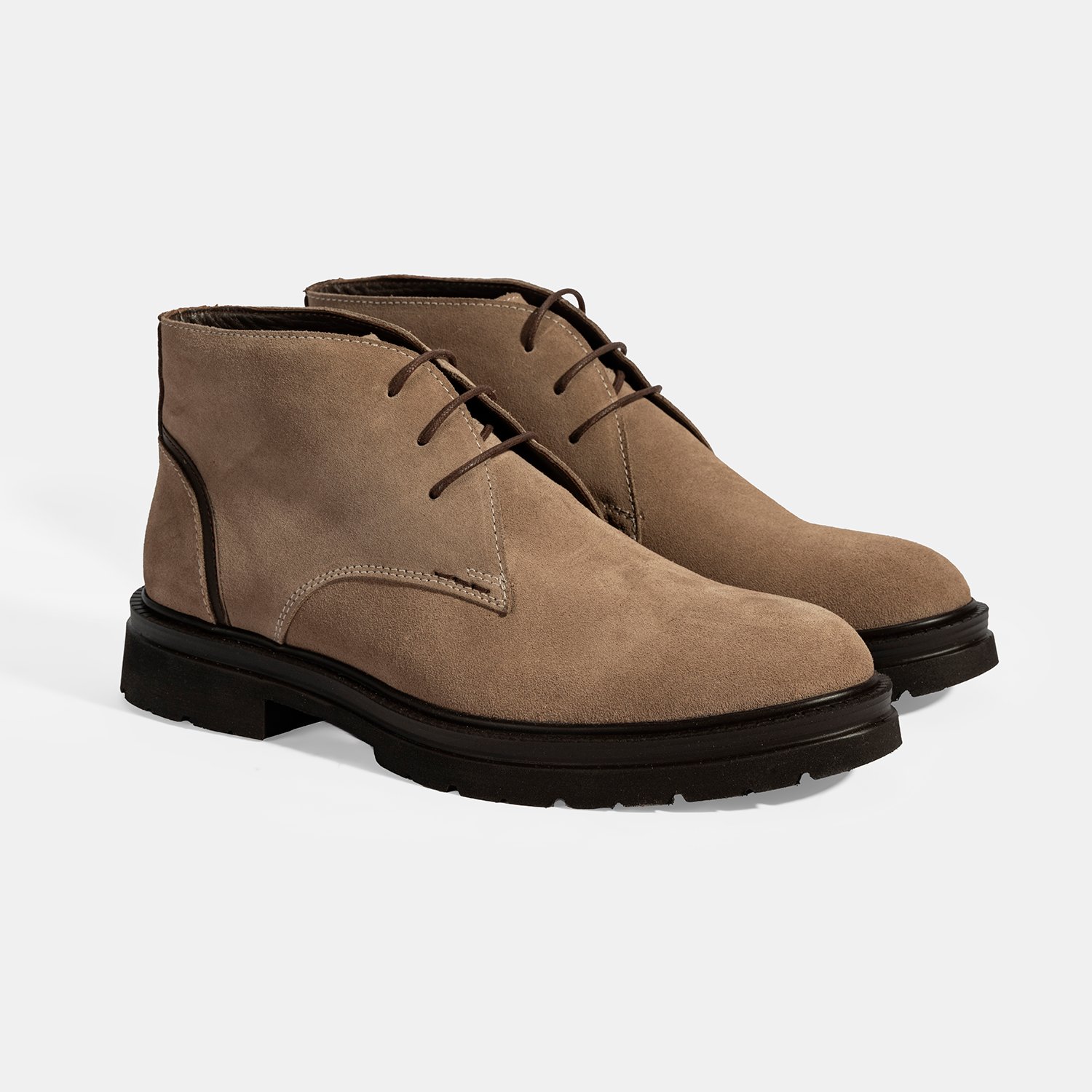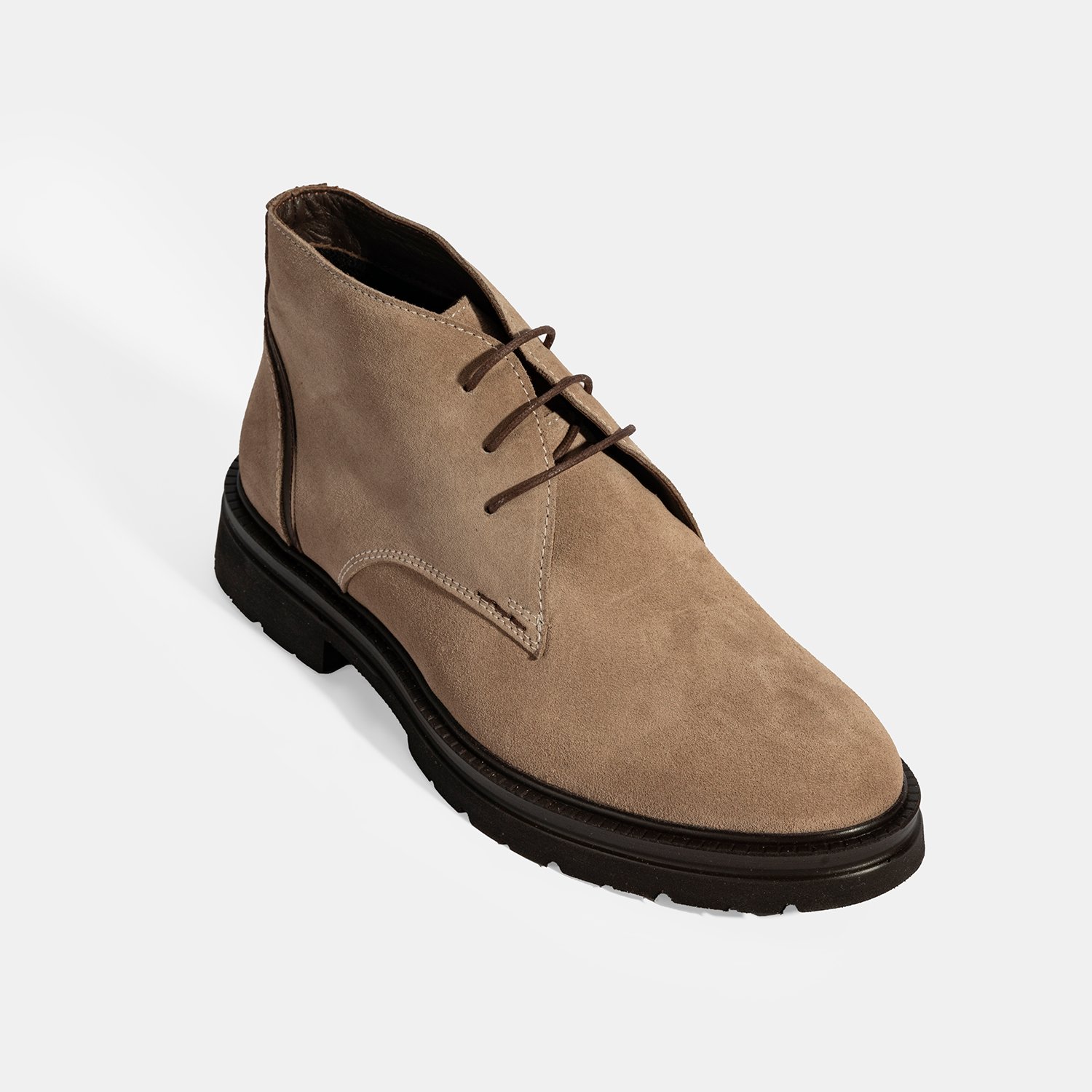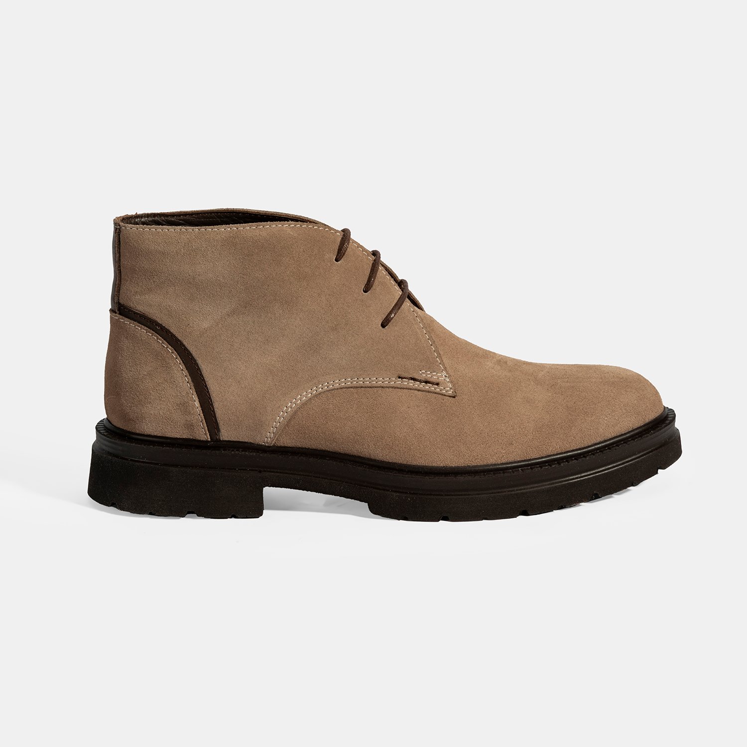 %100 süet deri, %100 deri mostra, tekstil astarlı, bağcıklı, EVA tabanlı erkek bot.