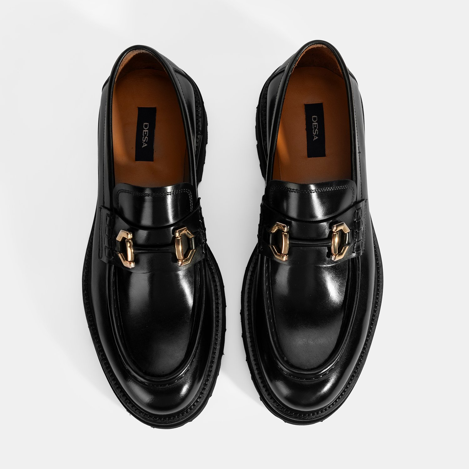 Erkek Siyah Metal Toka Detaylı Deri Loafer