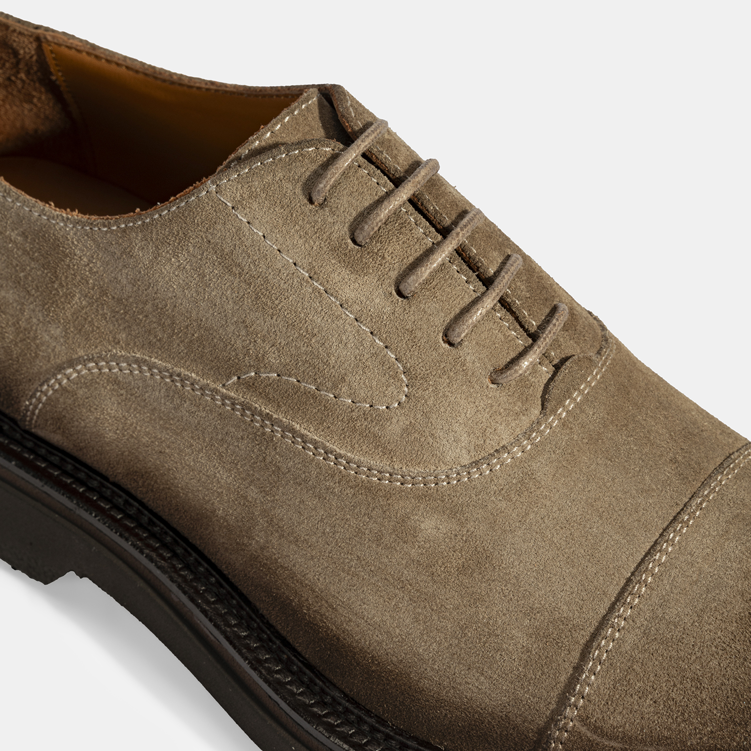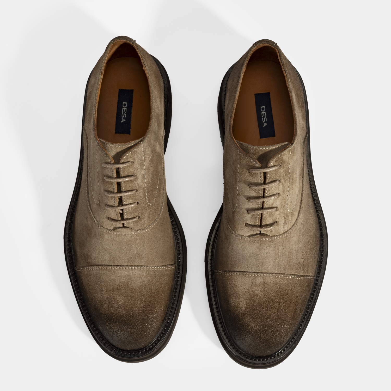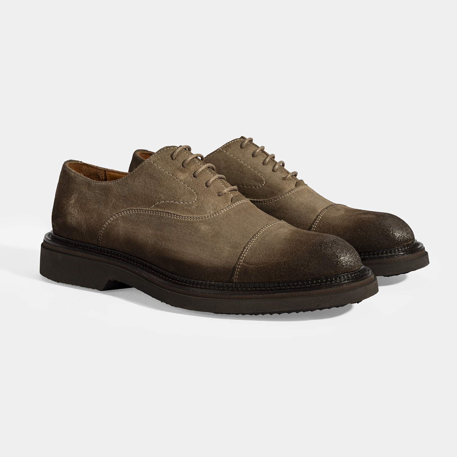 %100 süet deri, %100 deri astar ve mostralı, bağcıklı EVA tabanlı erkek ayakkabı.