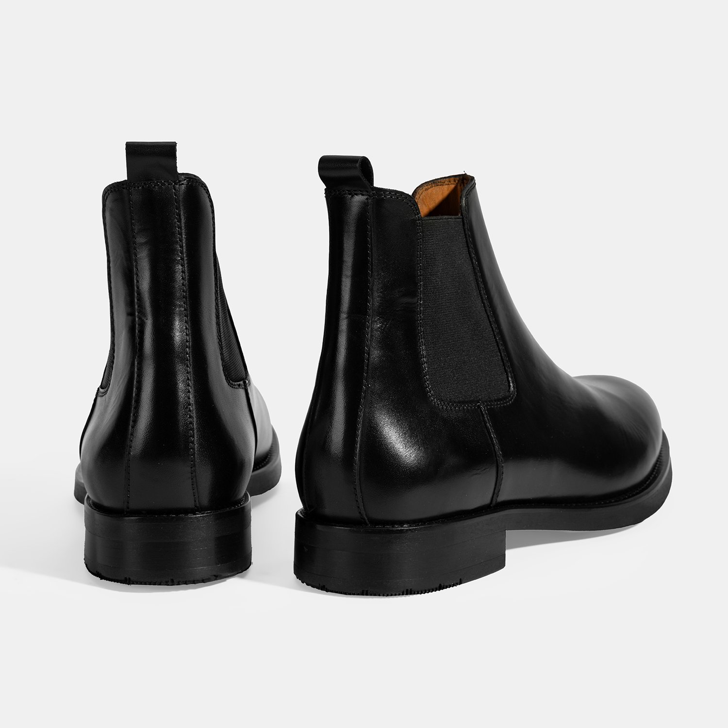 %100 deri dış yüzey, %100 deri astar ve mostrali; lastikli, kauçuk tabanlı erkek bot.