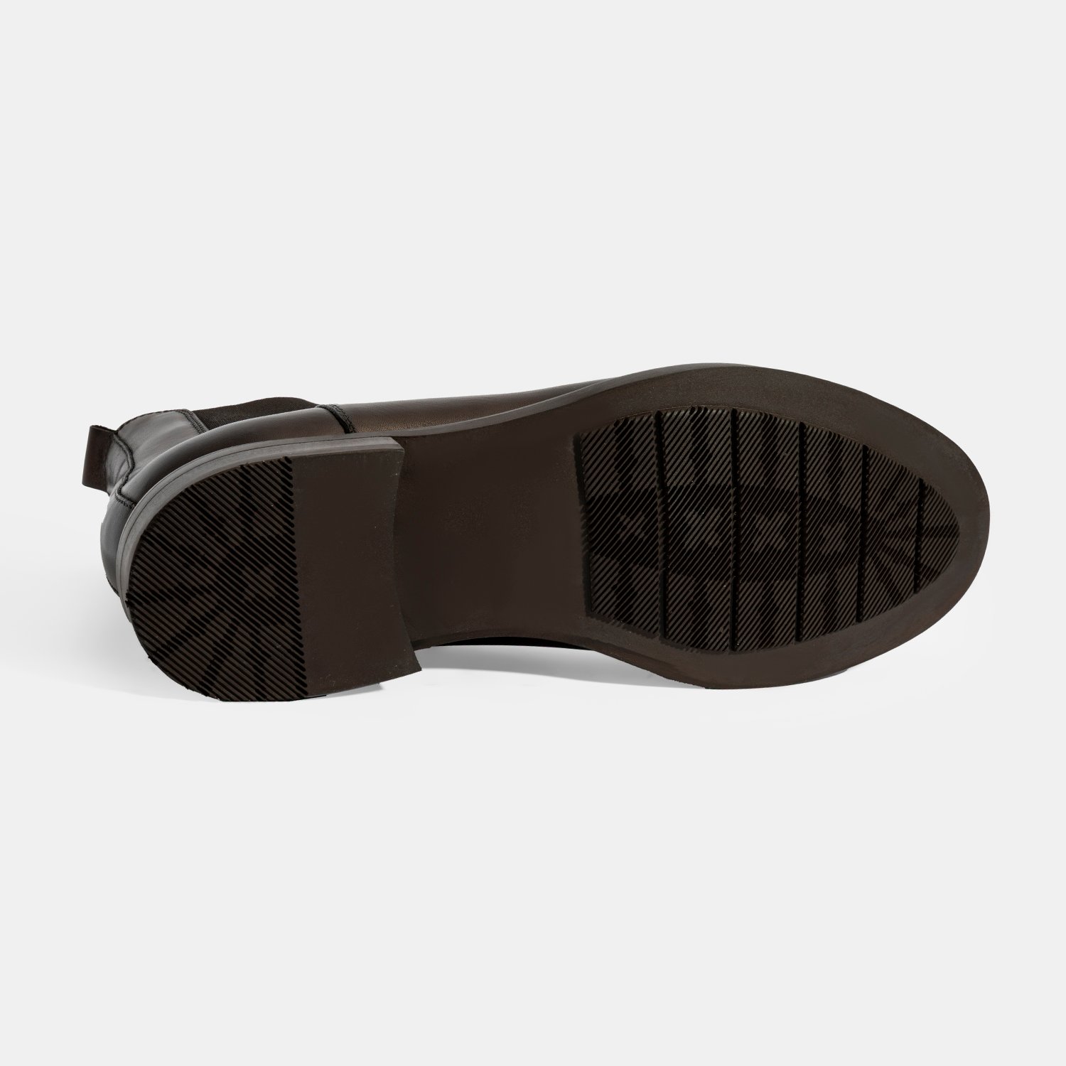 %100 deri dış yüzey, %100 deri astar ve mostrali; lastikli, kauçuk tabanlı erkek bot.