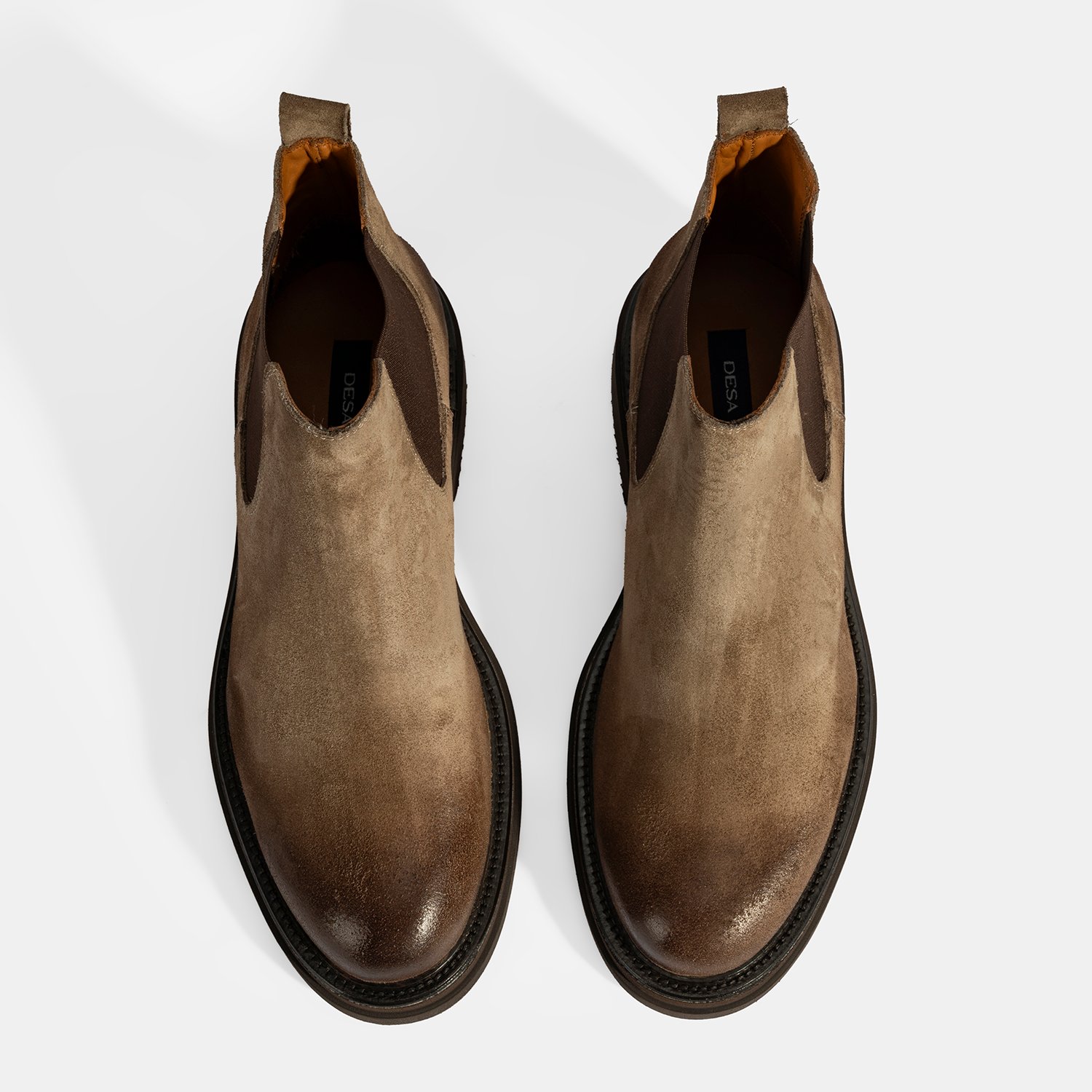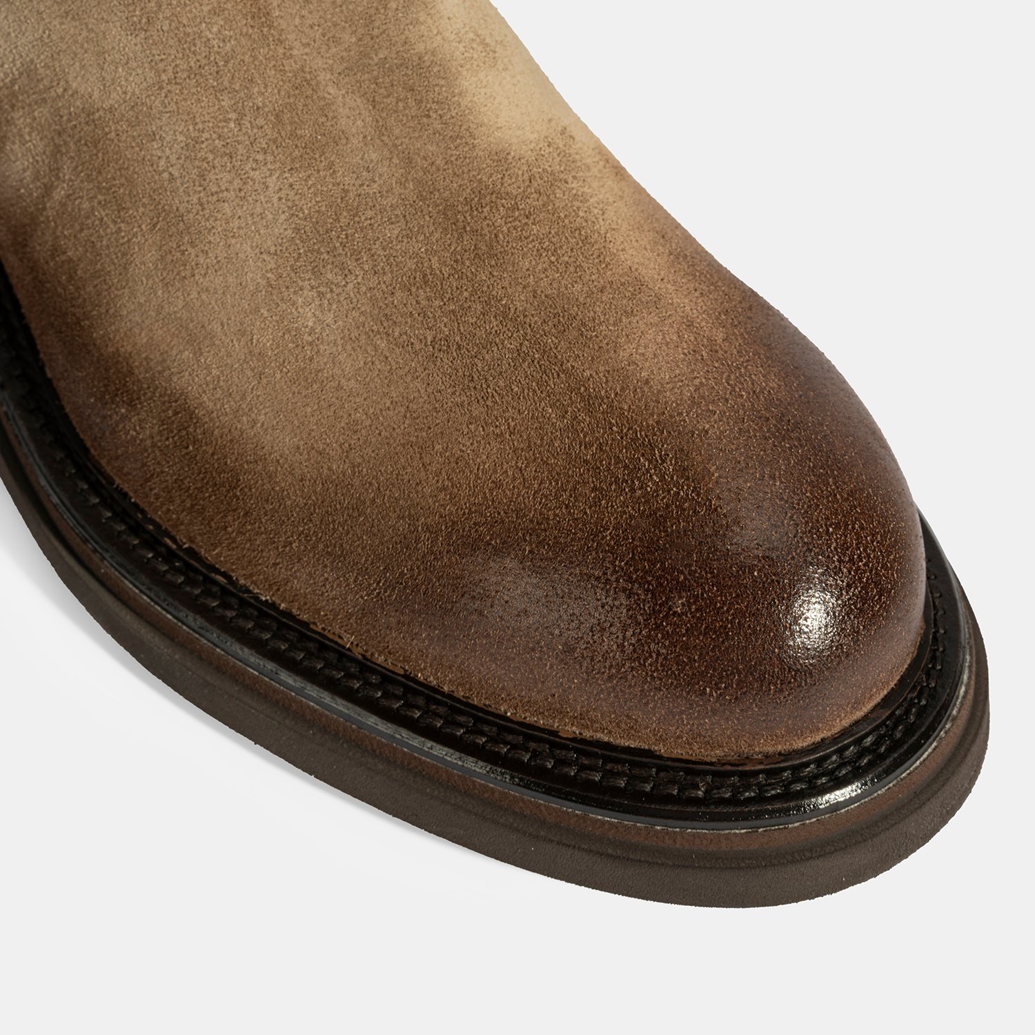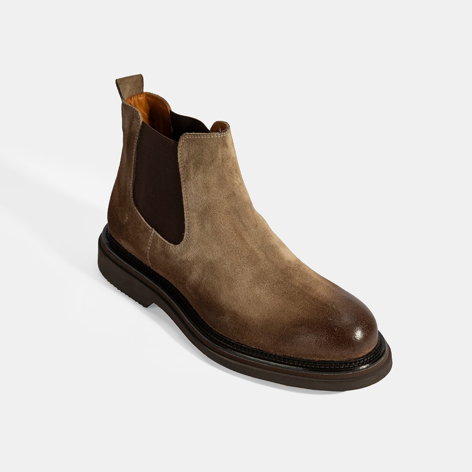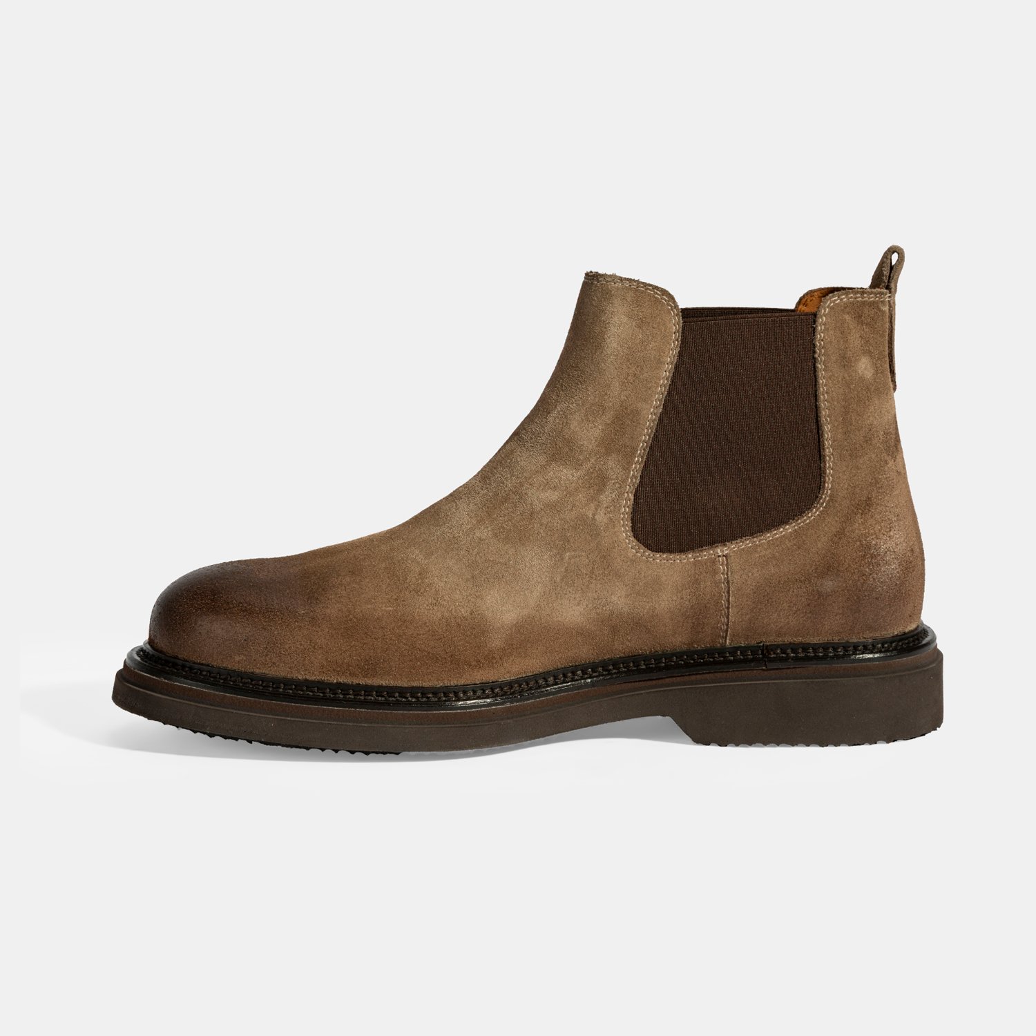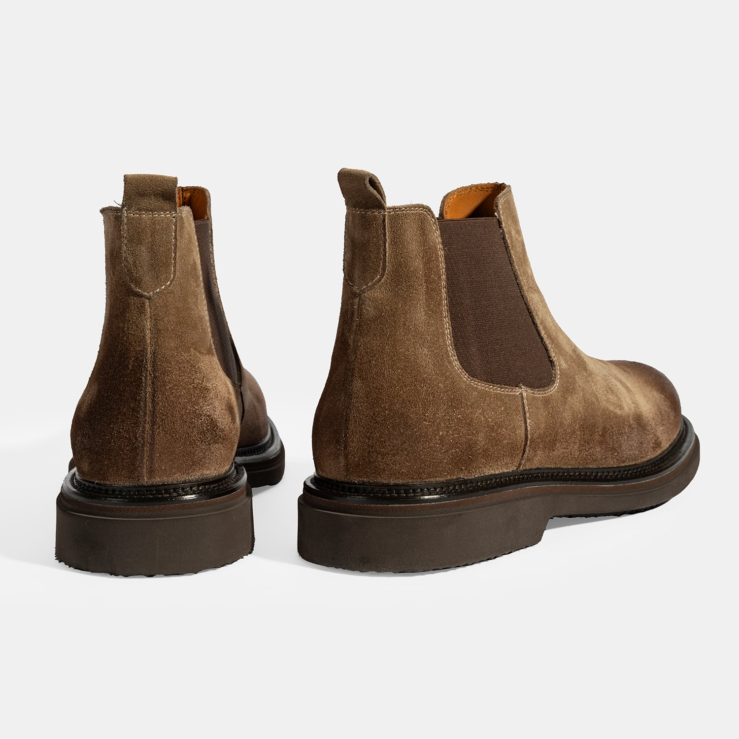 %100 süet deri dış yüzey, %100 deri astar ve mostra; lastikli, EVA tabanlı erkek bot.