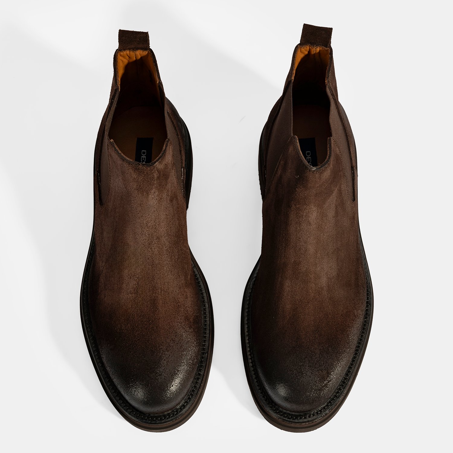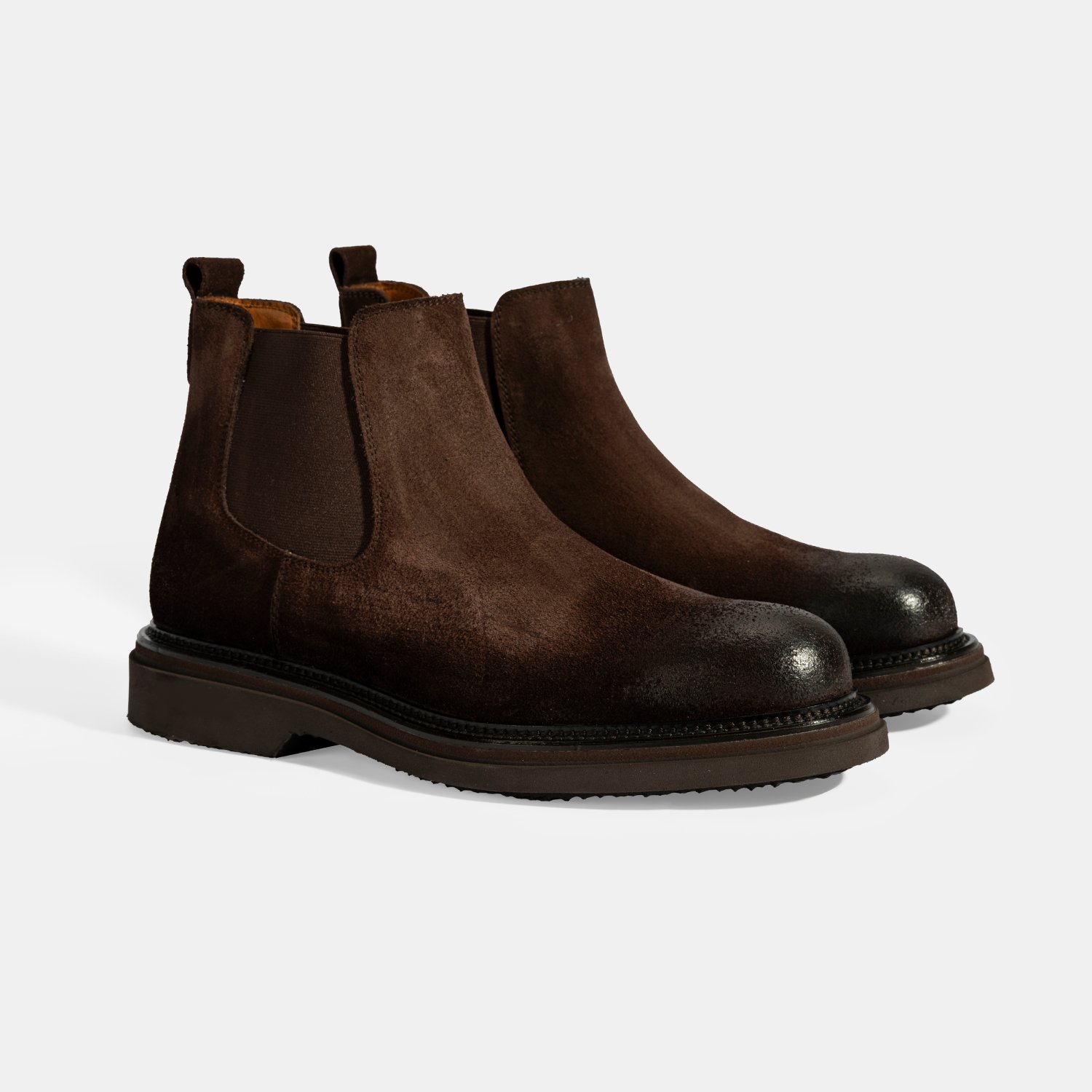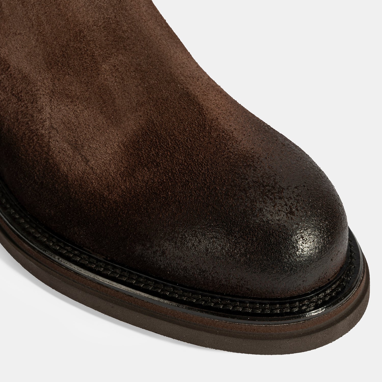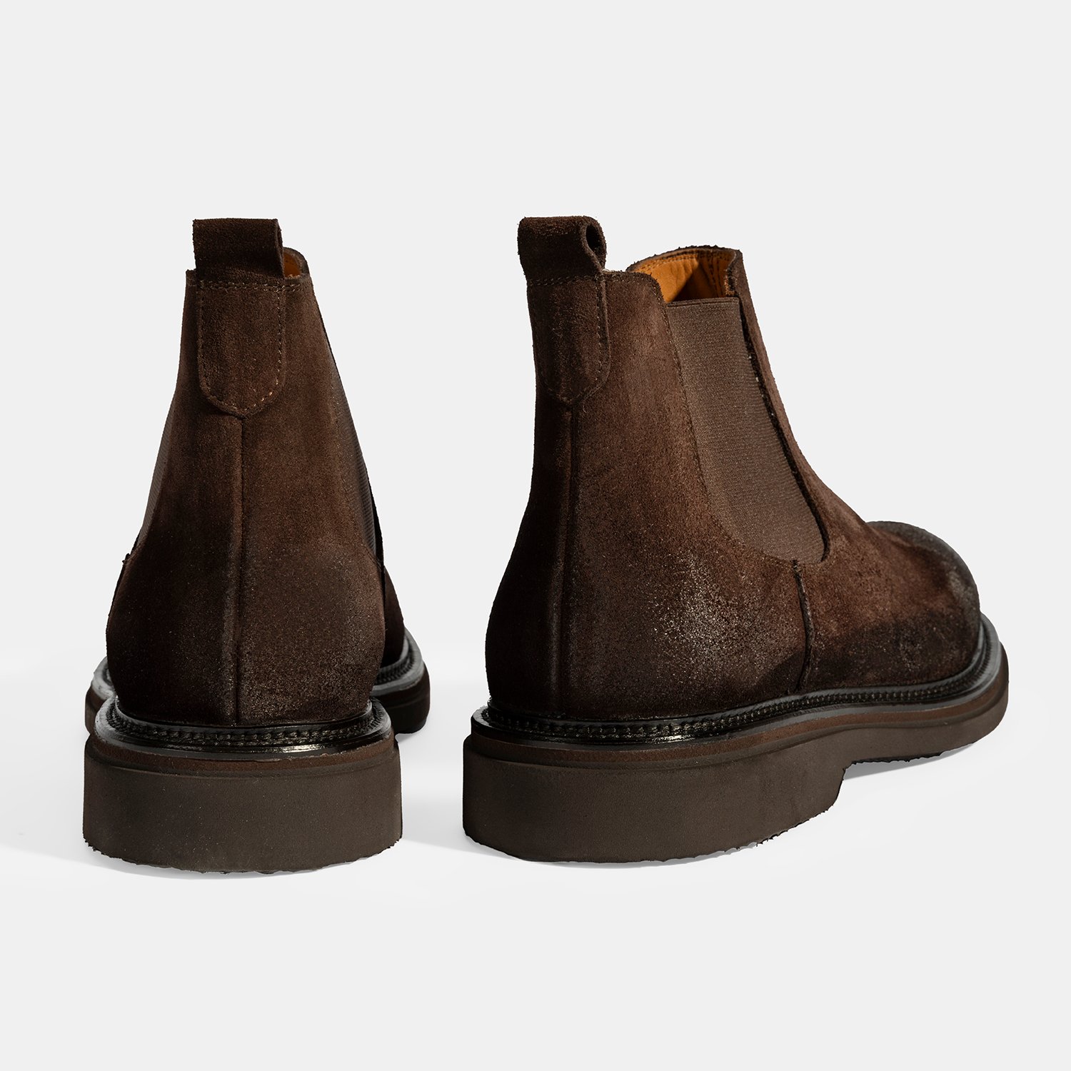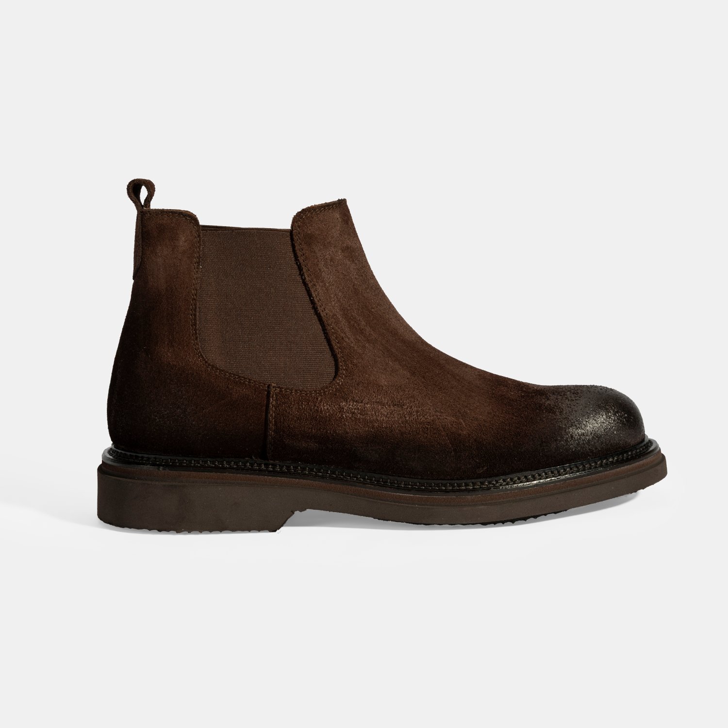%100 süet deri dış yüzey, %100 deri astar ve mostra; lastikli, EVA tabanlı erkek bot.