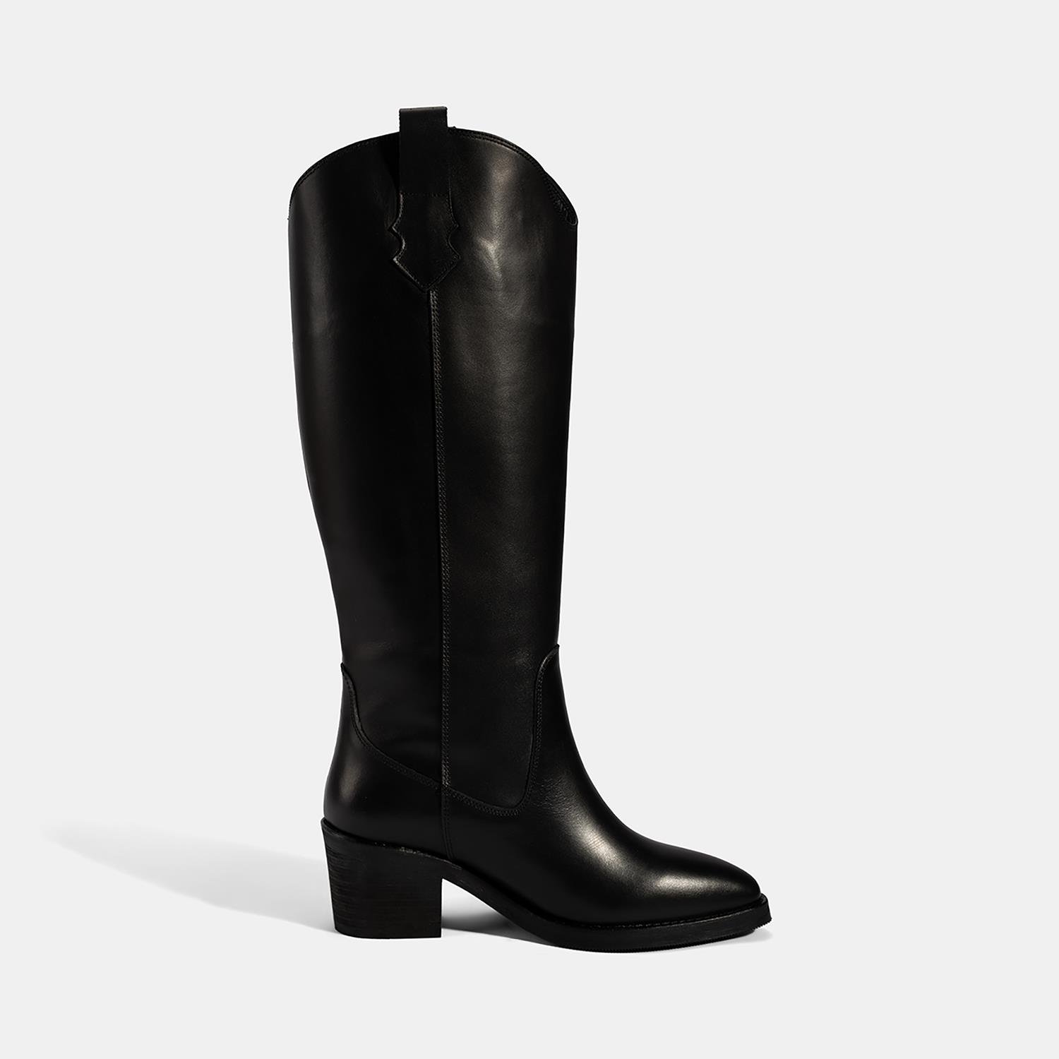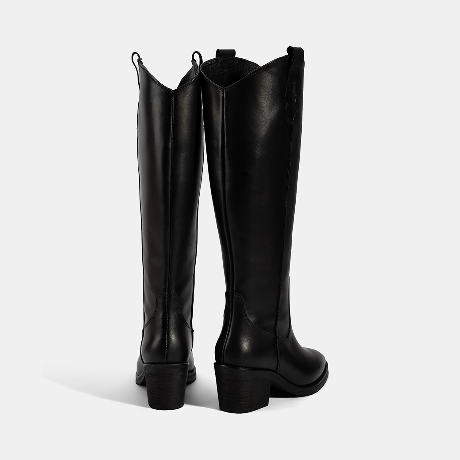 Kadın Siyah Kalın Topuklu Deri Çizme