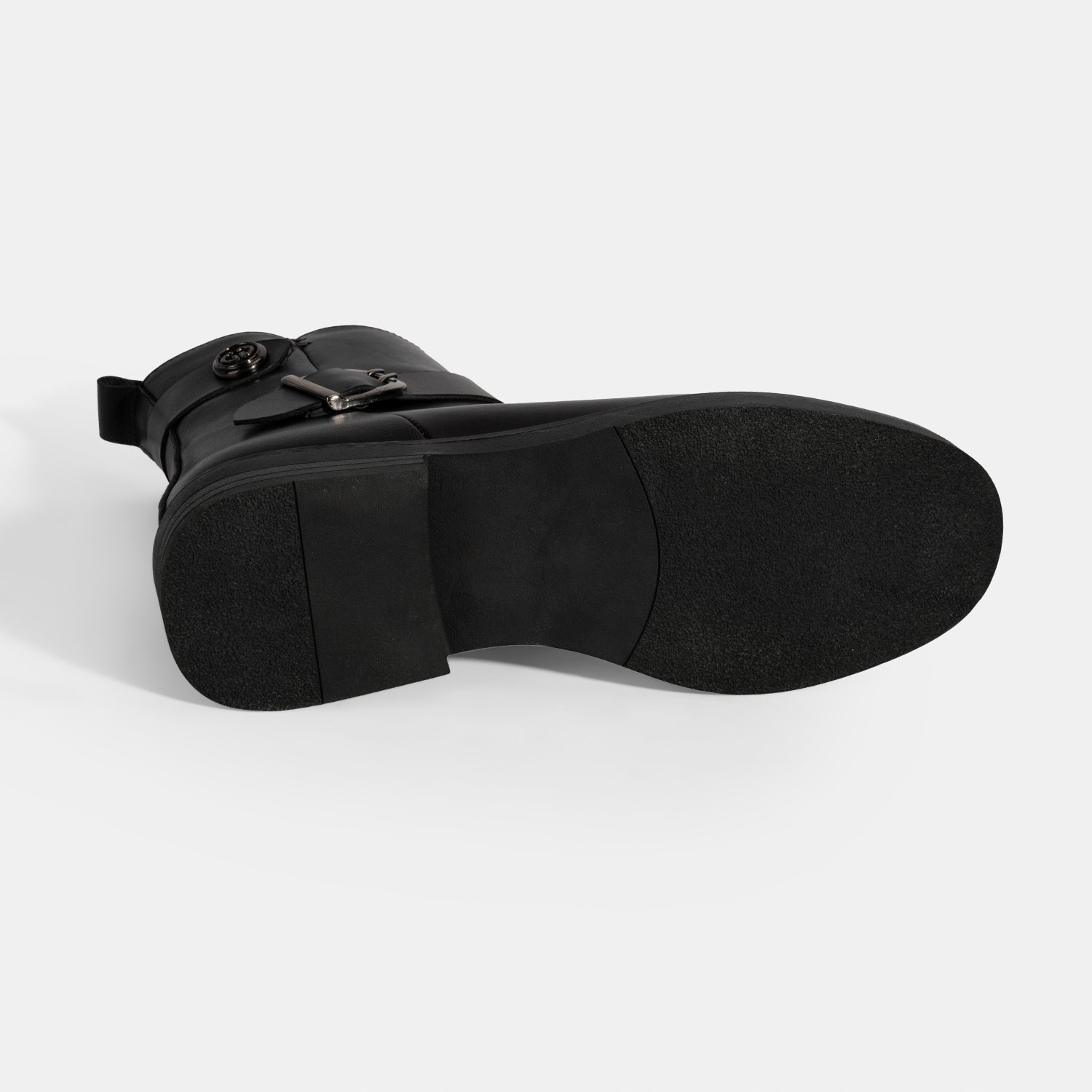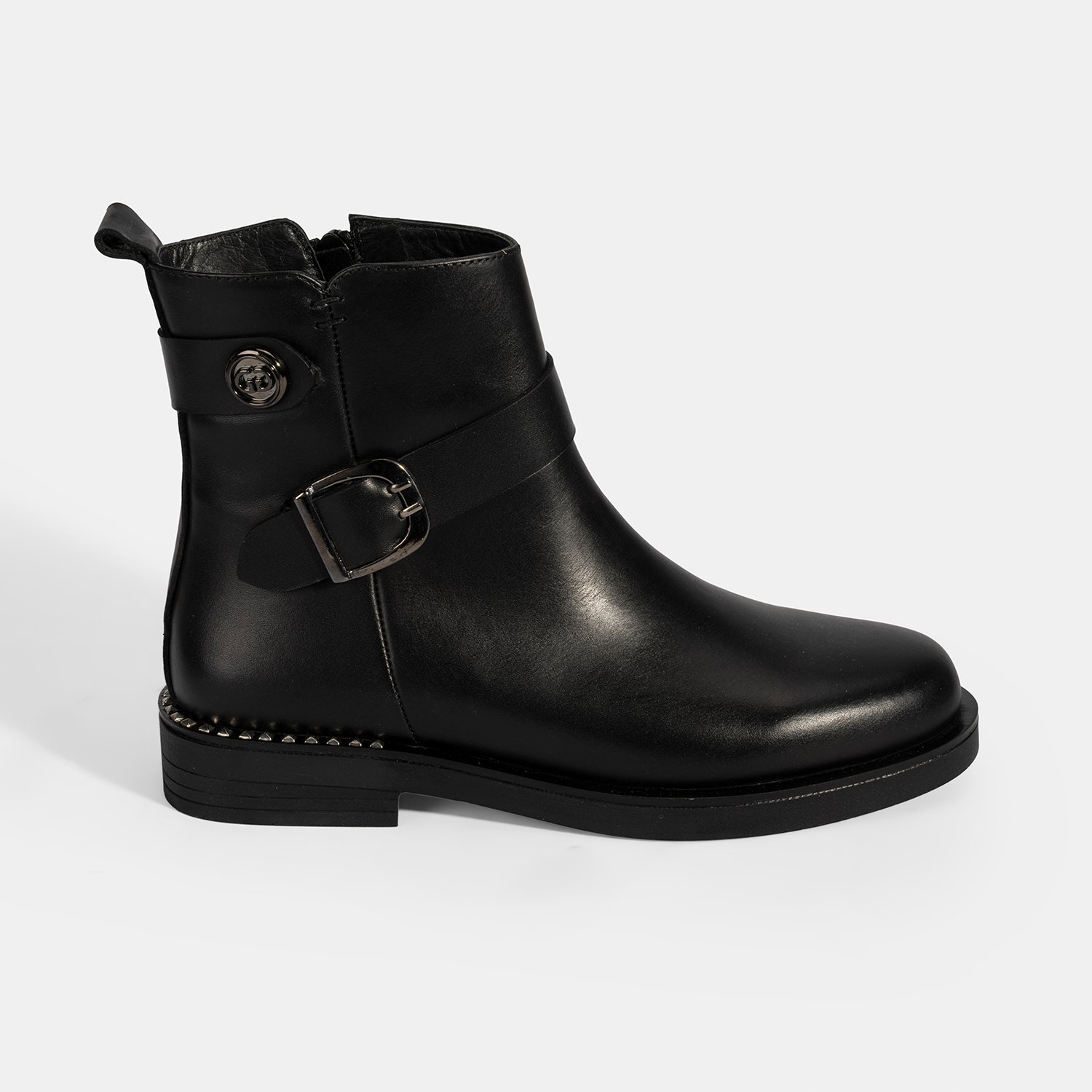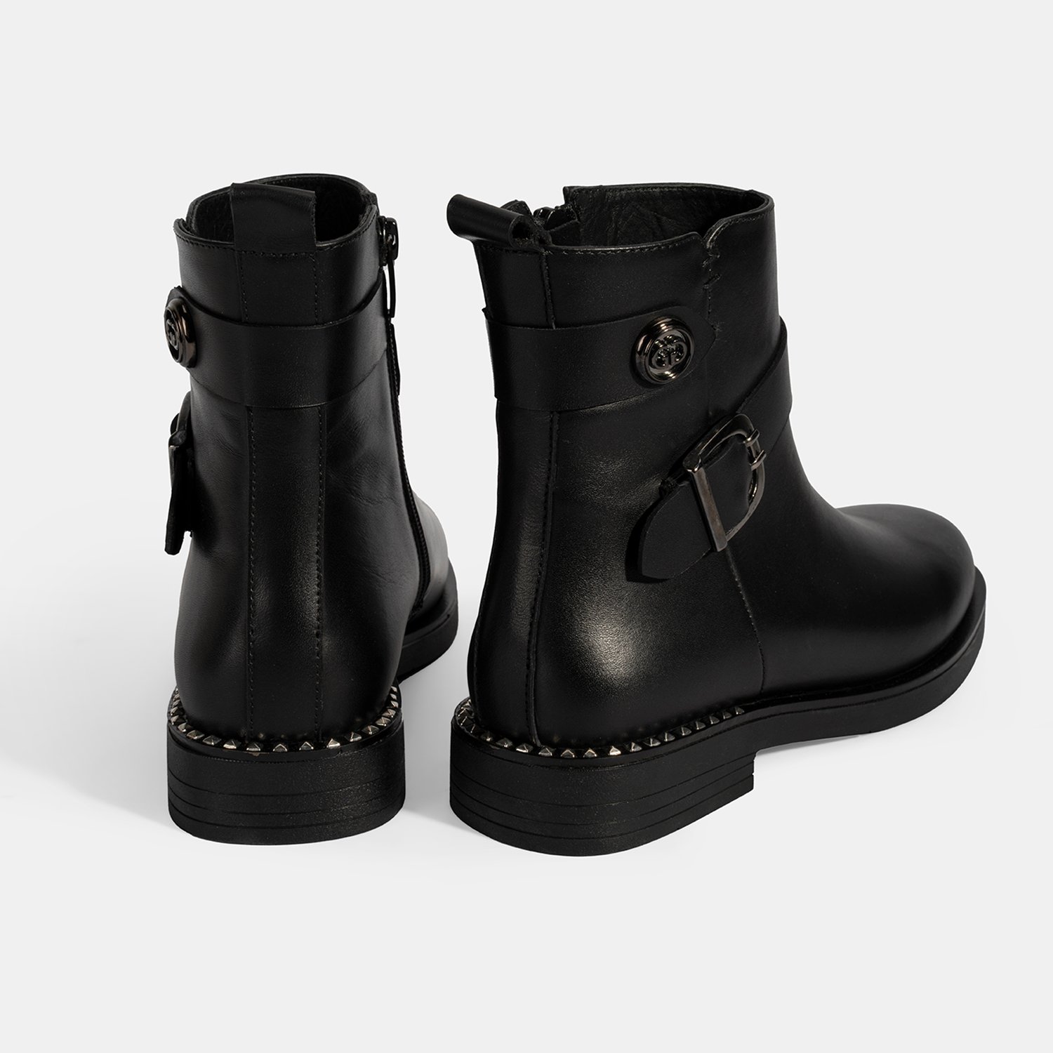 Kadın Siyah Metal Toka Detaylı Deri Bot