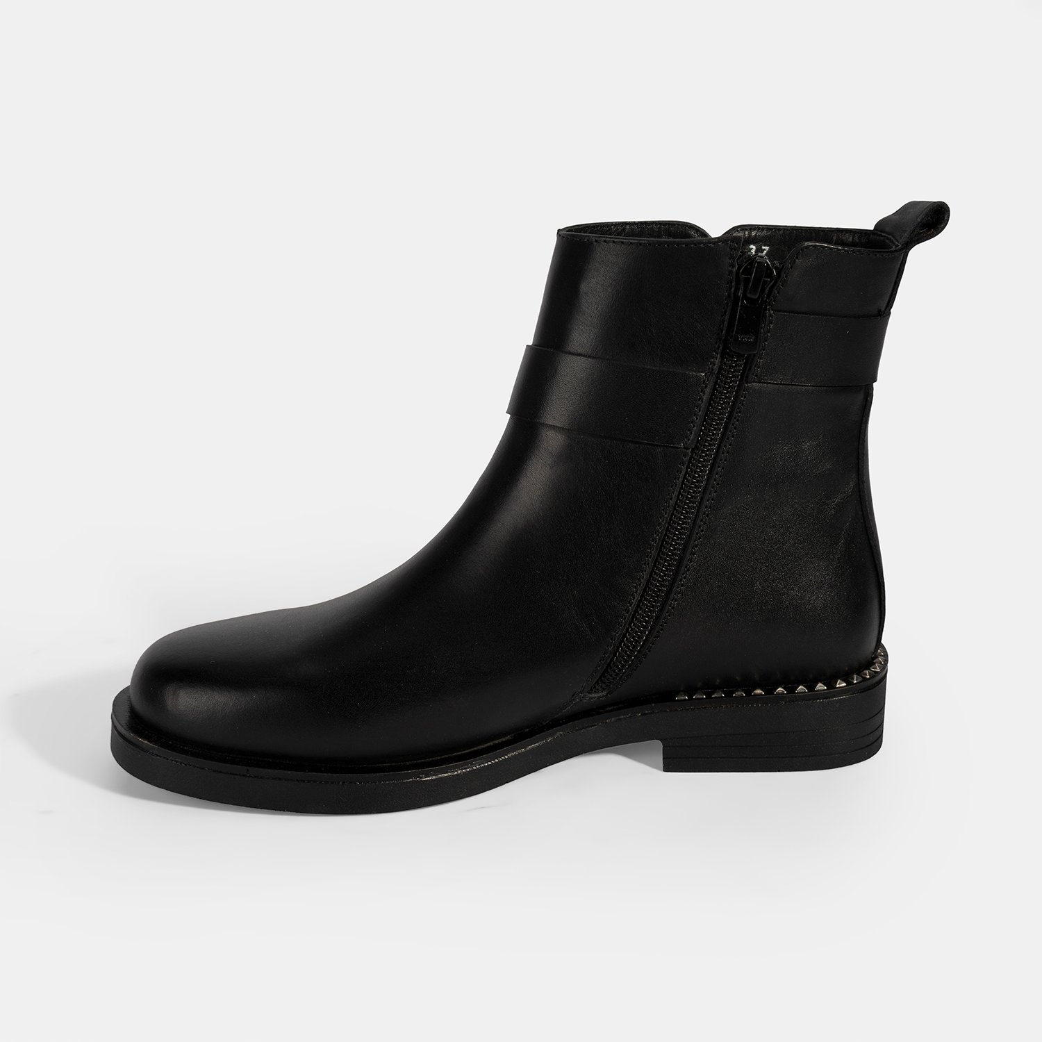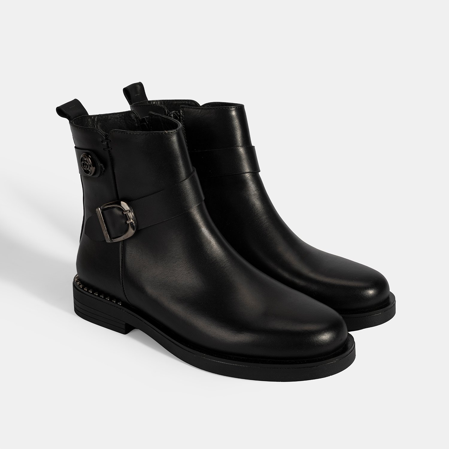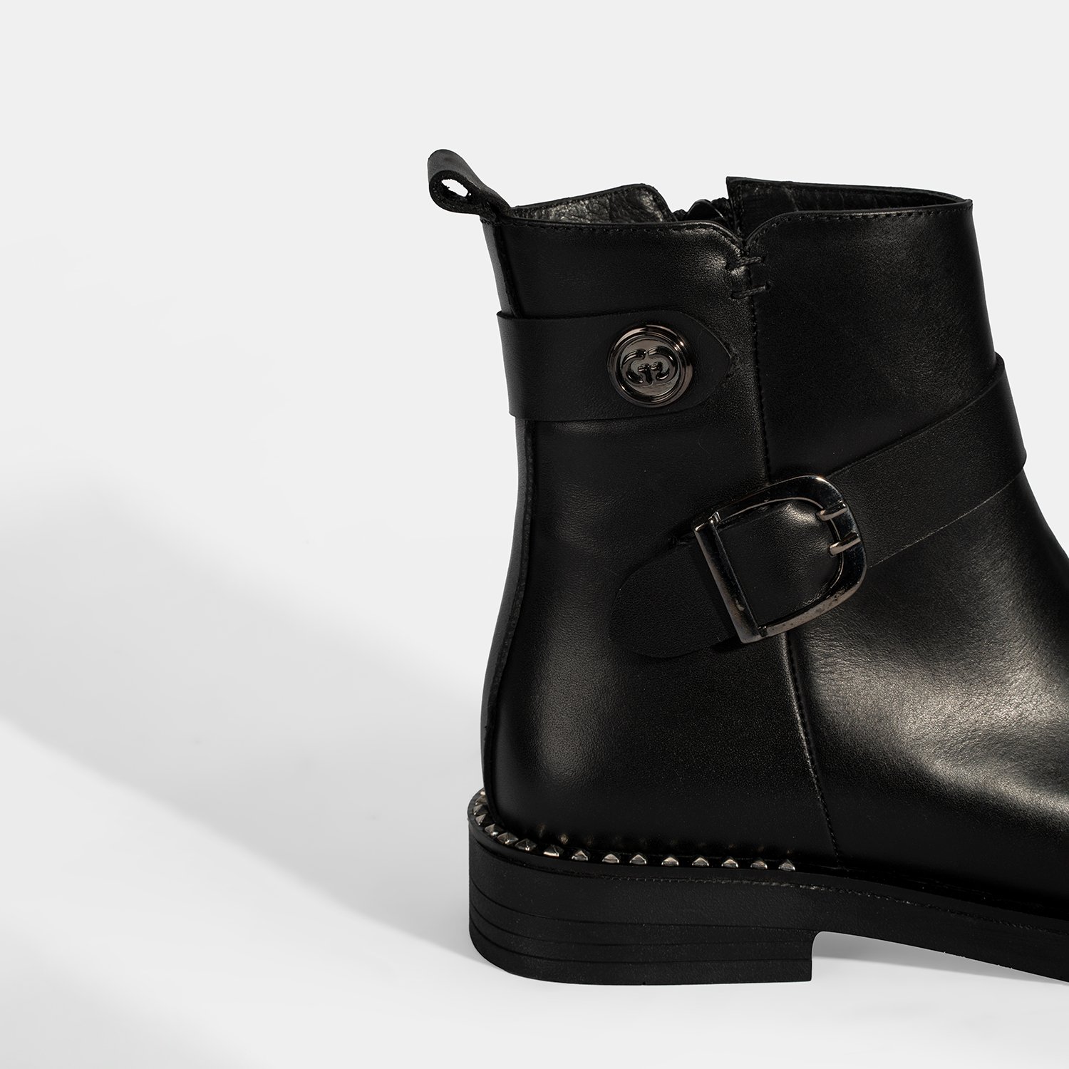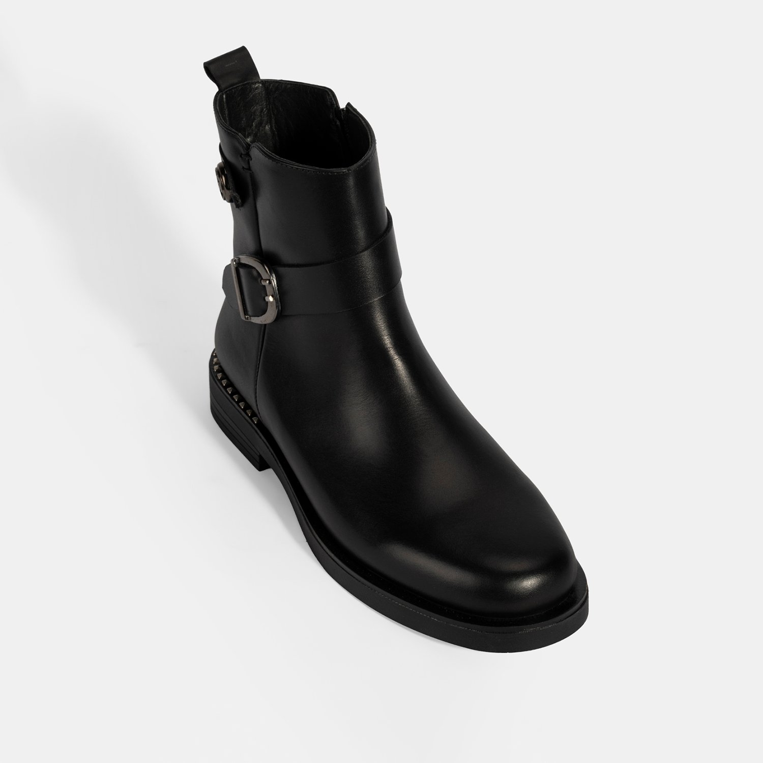 Kadın Siyah Metal Toka Detaylı Deri Bot