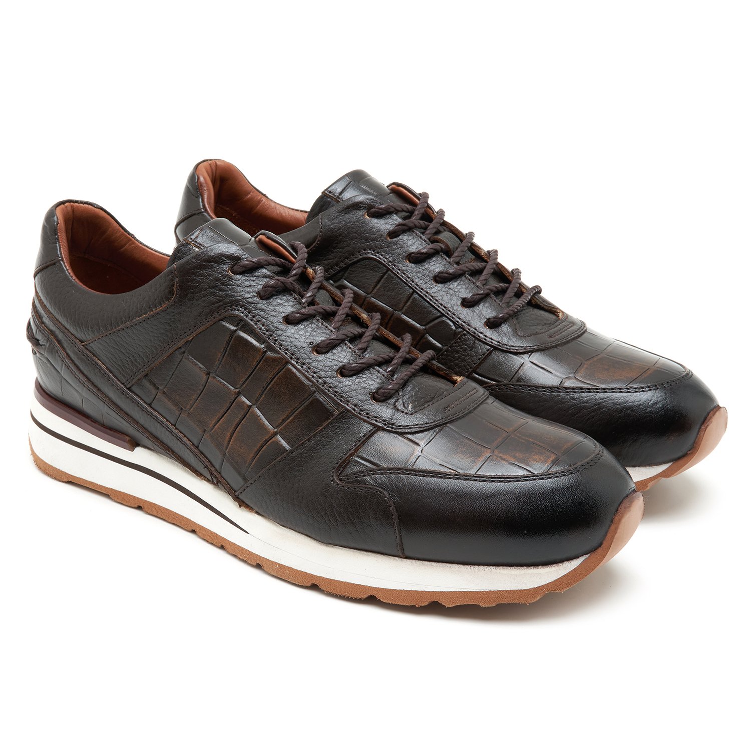 Spıro deri&kroko baskılı deri,deri astarlı,deri iç tabanlı,bağcıklı,ultra hafif eva tabanlı erkek spor ayakkabı.