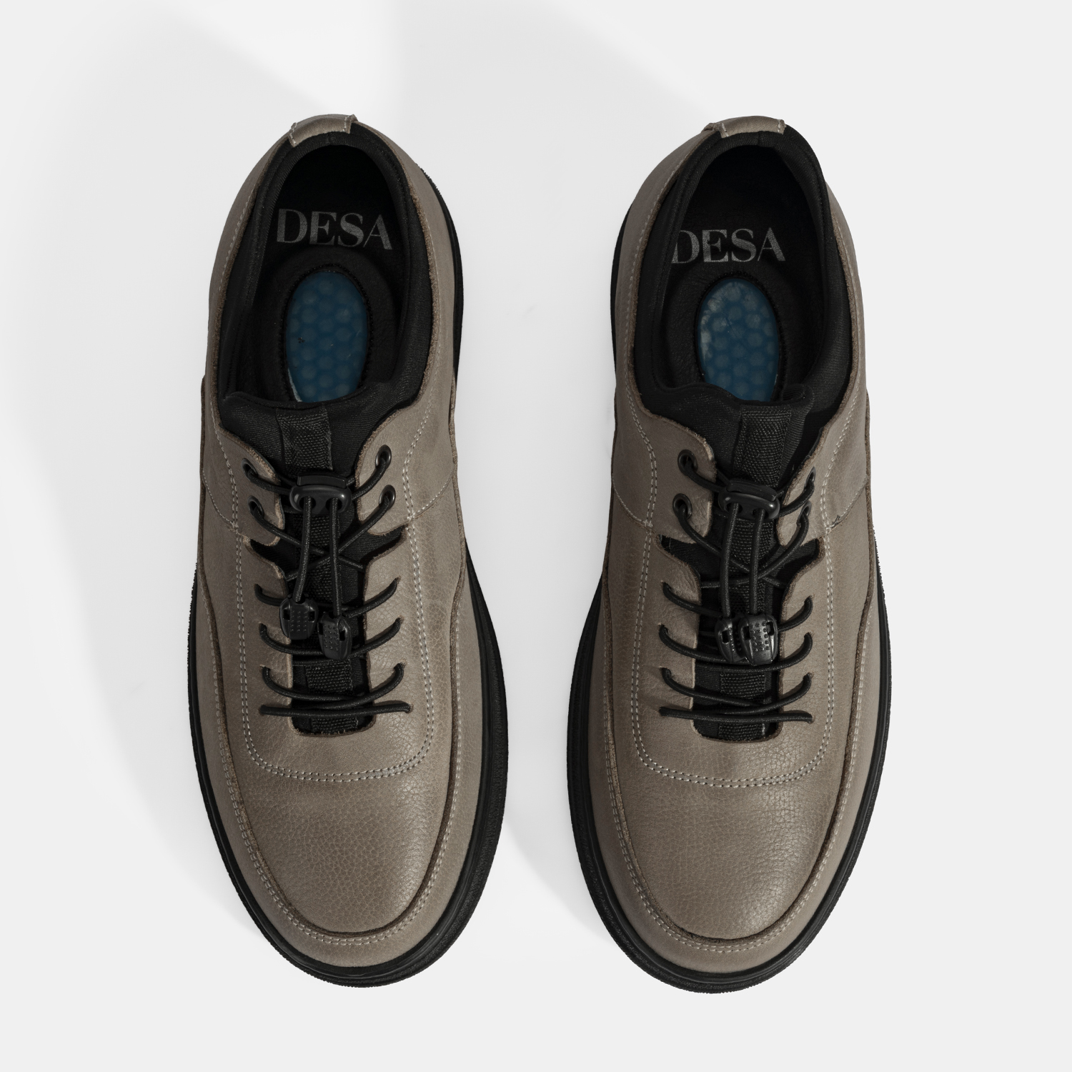 Erkek Gri Bağcıklı Nubuk Deri Günlük Ayakkabı
