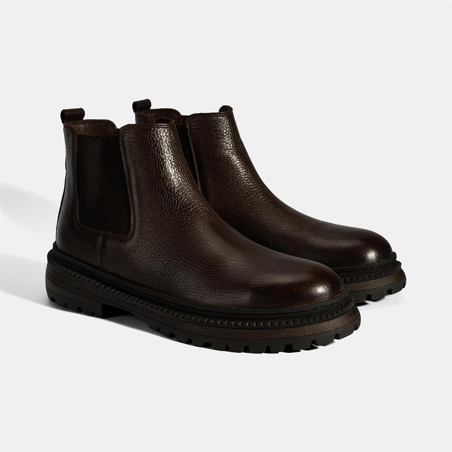 %100 floter deriden üretilmiş, %100 deri mostrali, tekstil astarlı, lastik detaylı, poli tabanlı erkek bot.