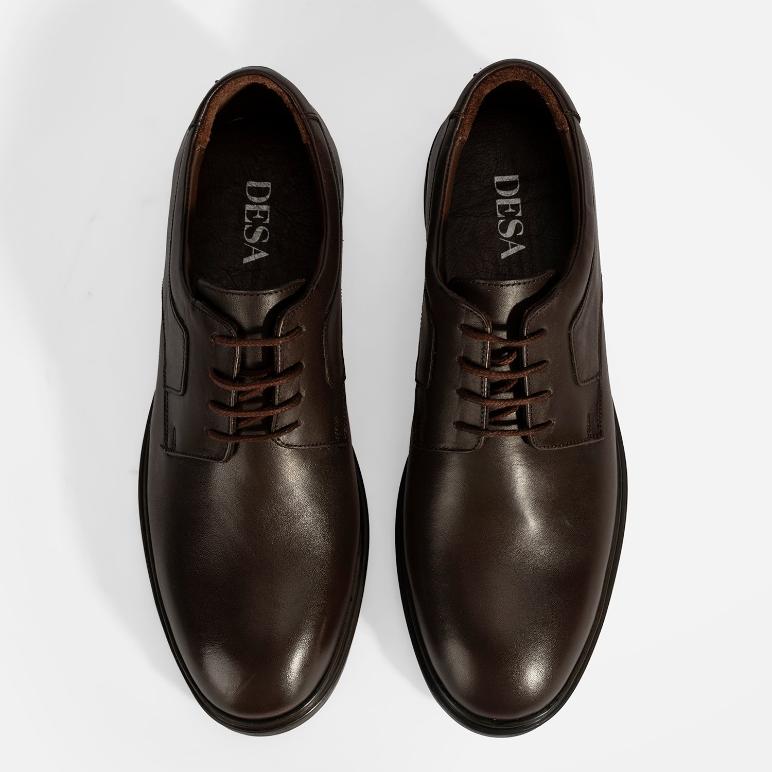 %100 deri, %100 deri astar ve mostra, bağcıklı, kauçuk tabanlı erkek ayakkabı.