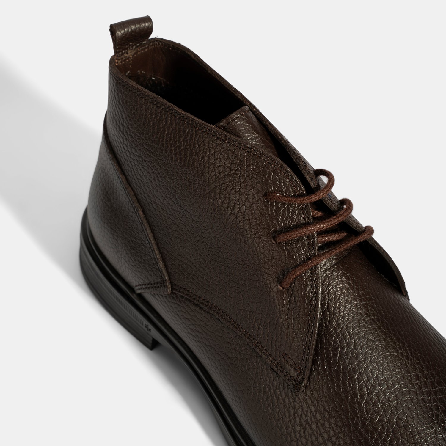 %100 deri, %100 deri mostralı, tekstil astarlı, bağcıklı, kauçuk tabanlı erkek bot.