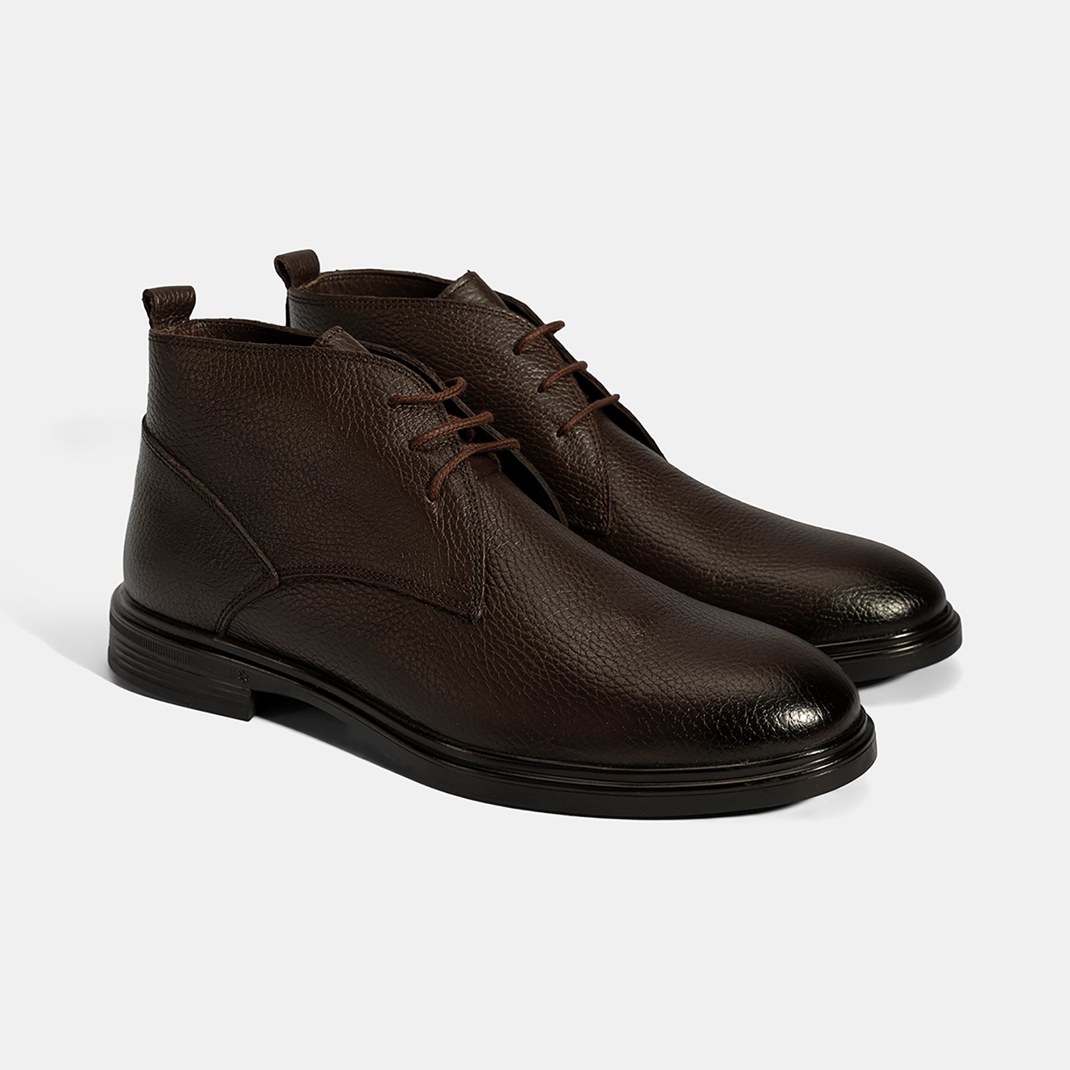 Erkek Kahve Bağcıklı Deri Bot