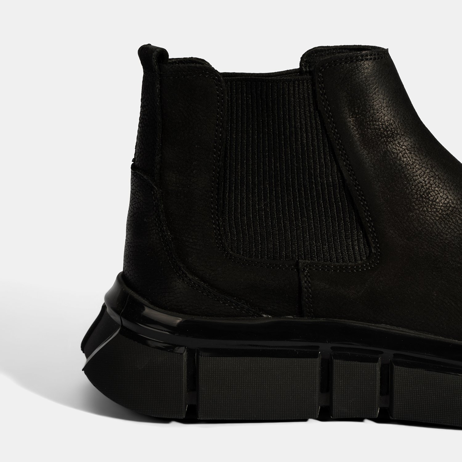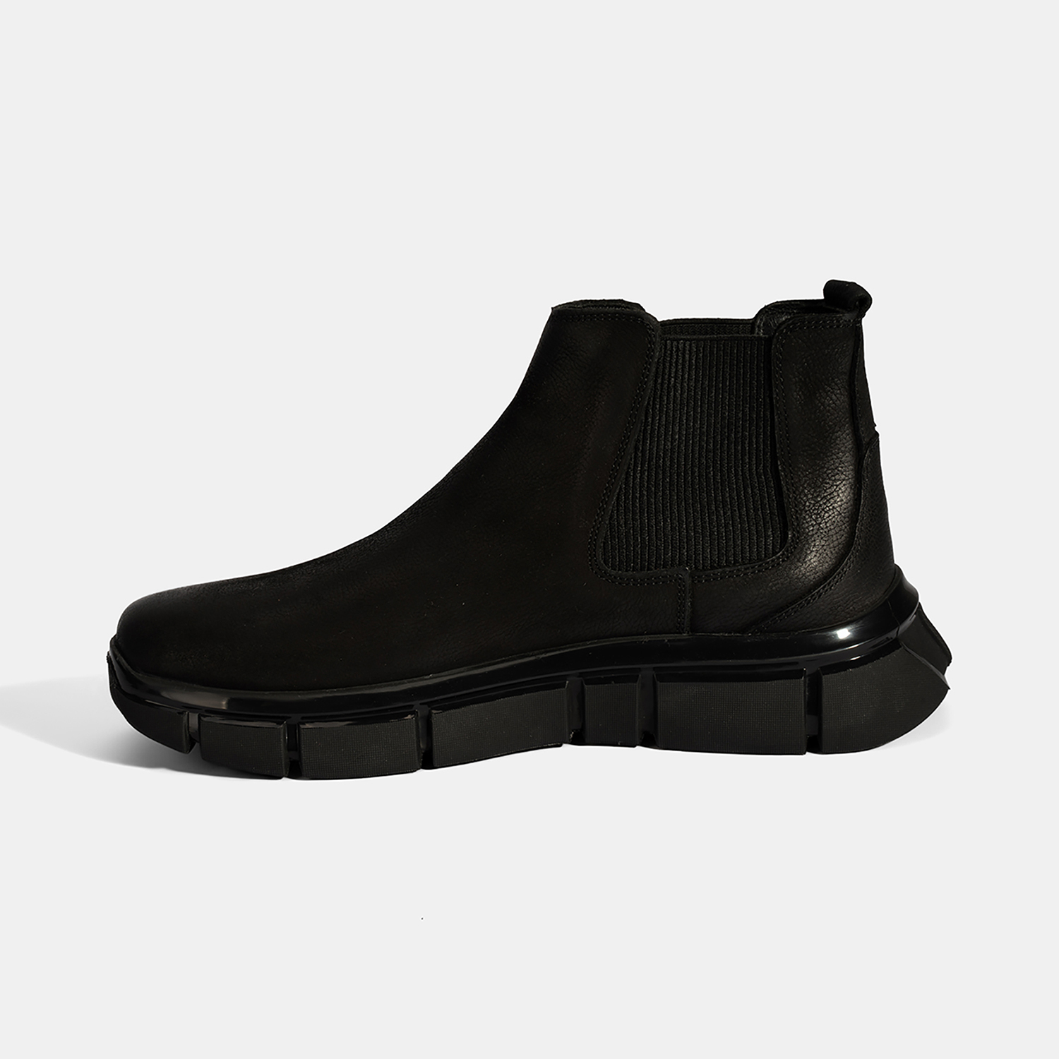 Erkek Siyah Lastik Detaylı Nubuk Deri Bot