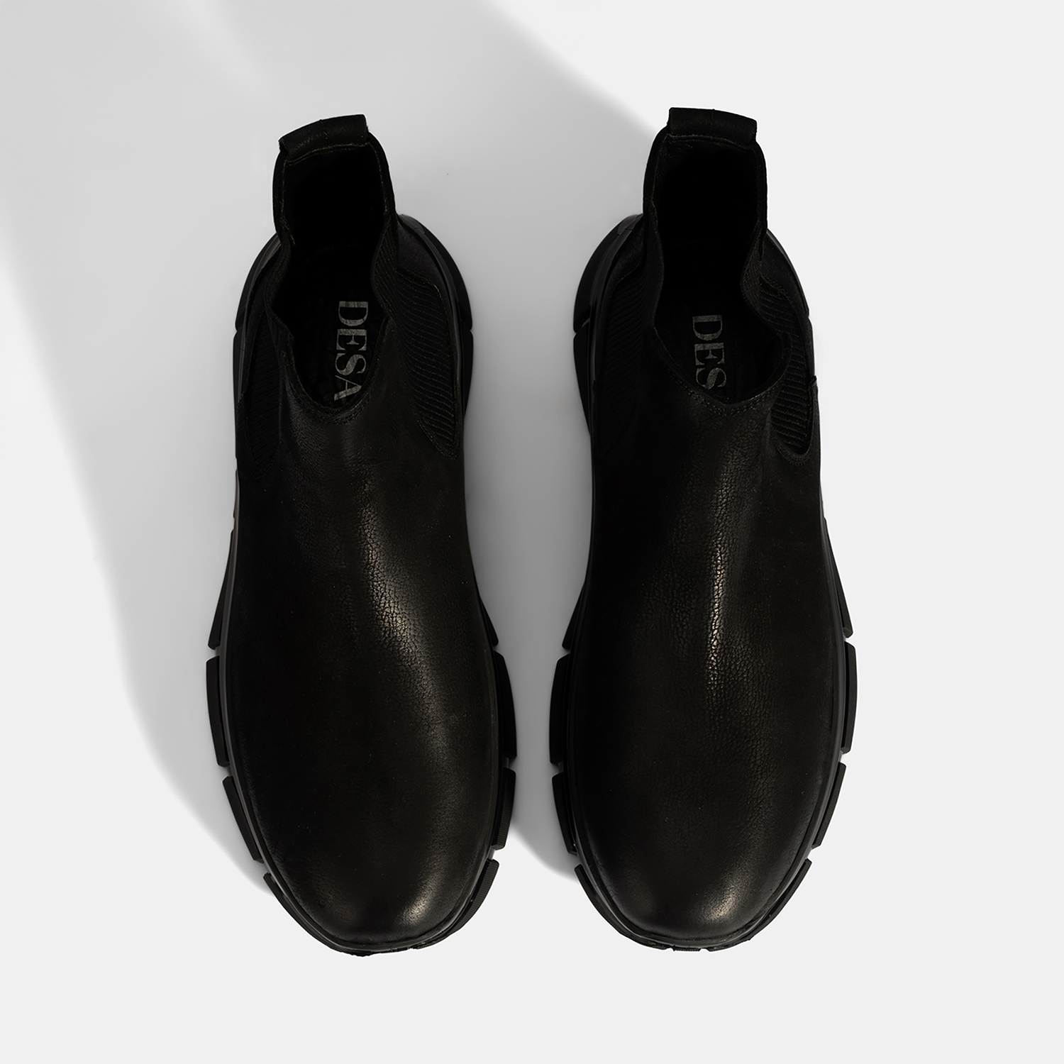%100 nubuk deri, %100 deri mostrali, tekstil astarlı, lastik detaylı, kauçuk tabanlı erkek bot.