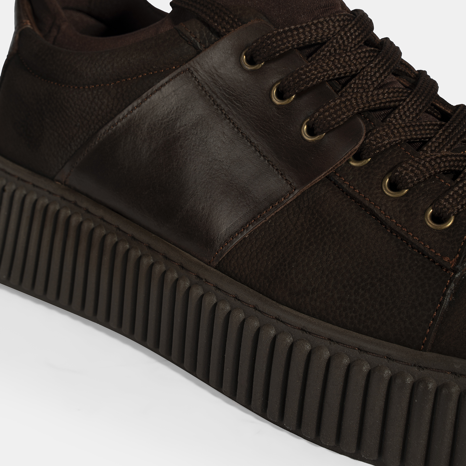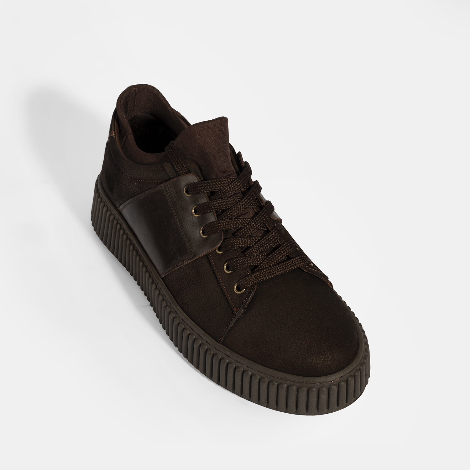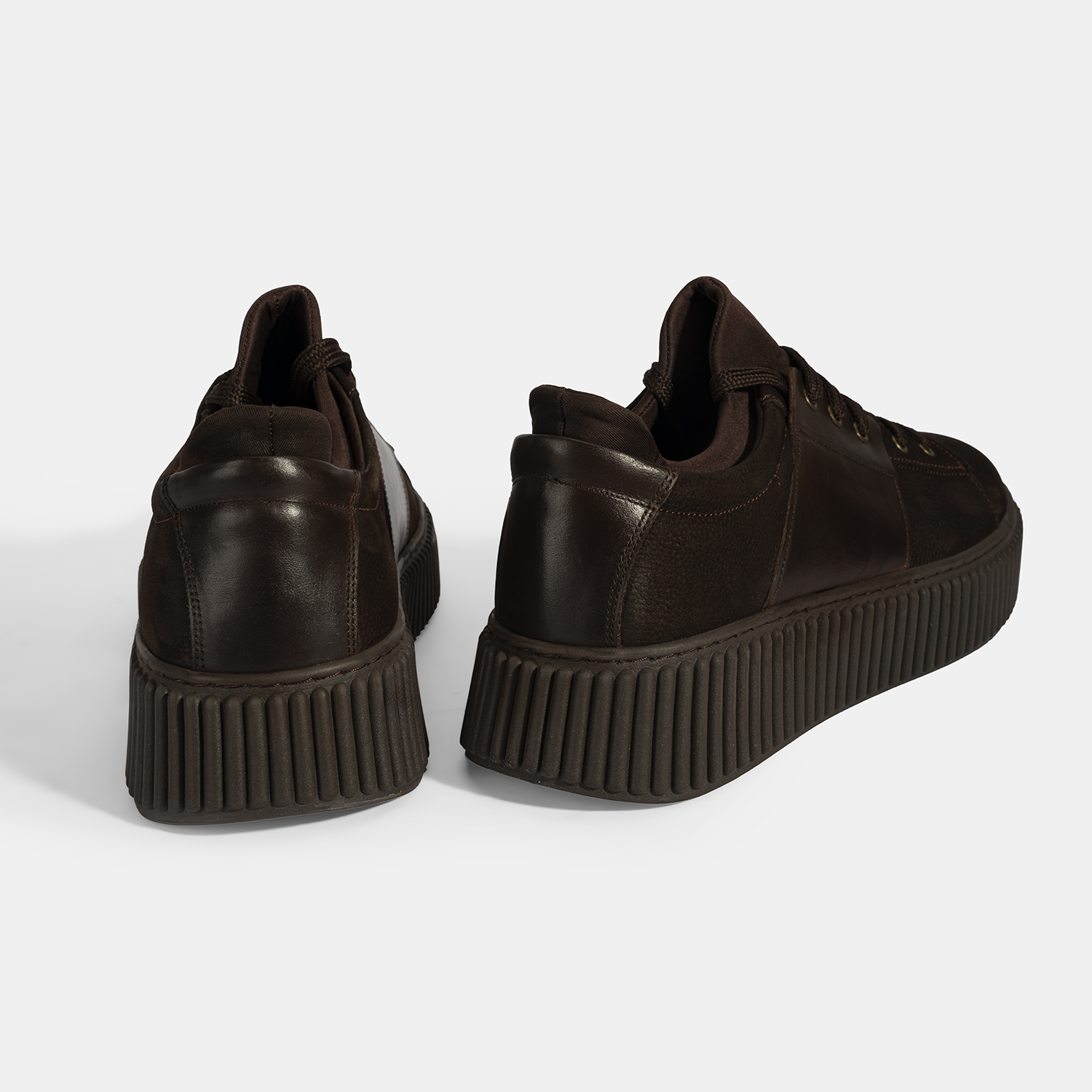 Erkek Kahve Bağcıklı Deri Spor Ayakkabı